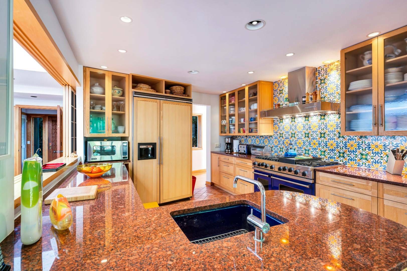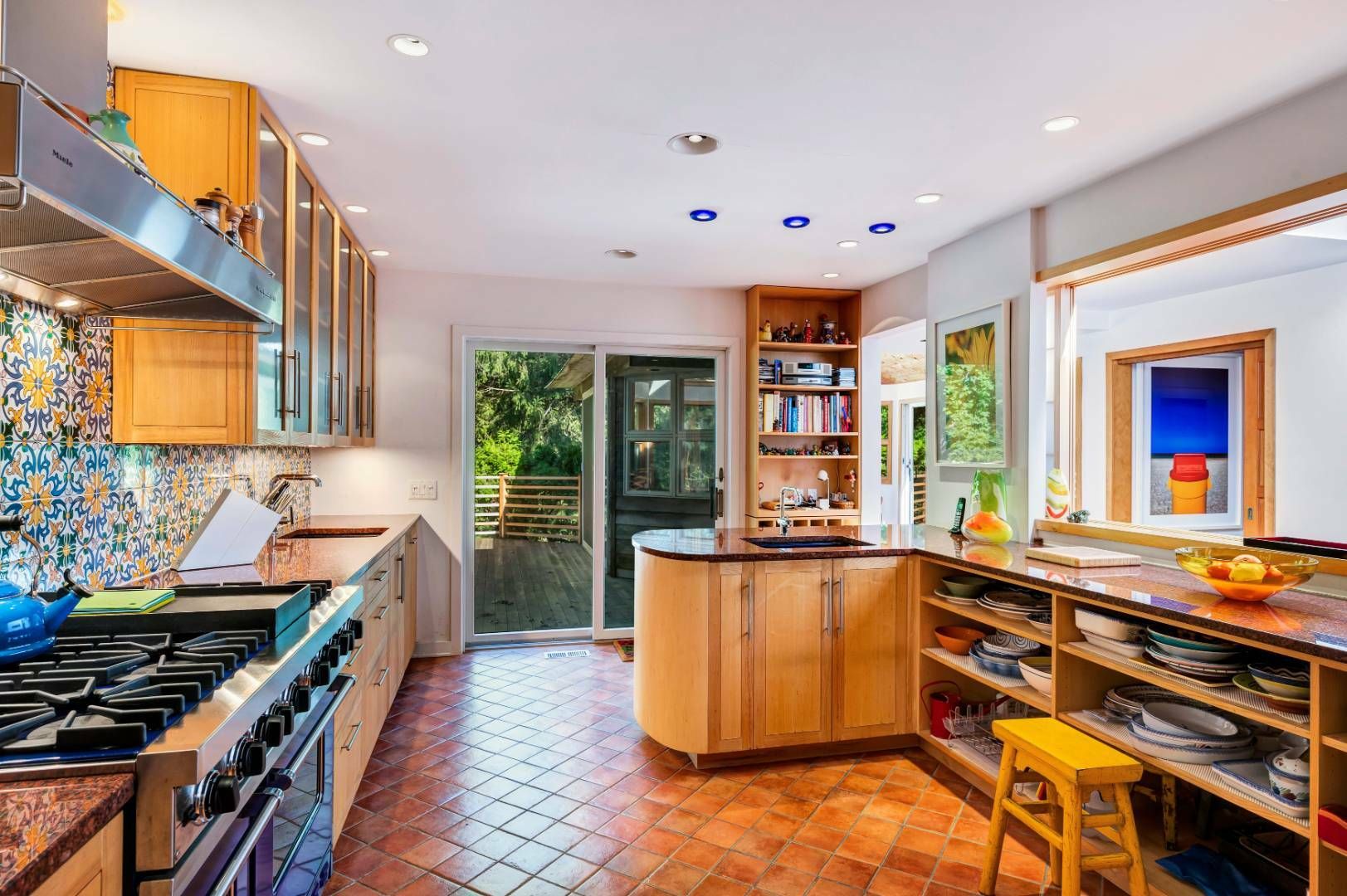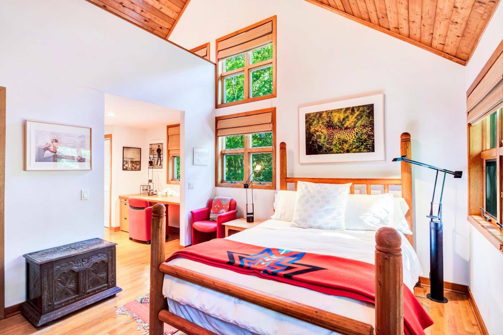 A home with its own unique sensibility sited on 1.4+/- acres in Wainscott South. The 3-bedroom, 3.5-bath retreat features two distinct wings allowing for privacy within this 5,830+ sf, artistic interior. Definitely not a cookie-cutter property. The colorful, perfectly designed kitchen and dining room are the center hub. A very thought-out floor plan with distinct areas for entertaining, living and working. With enough room to add a 4th bedroom