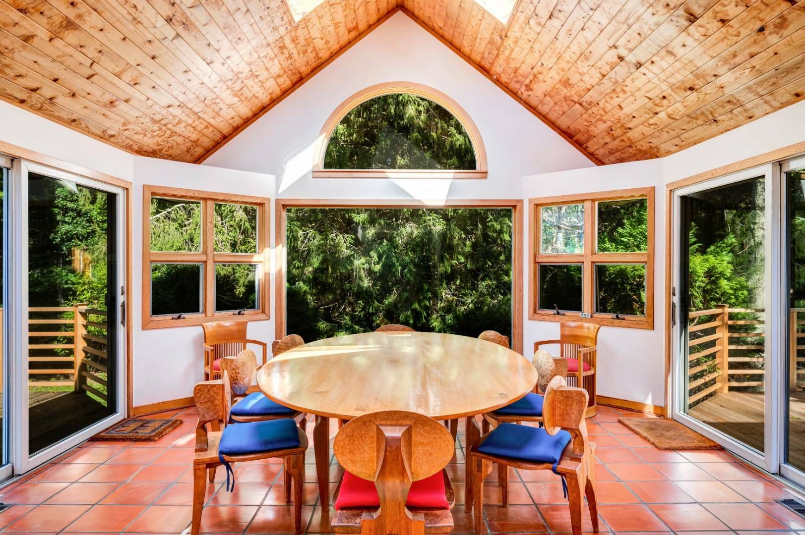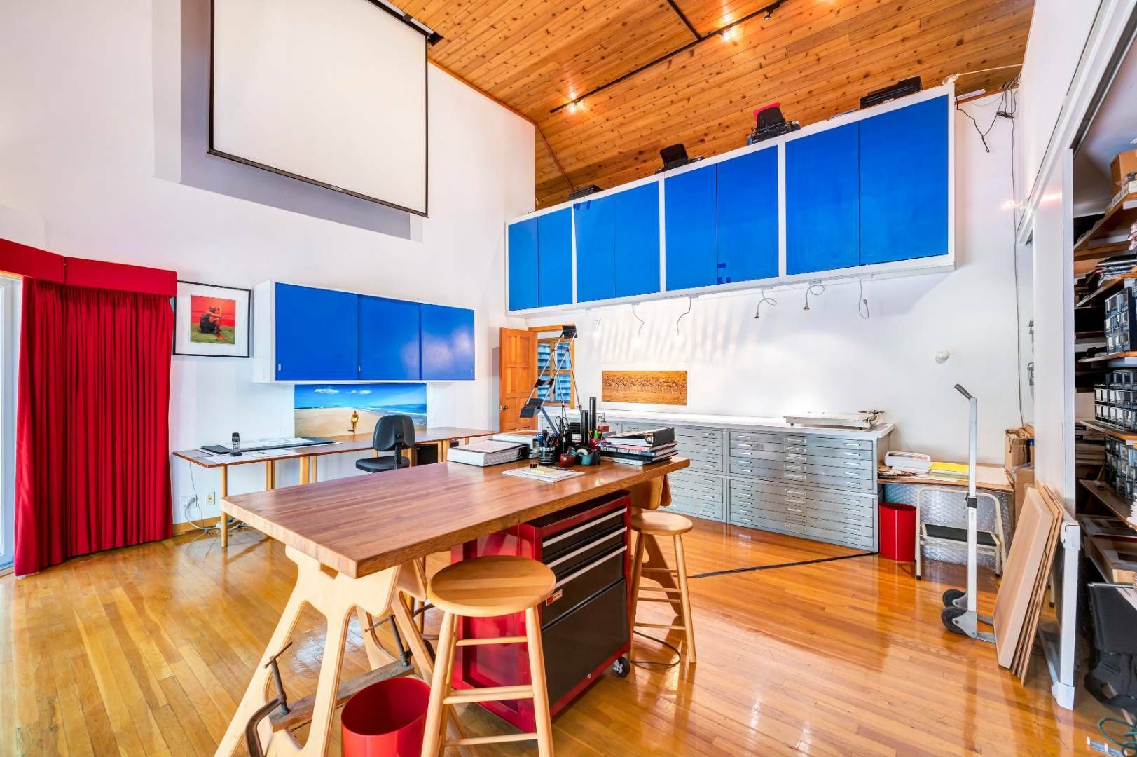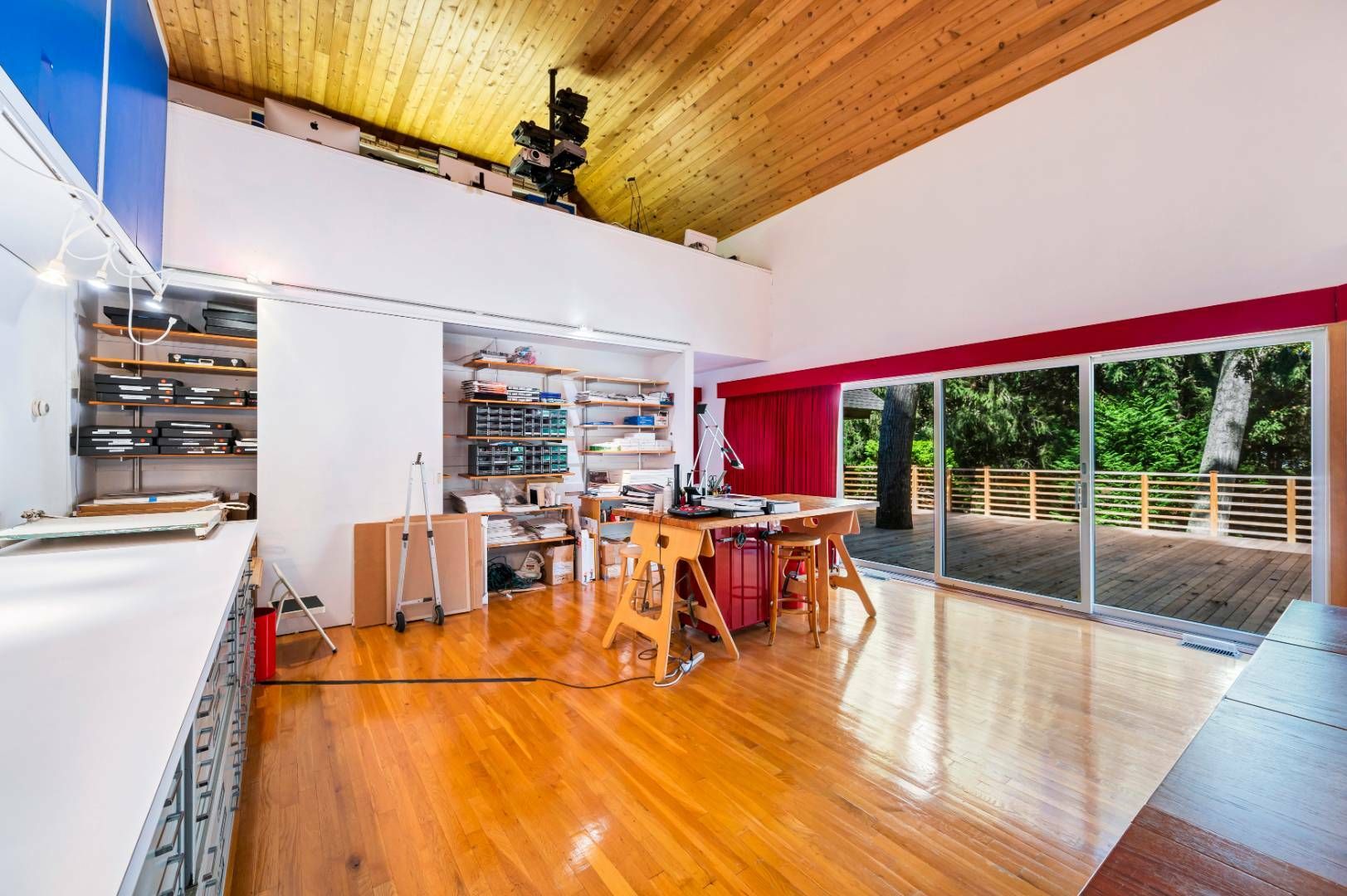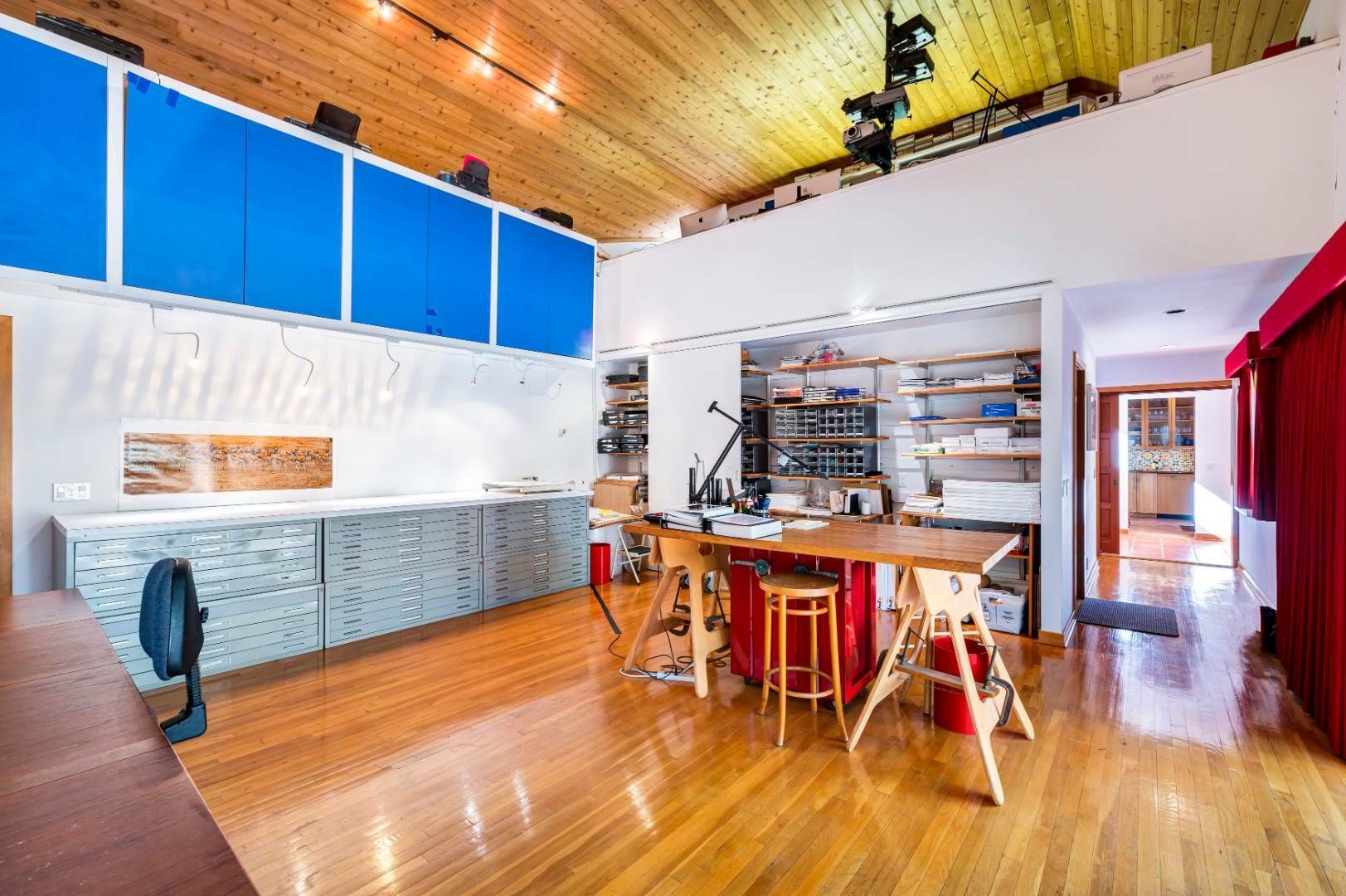 A home with its own unique sensibility sited on 1.4+/- acres in Wainscott South. The 3-bedroom, 3.5-bath retreat features two distinct wings allowing for privacy within this 5,830+ sf, artistic interior. Definitely not a cookie-cutter property. The colorful, perfectly designed kitchen and dining room are the center hub. A very thought-out floor plan with distinct areas for entertaining, living and working. With enough room to add a 4th bedroom