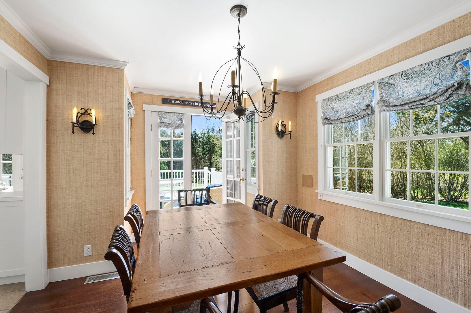 Traditional beach house located directly across from Gardiners Bay is seconds away for immediate access to a private gated beach and marina available for residents only. The interior is well planned for privacy with 4 bedrooms, 3 baths including 2 master suites with private balconies and decking. There is a formal dining room, fireplace and glass French doors throughout inviting in the fresh coastal air. The exterior, landscaped for complete