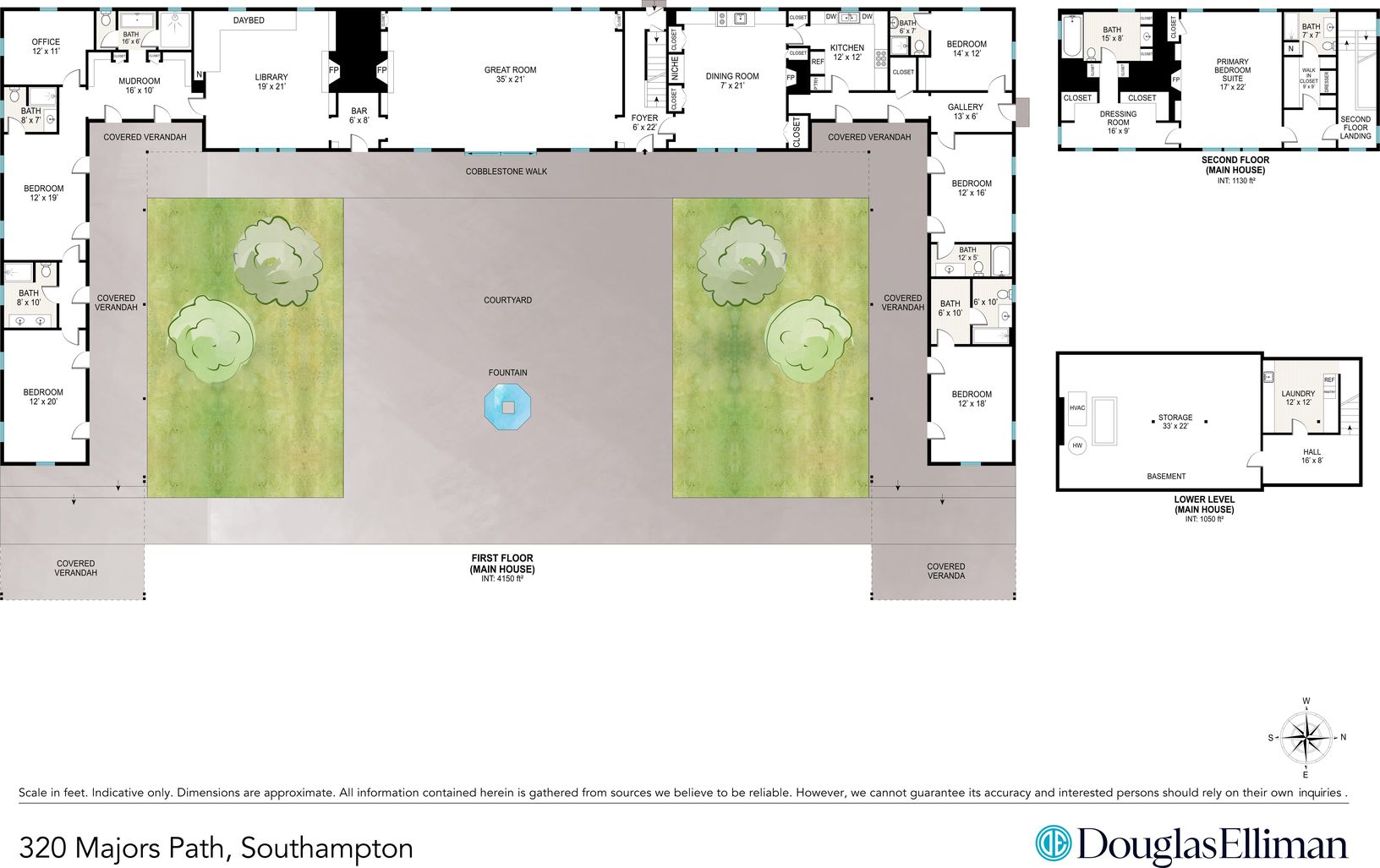 The Rosewood Farm Estate encompasses more than 34+/- bucolic acres with a rich history as the former home of the Southampton Riding & Hunt Club. Renowned architect, designer, and late owner Thierry Despont transformed the property into the one-of-a-kind estate it is today. The 5,536+/- sq. ft. main house with 6 bedrooms offers impeccable living spaces with a timeless chic aesthetic, and every room overlooks a central cobblestone courtyard