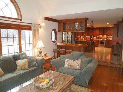 Beautiful summer retreat across the street from a pond. This pristine, newly furnished, four-bedroom, two and one half-bath home features a beautiful kitchen, formal dining room, and media room, as well as a beautiful sun room. Exterior features include a wonderful front porch, rear decking, heated pool, hot tub, and outdoor shower. This wonderfully decorated home in a very private setting would be a great private summer escape. New family roo