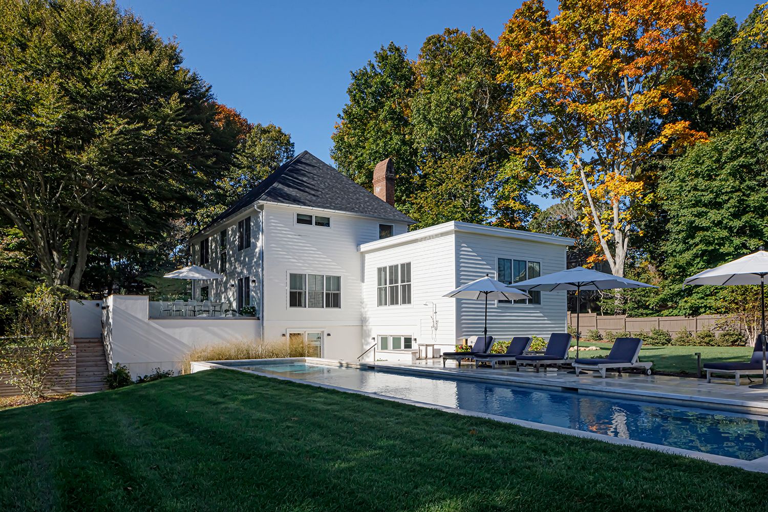 Enjoy the summer in this Architect designed gut renovated home on .70 acres in Sag Harbor Village. Beautifully appointed and impeccably kept this property is the perfect place to relax and unwind. The light-filled, state of the art eat-in kitchen leads to a comfortable dining room with wood-burning fireplace that opens to an outdoor dining patio for al fresco summer dining. The large newly added living room has high ceilings and an open fl