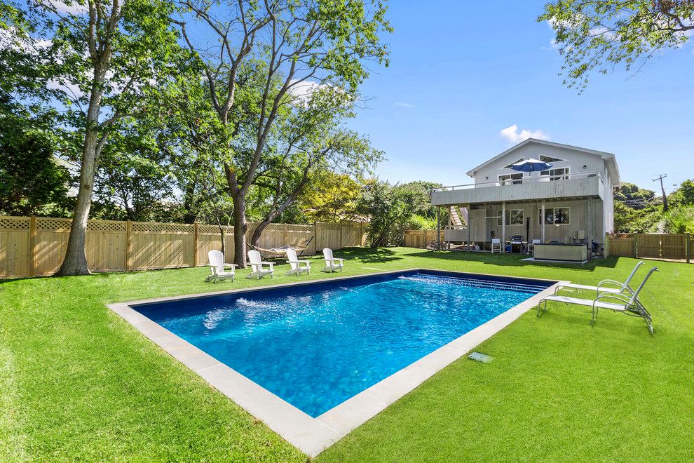 Rental Registration #: 18-848 This spacious Montauk beach house offers two living areas, large eat-in kitchen with breakfast bar, and cathedral ceilings bringing in plenty of light all day. The open dining, kitchen and living area lead out to the sunny outdoor deck, complete with full outdoor dining and sitting furniture and Weber gas barbecue. The large backyard features a brand new 18x38 heated pool, hot tub and beautifully landscaped ground