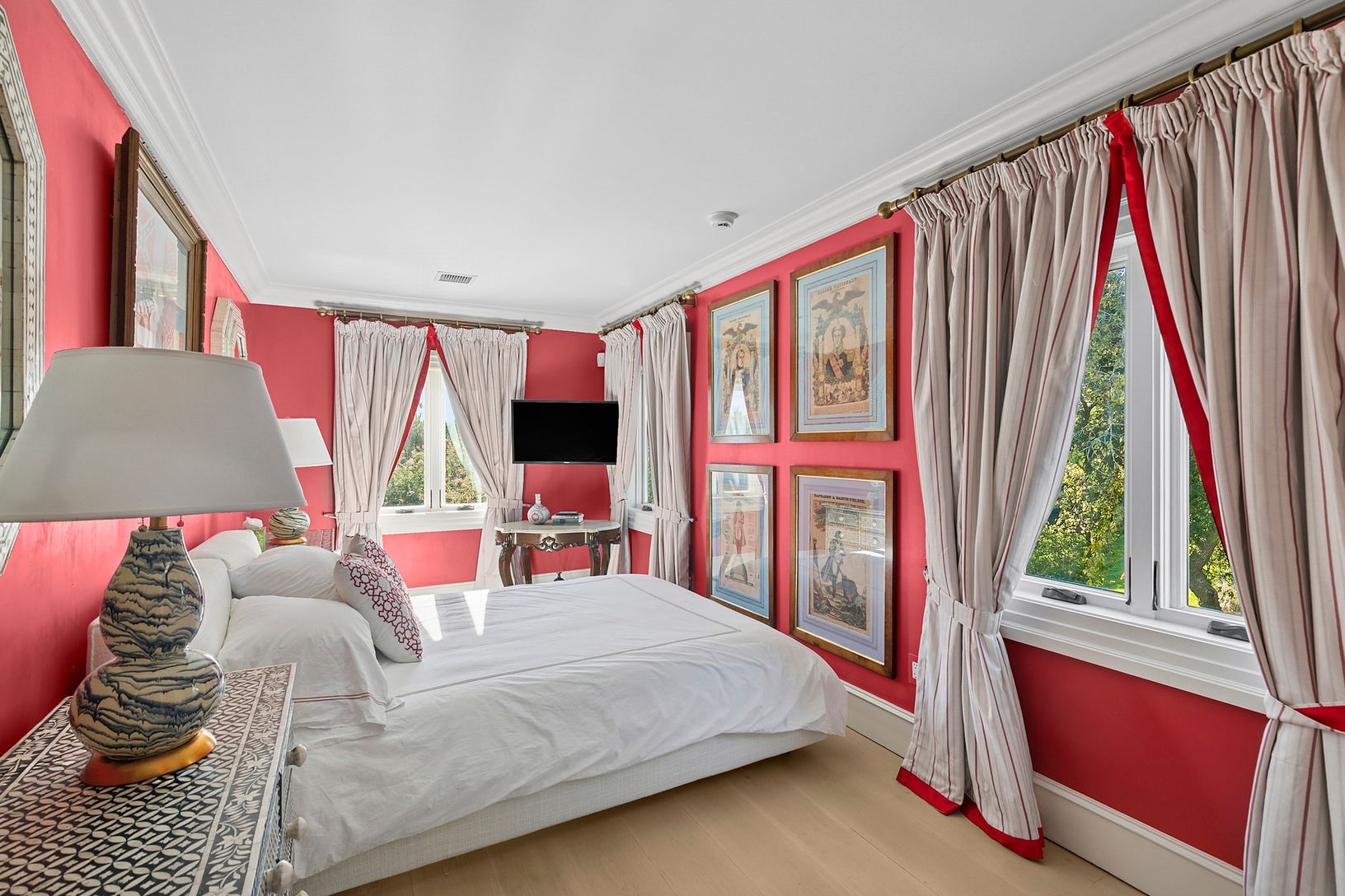 Spanning over 7,500 square feet, this extraordinary estate offers eight beautifully appointed bedrooms, six full bathrooms, and four powder rooms. Inspired by Lazienki Palace in Warsaw, Poland, this masterpiece seamlessly blends timeless elegance with modern sophistication. Situated on 1.5 impeccably landscaped acres, the property is accessed through a gated entry, unveiling a captivating 90-foot reflecting pond and a meticulously designed Eng