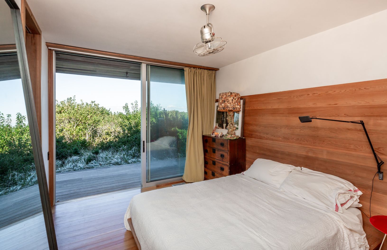 Discover this modern gem of a beach house on 3 private acres with 355 feet of water frontage on Gardiner's Bay. The private path over a dune leads to an oasis of wide sandy beach perfectly situated for sensational direct evening sunsets. The open interior has walls of glass for continuous water views and to invite in warm coastal breezes throughout. There are 5 bedrooms, 6 baths, den and separate studio. The waterside heated pool and hot tub a