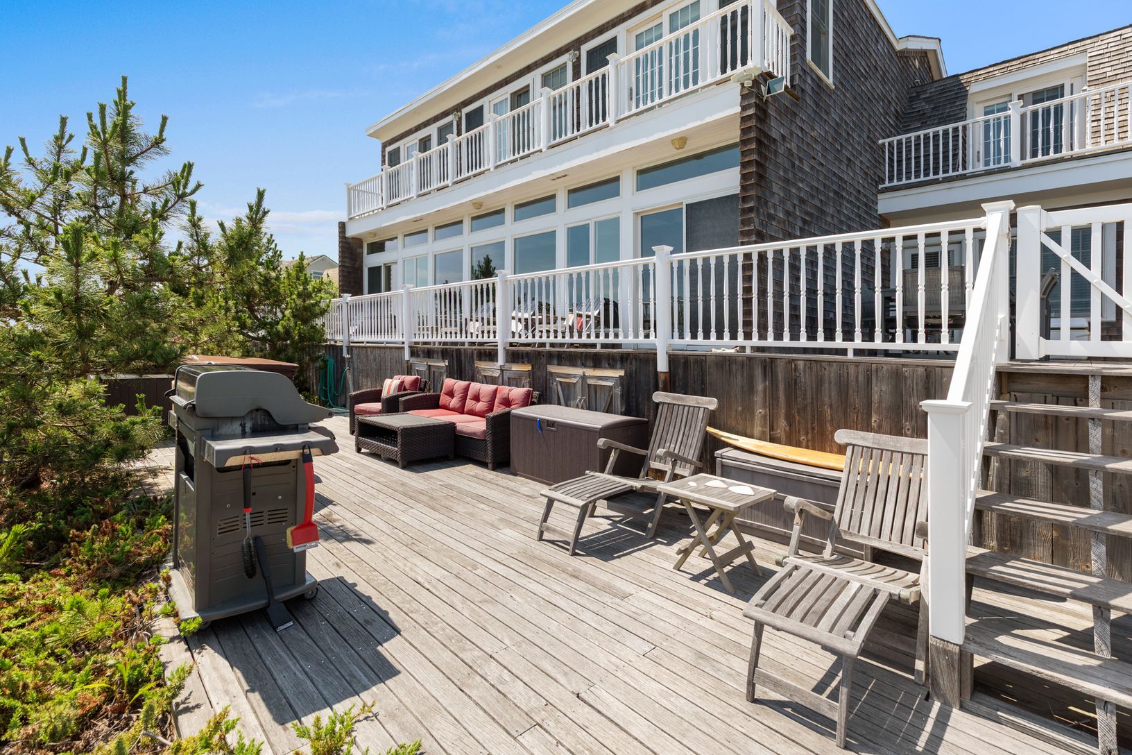 This West Hampton oceanfront home contains 8 bedrooms and 6.5 bathrooms. This house has incredible views of the ocean with a private oceanside deck and walkway to the ocean. Spacious entertainment areas. Designer kitchen with granite counters.