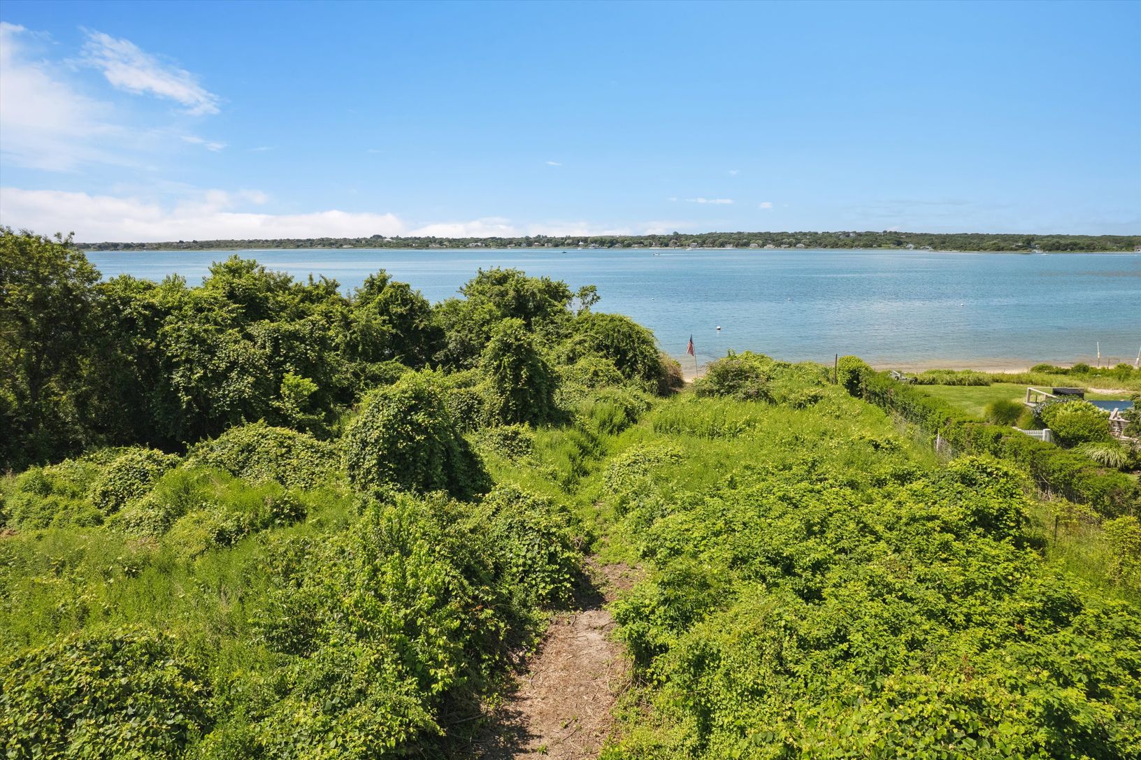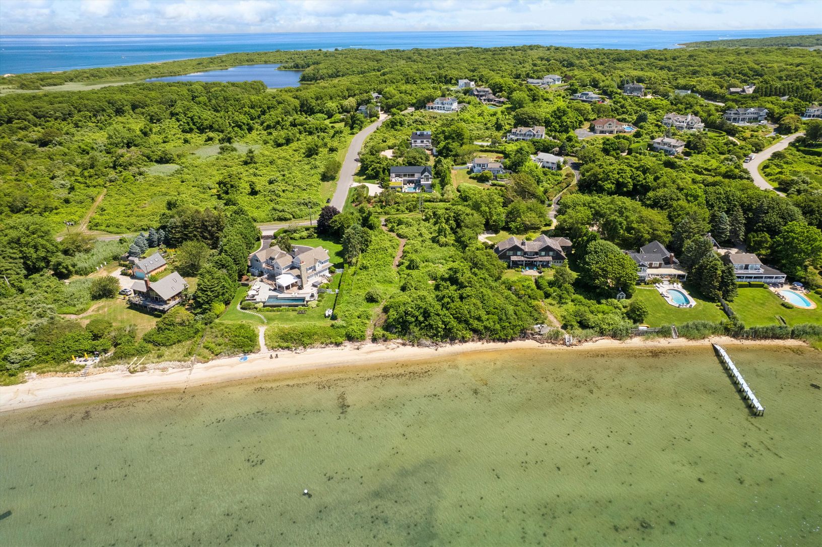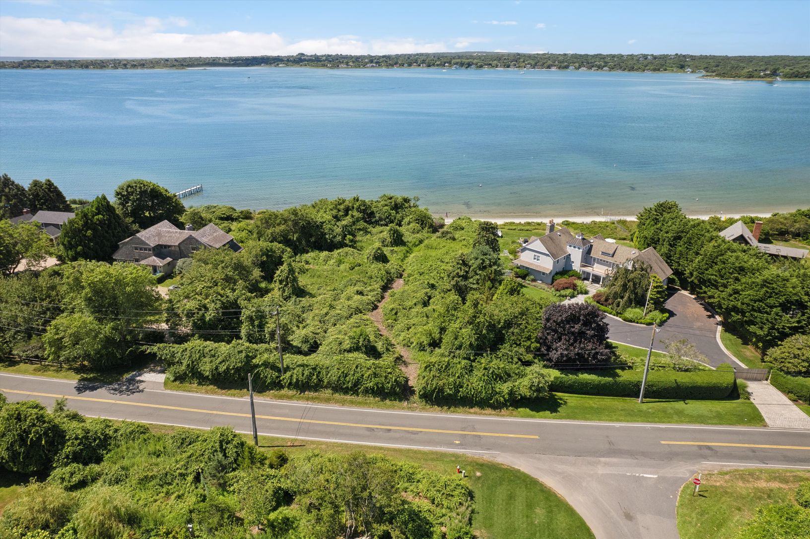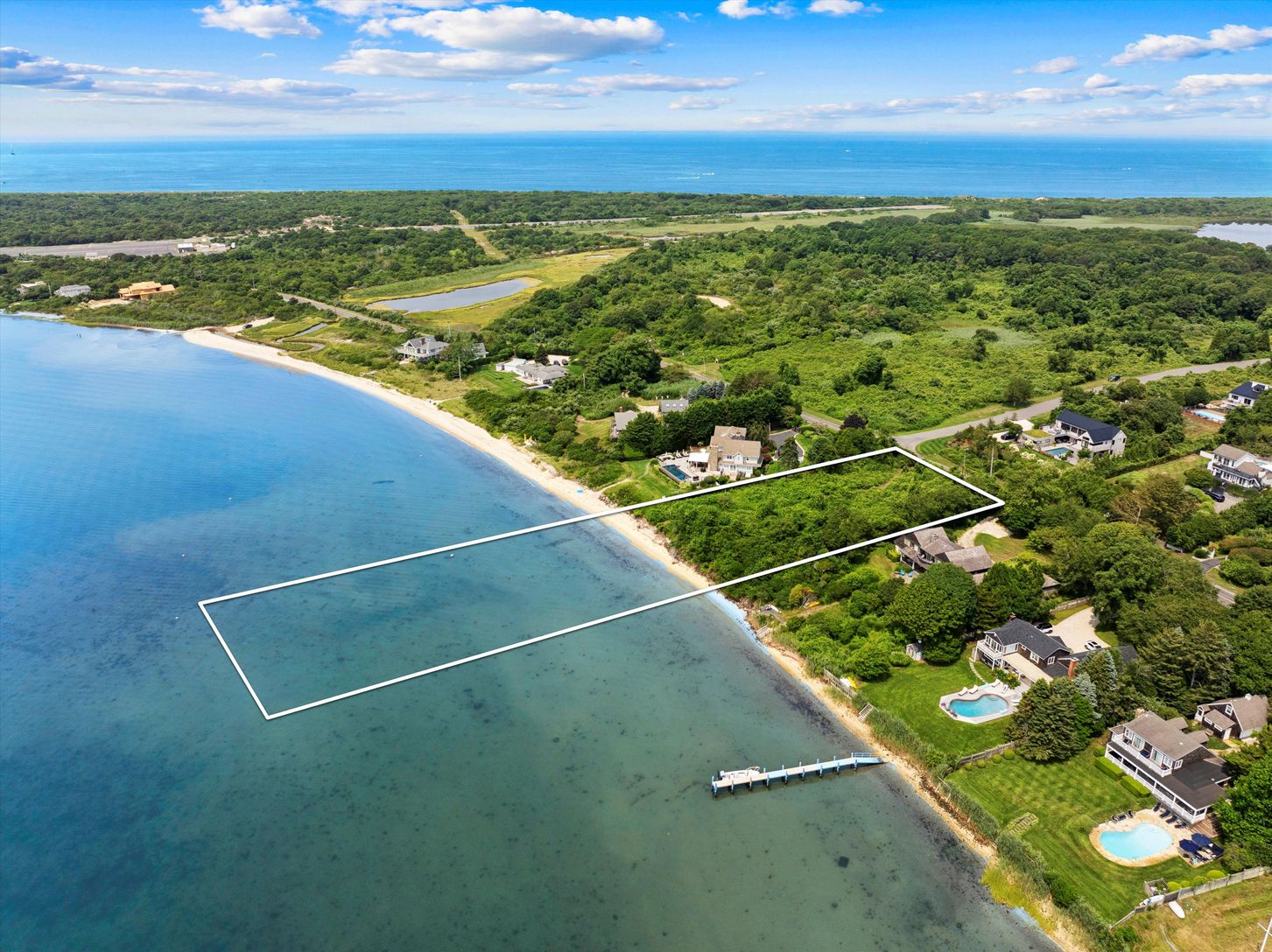 Located on a beautiful stretch of Lake Montauk where the views are wide and the beach is sandy, 329 East Lake Drive sets the bar for buildable lakefront land. The 0.87-acre upland portion of the property spans over 260 feet from the road, where elevation is highest, down to the water where 135 feet of shoreline forms a rare private sandy beach. The southwest-facing building envelope is well positioned to enjoy daily sunsets and summer breezes