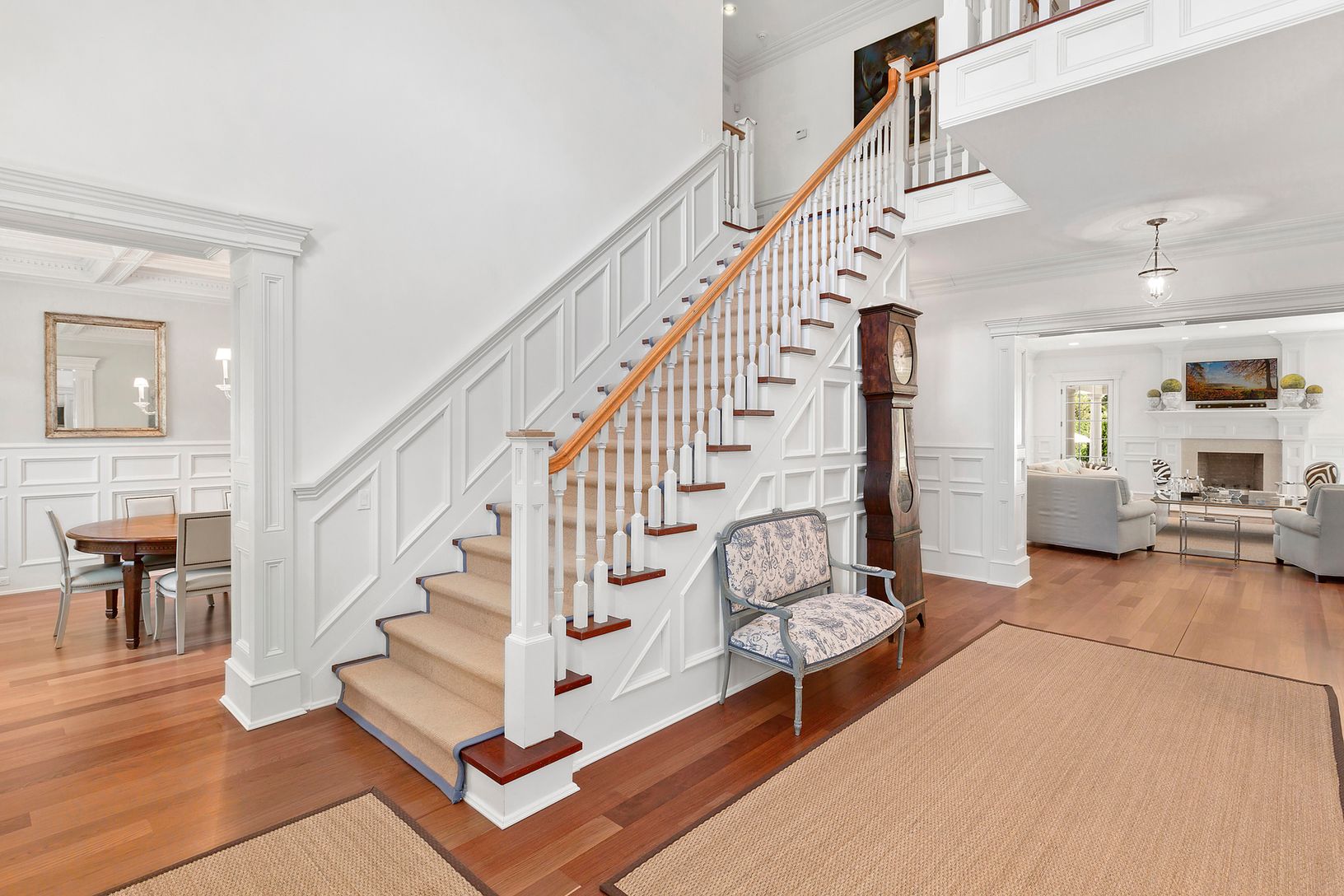 This 6,000 s.f. gated residence features 5 bedrooms with 5.5 baths and is sited on 1.84 secluded acres, surrounded by reserves on two sides for complete privacy. As you enter the grand double-height entryway you are flanked by a large living room with fireplace and a formal dining room with coffered ceiling. Off the foyer the great room with fireplace is flanked by two French doors to the covered bluestone patio. The professional kitchen is op