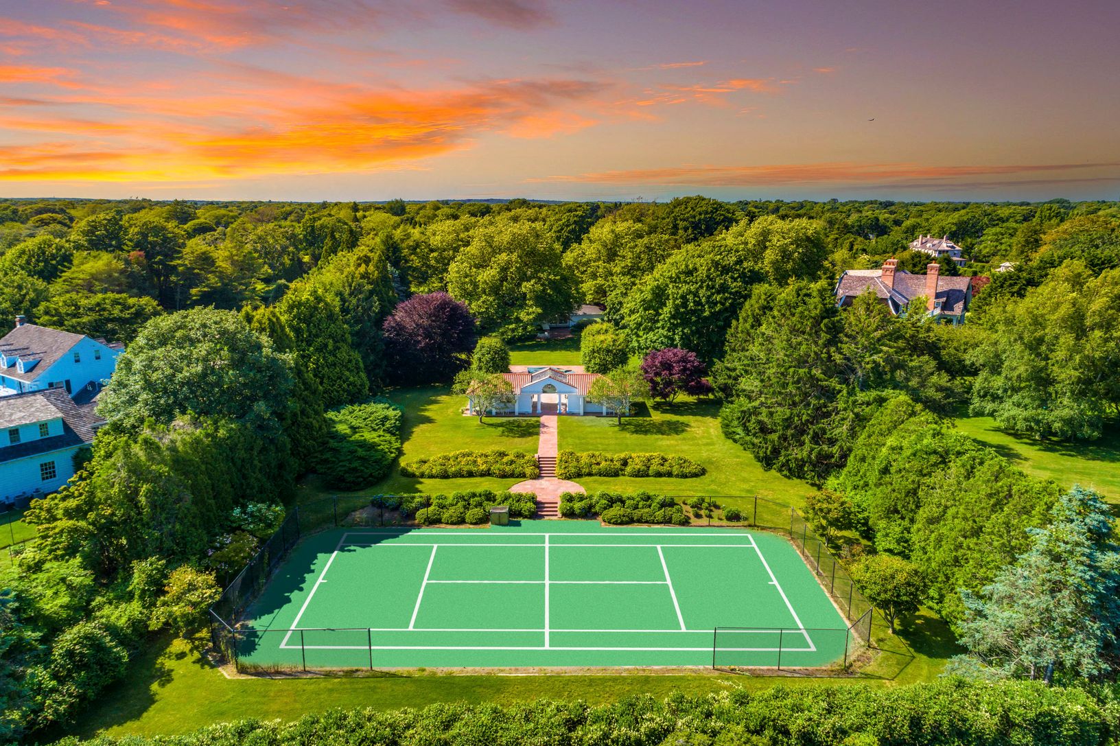 Located moments to world-class ocean beaches in the heart of East Hampton's renowned Lily Pond Estate section, south of the highway, lies a truly majestic 2.04 acre property the likes of which rarely come to market. Big open sky, southern exposure and never ending manicured lawns will take your breath away. This spectacularly landscaped property with mature specimen trees and privacy hedges cannot be replicated. The compound includes a carriag