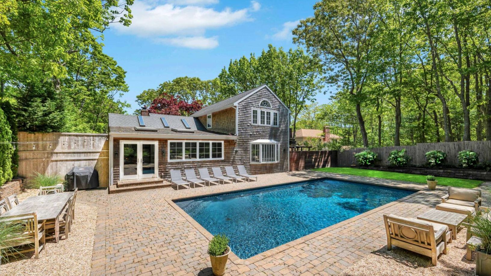 Nestled in the heart of Sag Harbor, this beautiful beach house is just a block away from the pristine sands of Long Beach and a short distance from the charming Sag Harbor village. The property boasts an open floor plan, offering five spacious bedrooms and three modern bathrooms, accommodating up to ten guests comfortably. The home's interior is flooded with natural light, creating a bright and airy atmosphere perfect for families seeking an e