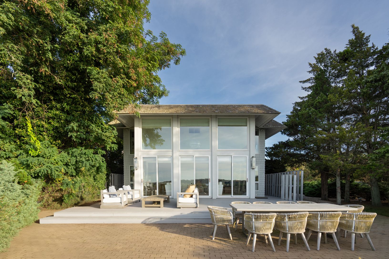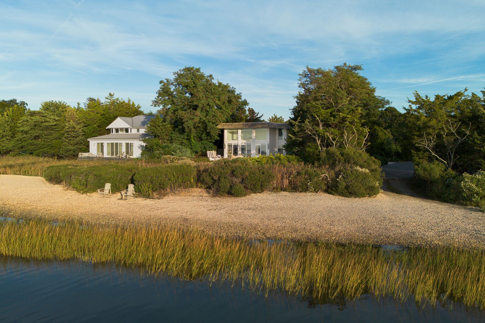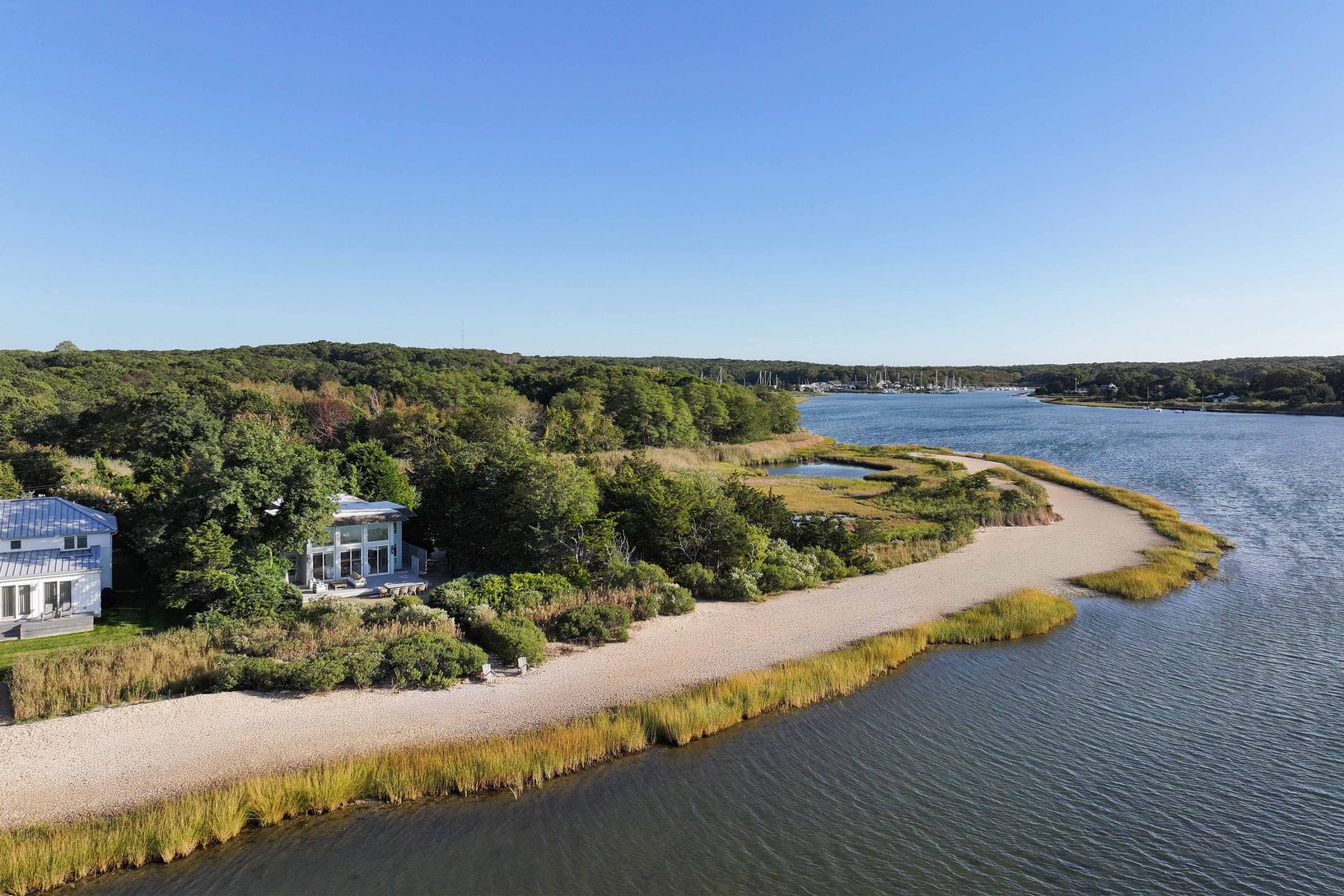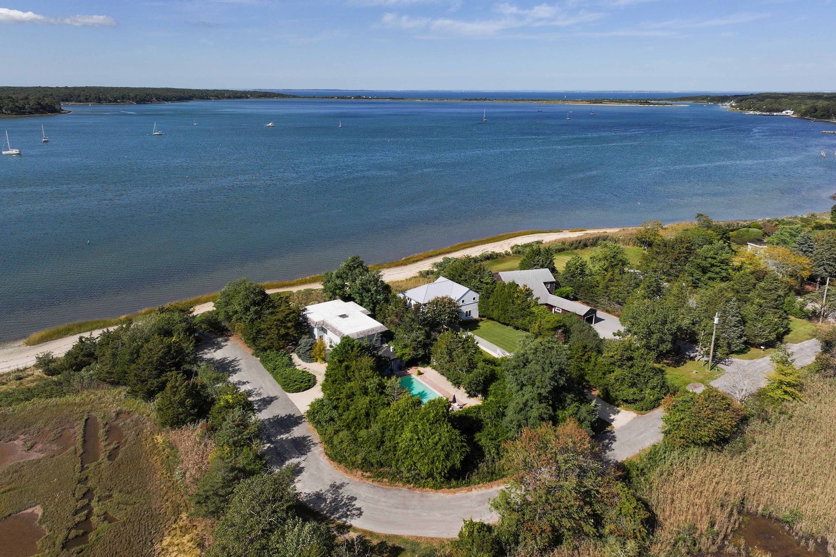 At the end of a quiet, private street, this modern waterfront residence rests on 0.43 acres+/- along the shores of Three Mile Harbor. The 2,671 SF+/- home spans 2 levels with 4 bedrooms, and 4 full and 1 half bathrooms, complemented by a 371 SF+/- pool house and detached garage. Defined by unobstructed harbor views, western facing sunsets, walls of glass, and seamless indoor-outdoor living, the property captures the essence of Hamptons waterfr