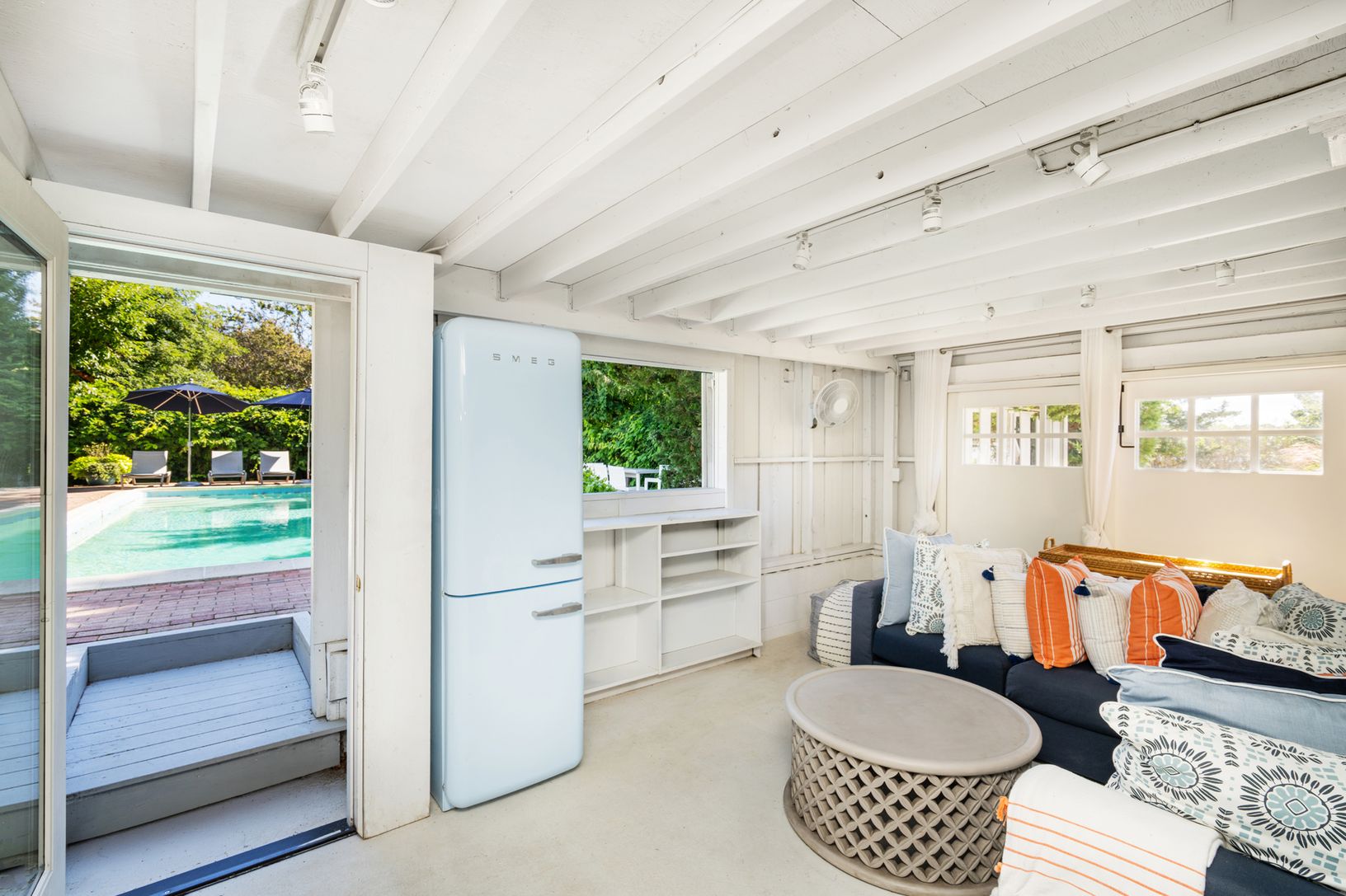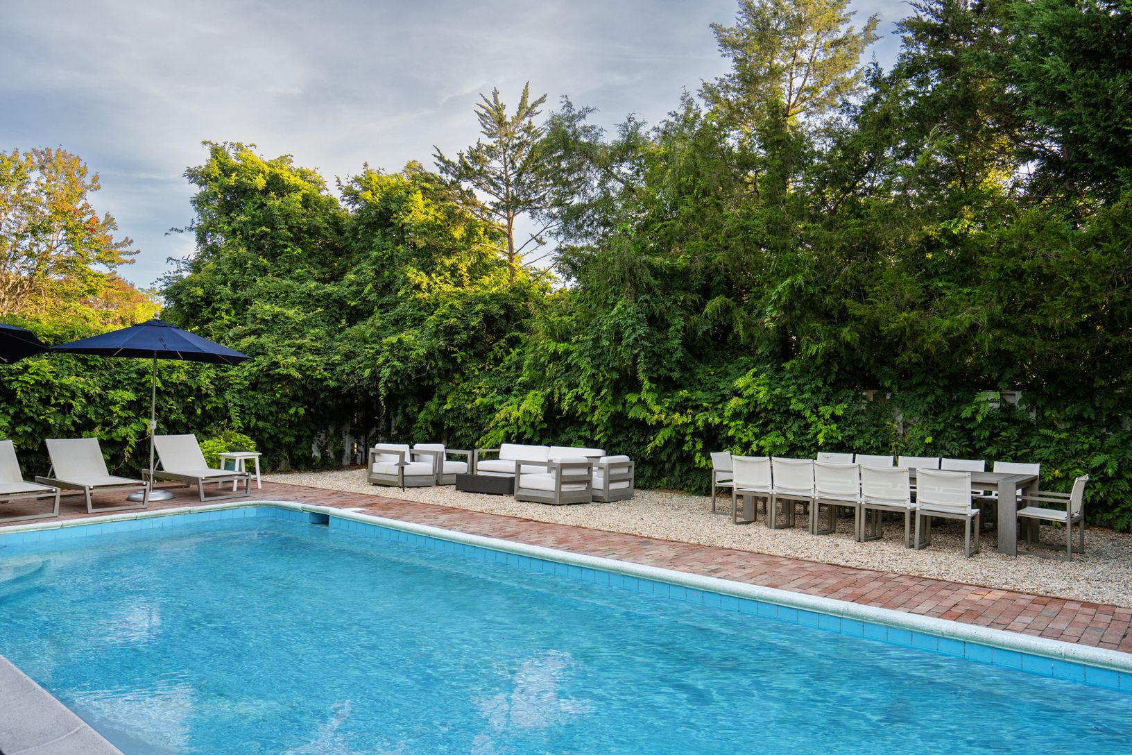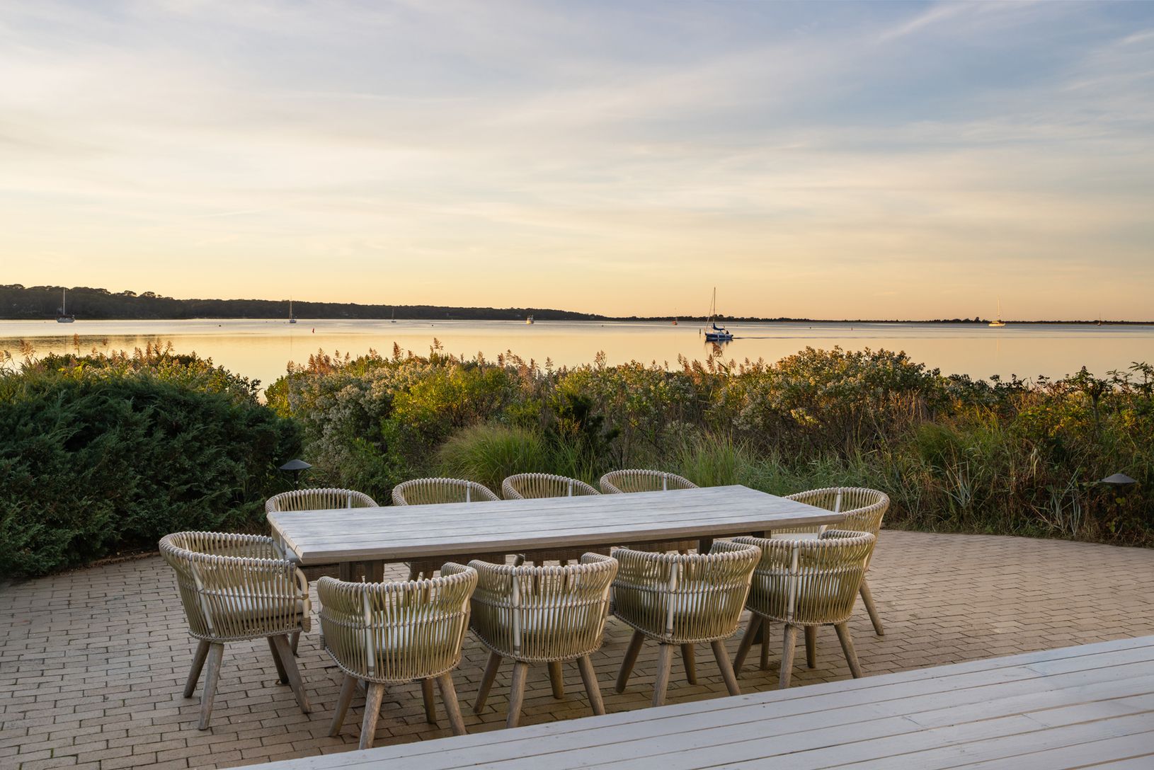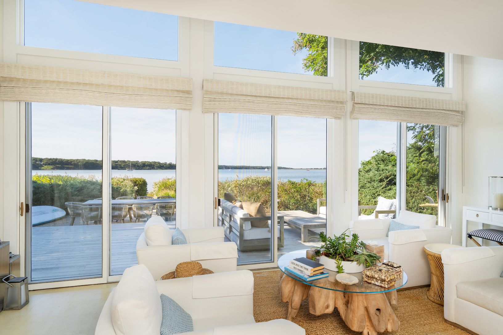 At the end of a quiet, private street, this modern waterfront residence rests on 0.43 acres+/- along the shores of Three Mile Harbor. The 2,671 SF+/- home spans 2 levels with 4 bedrooms, and 4 full and 1 half bathrooms, complemented by a 371 SF+/- pool house and detached garage. Defined by unobstructed harbor views, western facing sunsets, walls of glass, and seamless indoor-outdoor living, the property captures the essence of Hamptons waterfr
