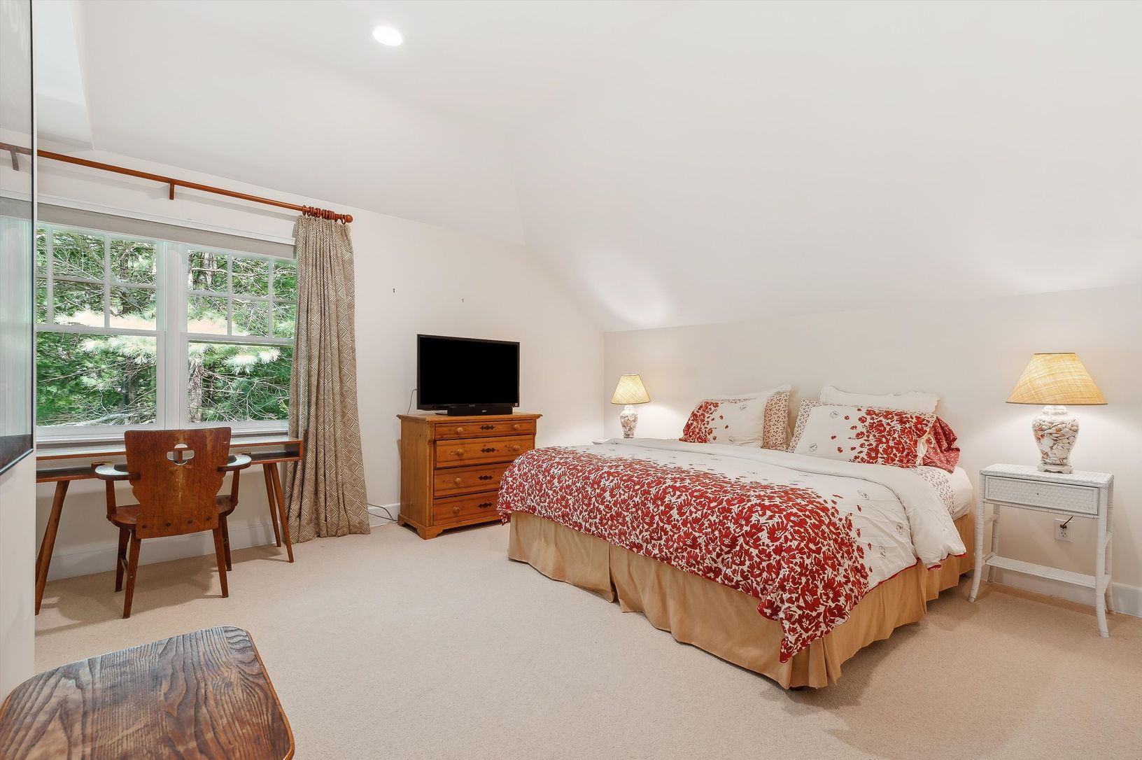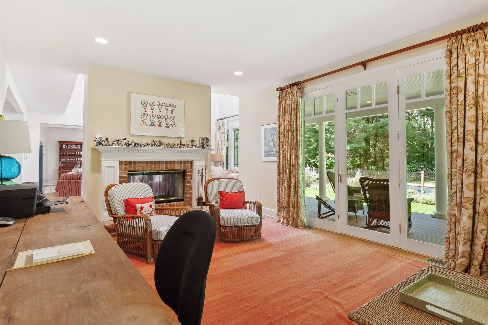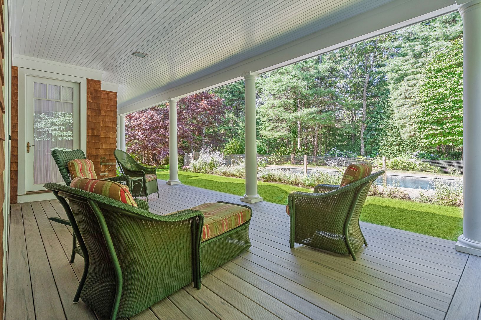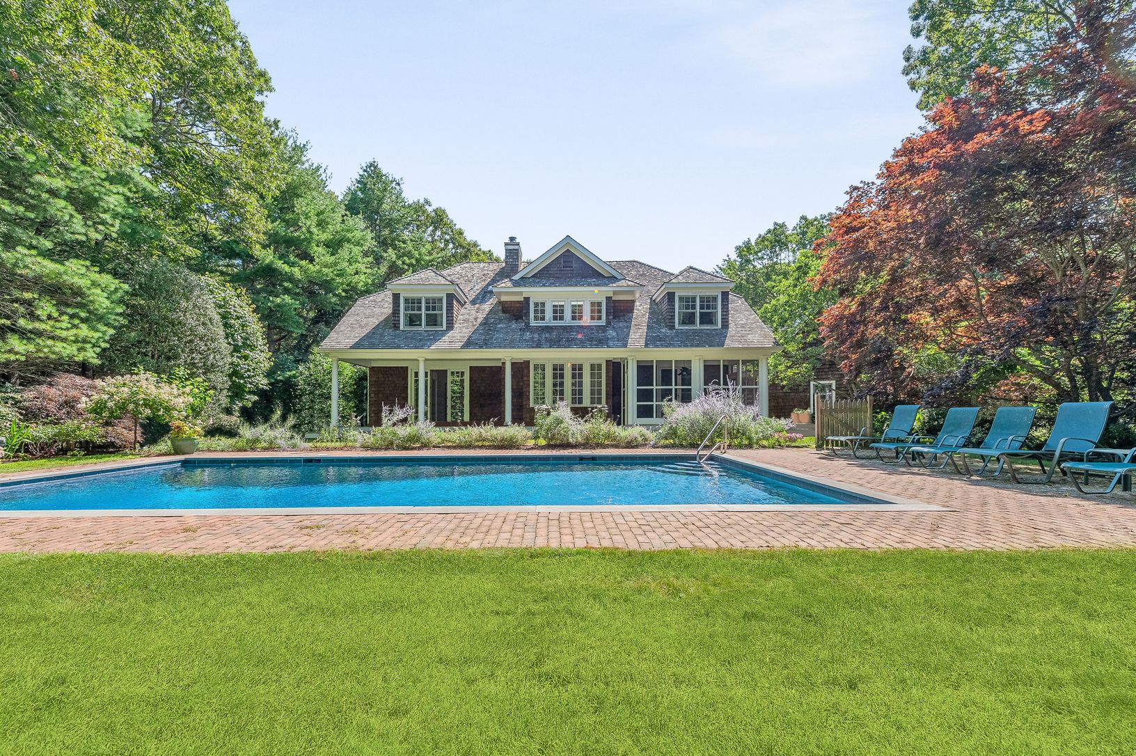Perched on a hill at the end of a cul de sac, this celebrity's own classic East Hampton retreat has abundant peace and beauty. With five bedrooms, multiple indoor and outdoor gathering spaces in which to enjoy the seasons, two wood-burning fireplaces, a Gunite pool, beautiful mature landscaping, and a two-car garage, this house has everything you need to enjoy sunsplashed or cozy happy times in the Hamptons.