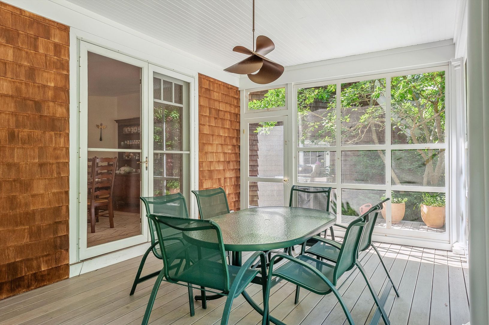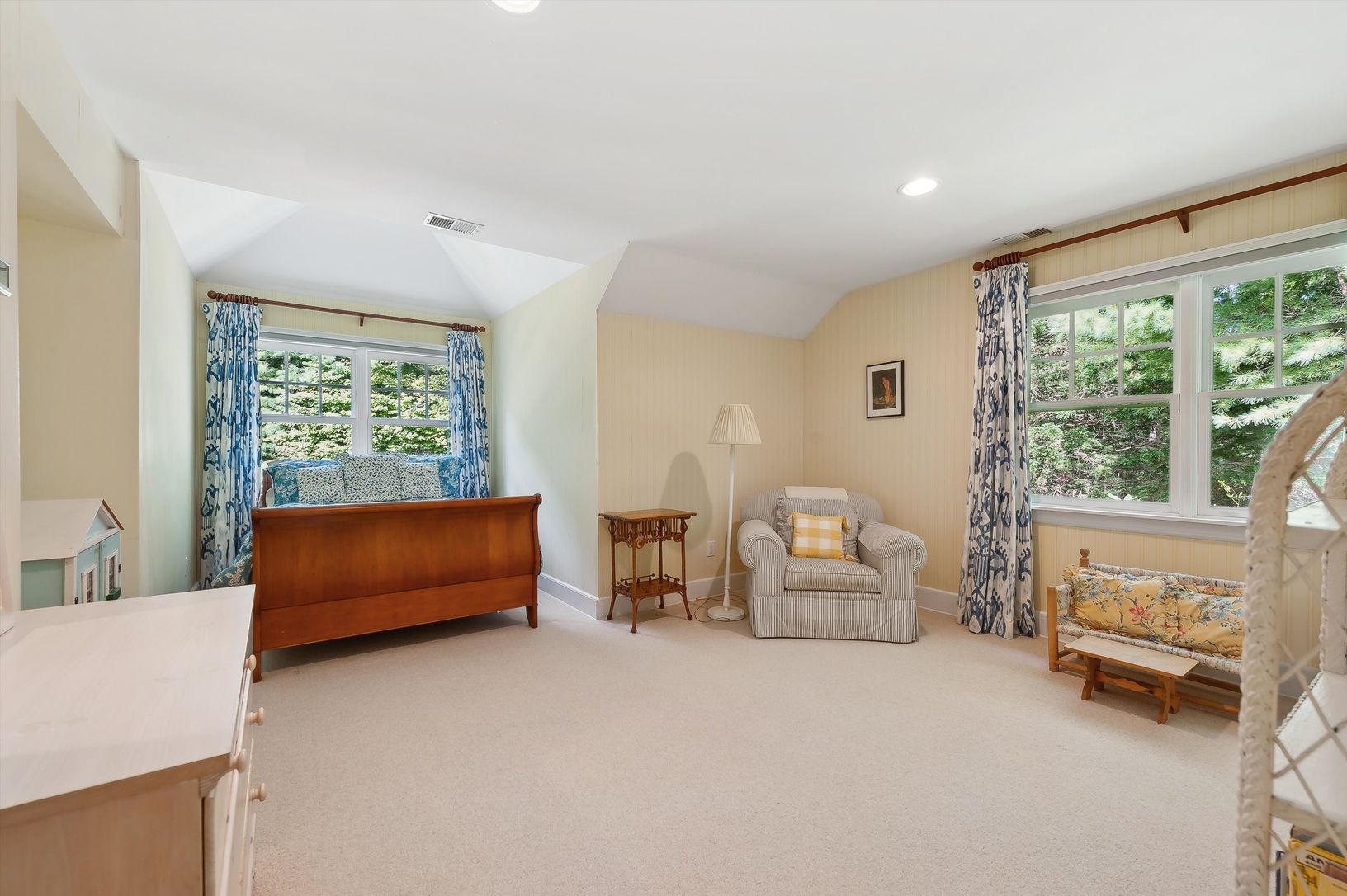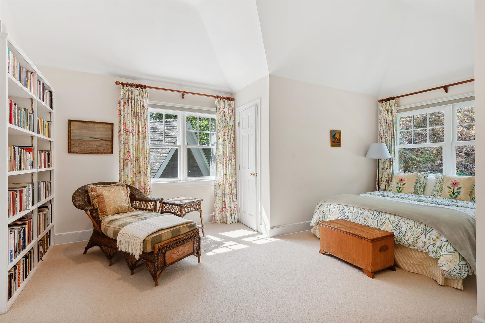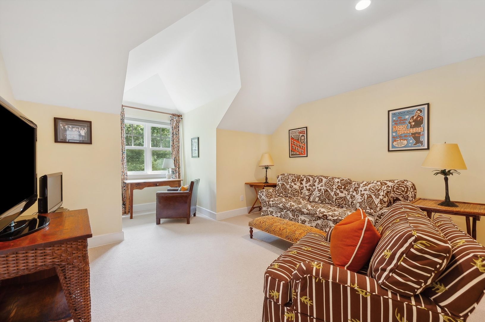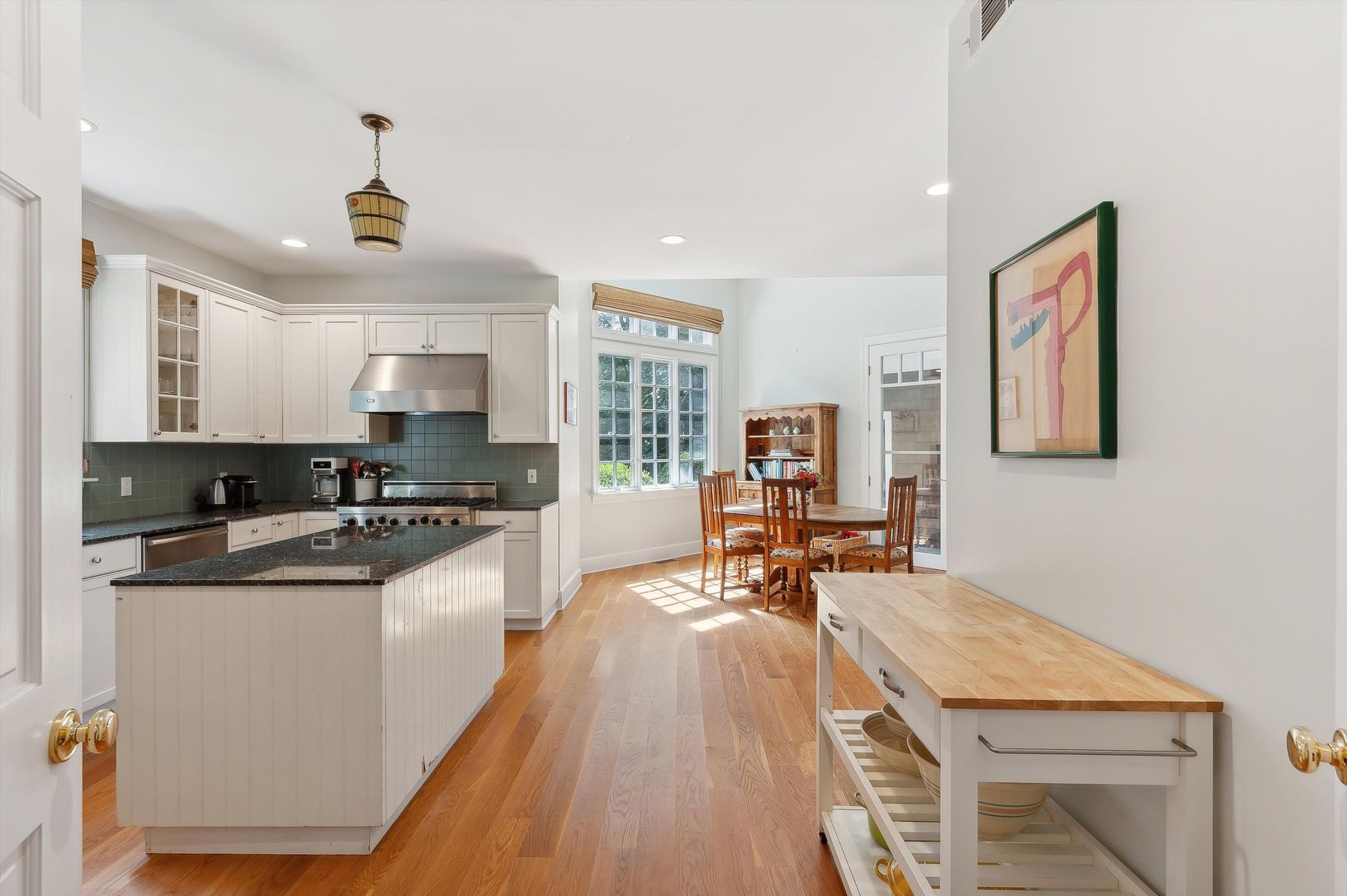 Perched on a hill at the end of a cul de sac, this celebrity's own classic East Hampton retreat has abundant peace and beauty. With five bedrooms, multiple indoor and outdoor gathering spaces in which to enjoy the seasons, two wood-burning fireplaces, a Gunite pool, beautiful mature landscaping, and a two-car garage, this house has everything you need to enjoy sunsplashed or cozy happy times in the Hamptons.