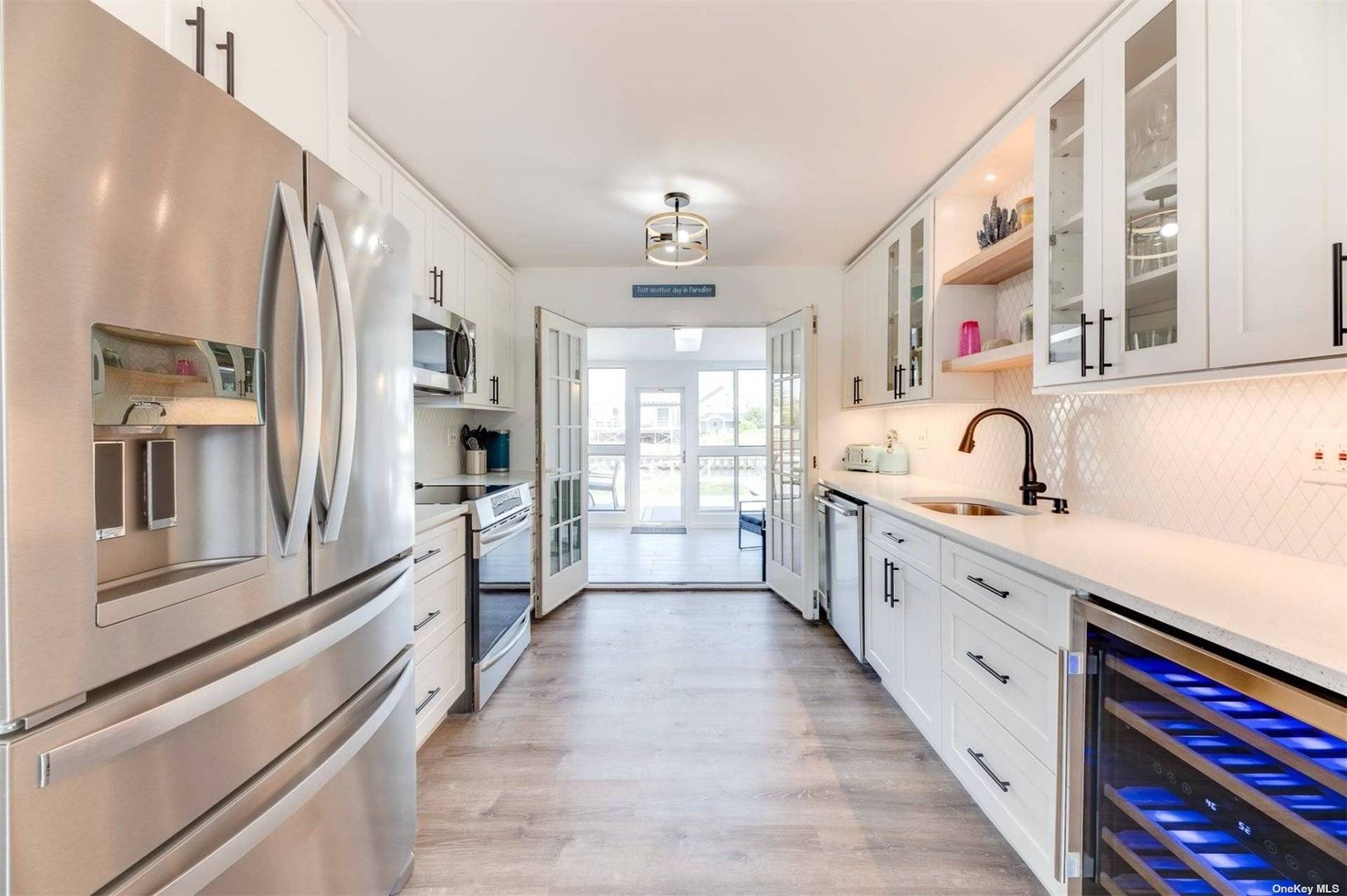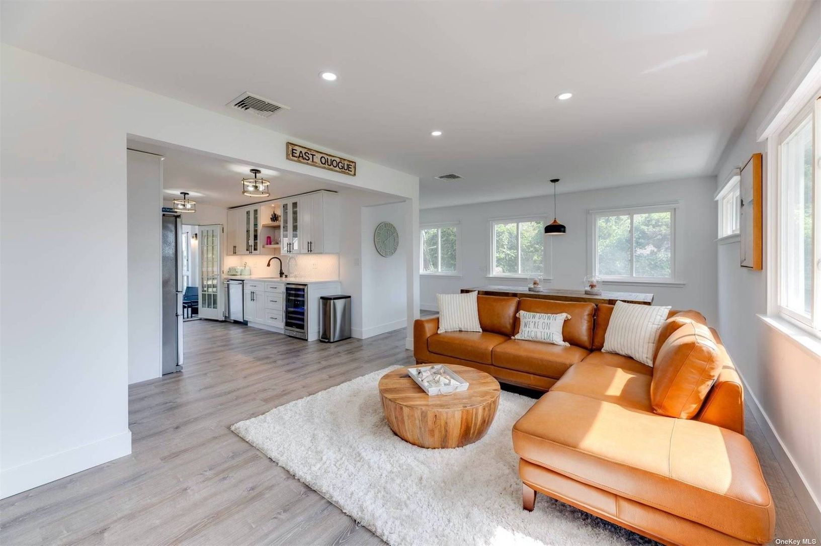 Escape to this updated 4 bedroom, 2 bath waterfront home in a private Hamptons community! Perfect for summer relaxation and recreation, this property features open living-dining area, modern kitchen with stainless steel appliances and quartz counters and an enclosed Florida room overlooking new outdoor decking and the water! Enjoy kayaking, boating and the nearby association bea