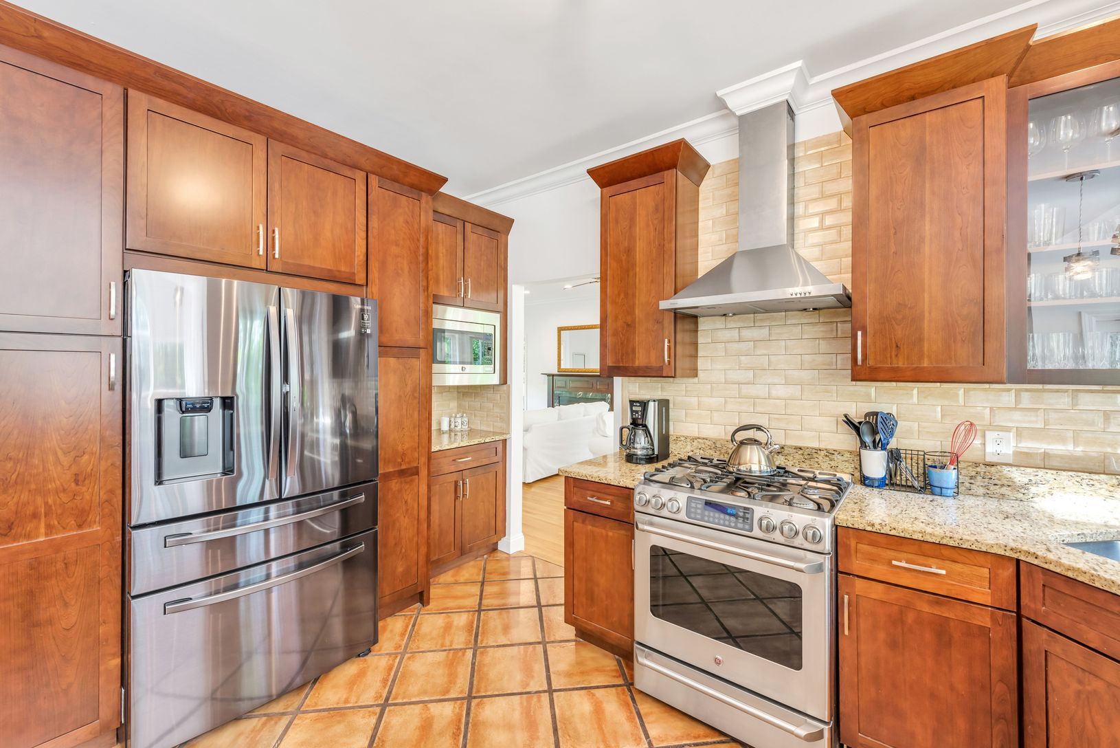 Floors: Hardwood, Tile