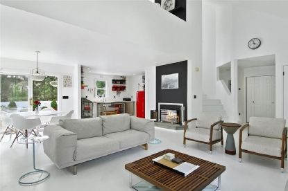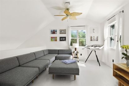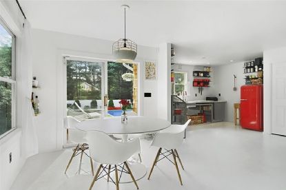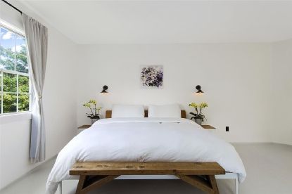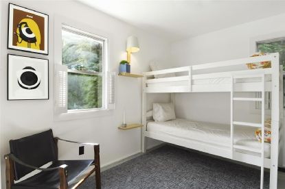 Stylish, upbeat, modern renovation of this 2 bedroom, 2 bath home on quiet, tree-lined street offers the ultimate turnkey in the heart of Southampton Village. Double-height ceilings in the open living room, kitchen, and dining area provide an airy feel and plenty of light on the first floor, as well as a wood-burning fireplace. Kitchen includes Carrera marble counters, chic details all around, and stunning European fixtures and appliances. Sli