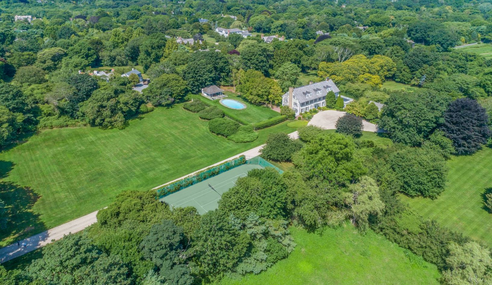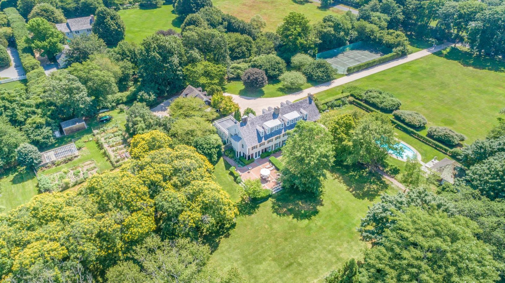 One of the last grand estates in East Hampton, Long Island, with Old World charm and a storied history now on the market after sixty years in the same family. Set back on five acres of beautifully landscaped grounds, this elegantly spaced compound is situated on one of the most desirable lanes south of the highway, equidistant from East Hampton Village and the ocean. The stately old main house includes eight bedrooms, six and a half baths, fou