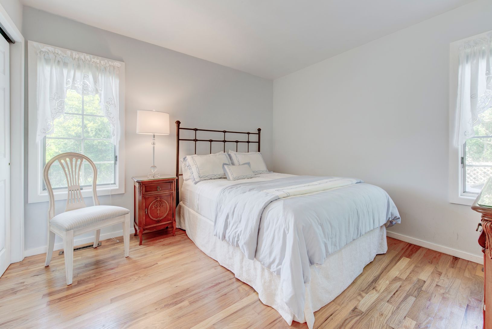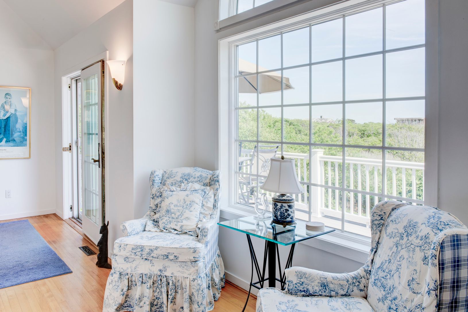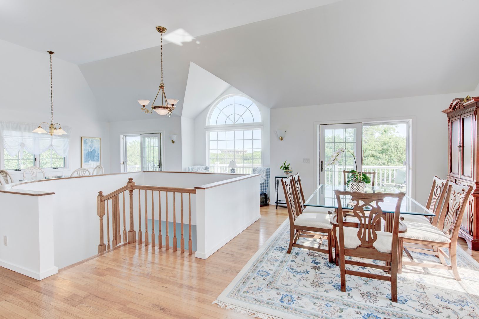 Walk to ocean and town and Shadmore Reserve from this immaculate three bedroom, two and a half bath hidden gem. Original owner built in 1993 by one of Montauk's renown builders.. This charming cedar shingled home is an upside down contemporary. Bedrooms on entry level with a sweeping staircase to spacious living area with cathedral ceilings, open kitchen, dining area, living room with wood burning fireplace, and half bath. Step out onto de