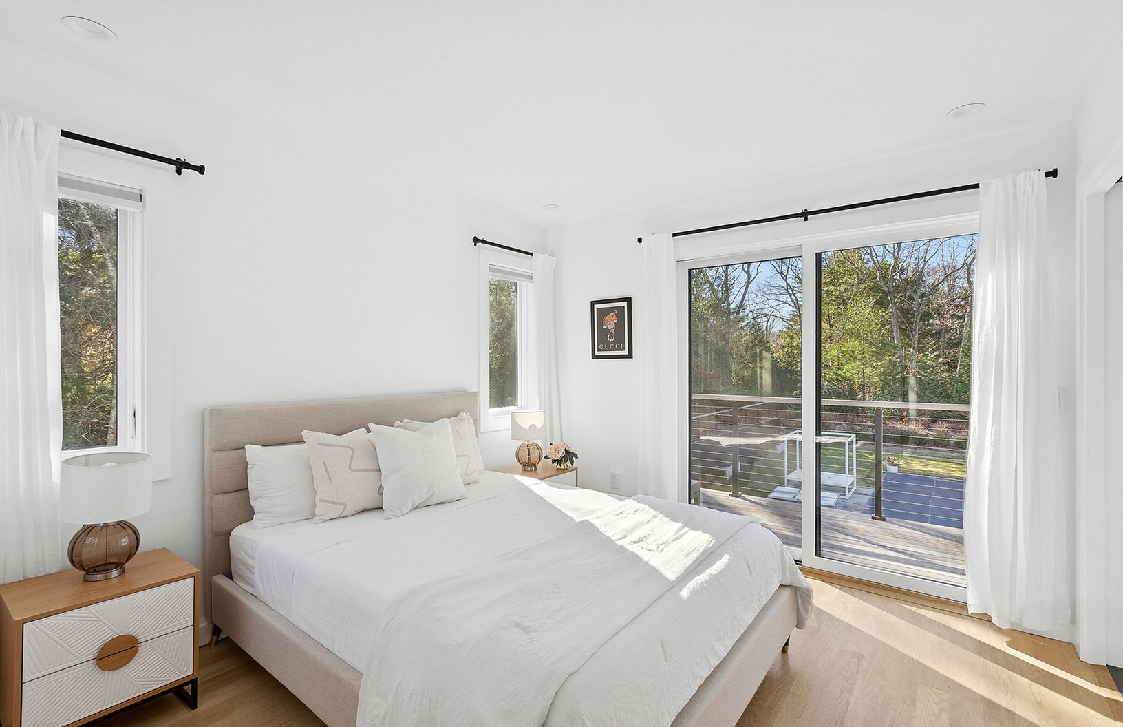 Beautifully open, bright and thoughtfully expanded, this recently renovated 5 bedroom, 7.5 bathroom residence offers exceptional privacy and comfort throughout. Each bedroom is en suite and strategically positioned to provide its own quiet retreat. The chef's kitchen features generous workspace and high-end stainless appliances. The kitchen flows seamlessly into the light-filled living areas. The first and second floors together offer approxim