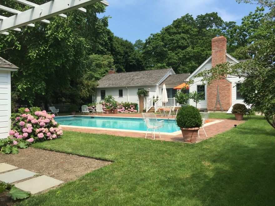 This is the quintessential cottage, located on just over half an acre in sought-after North Haven Village. Oozing charm, this 40's cottage has 3 bedrooms, 2 baths, 2 living areas, 2 fireplaces, and dining room. The gorgeous grounds incorporate a heated gunite pool, poolhouse and gorgeous, mature plantings and trees. If you're looking for the charm of yesteryear with today's conveniences, all just steps from Village, bay or beach, this is the o