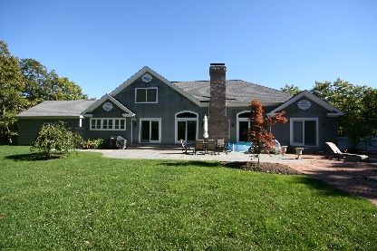 At the end of a lovely winding road is nestled this perfect Hamptons home featuring 4 bedrooms, including 2 downstairs masters, 3 baths, gourmet kitchen, open dining and cathedral ceiling living room with fireplace, and separate den which could be a fifth bedroom. The full basement currently hosts a carpeted lounge but, there is plenty of additional room to build a wine cellar, gym etc. The back yard has ample room for entertaining on the pa