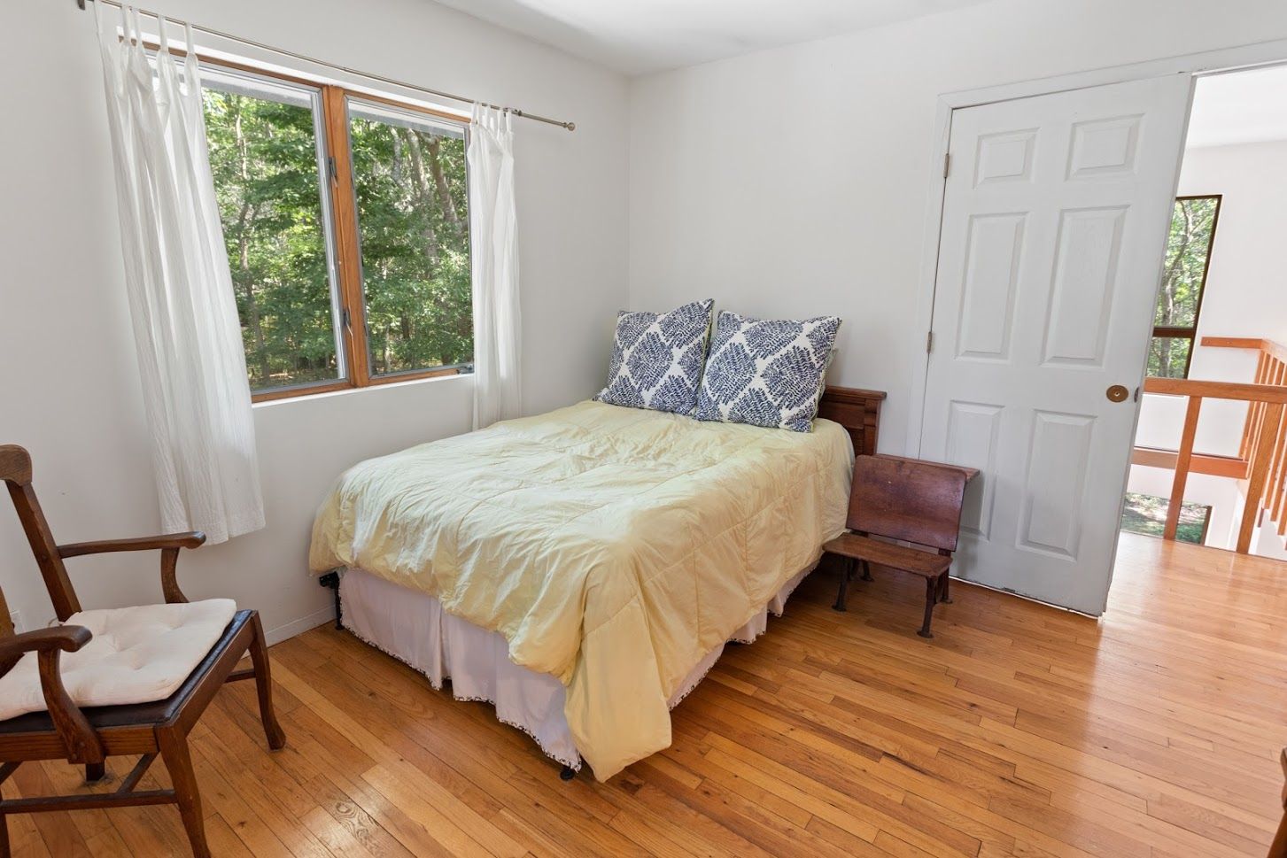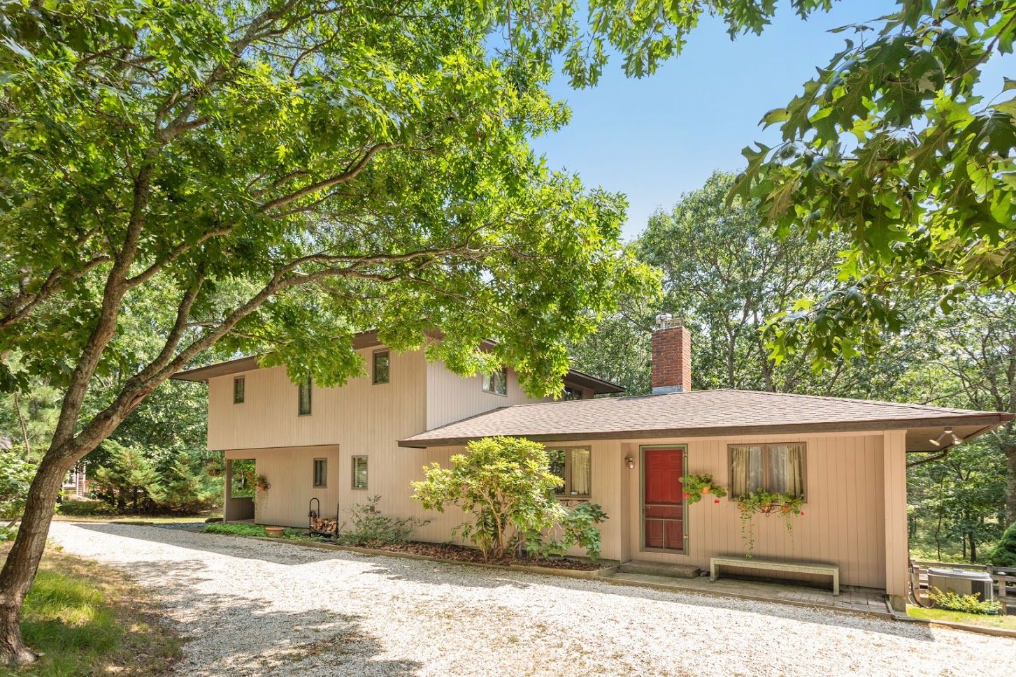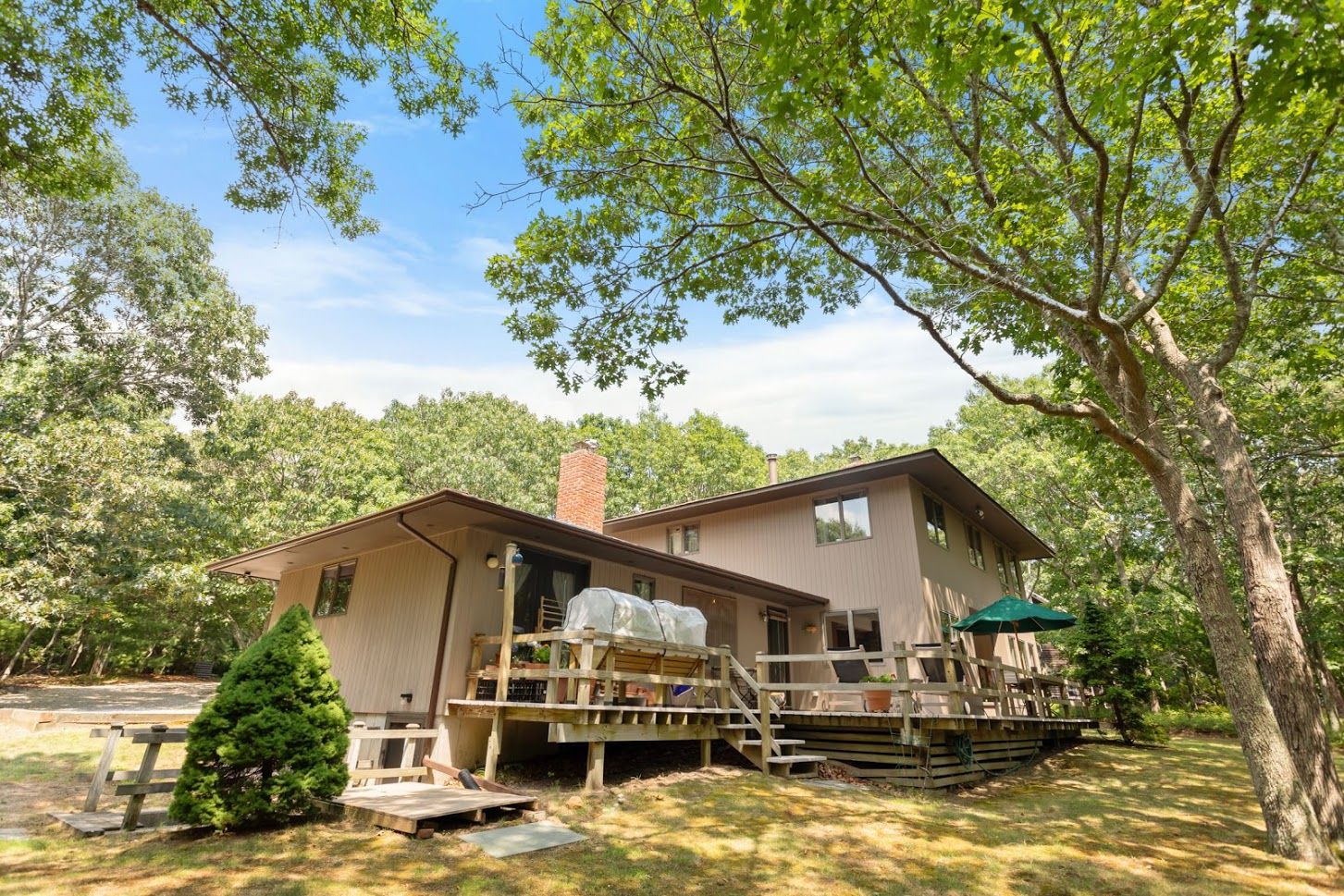 Located a the end of a private cul-de-sac on a shy acre of wooded land that borders a 4 acre reserve, sits this 2,400 square foot home. Four bedrooms, two+ baths, central air, two RAIS wood burning stoves, and spacious rear deck. Well-maintained property in close proximity to Sag Harbor and East Hampton Villages. Possibility for pool, studio, garage or other expansion. A quiet haven for artists and writers, or a home office with its own privat