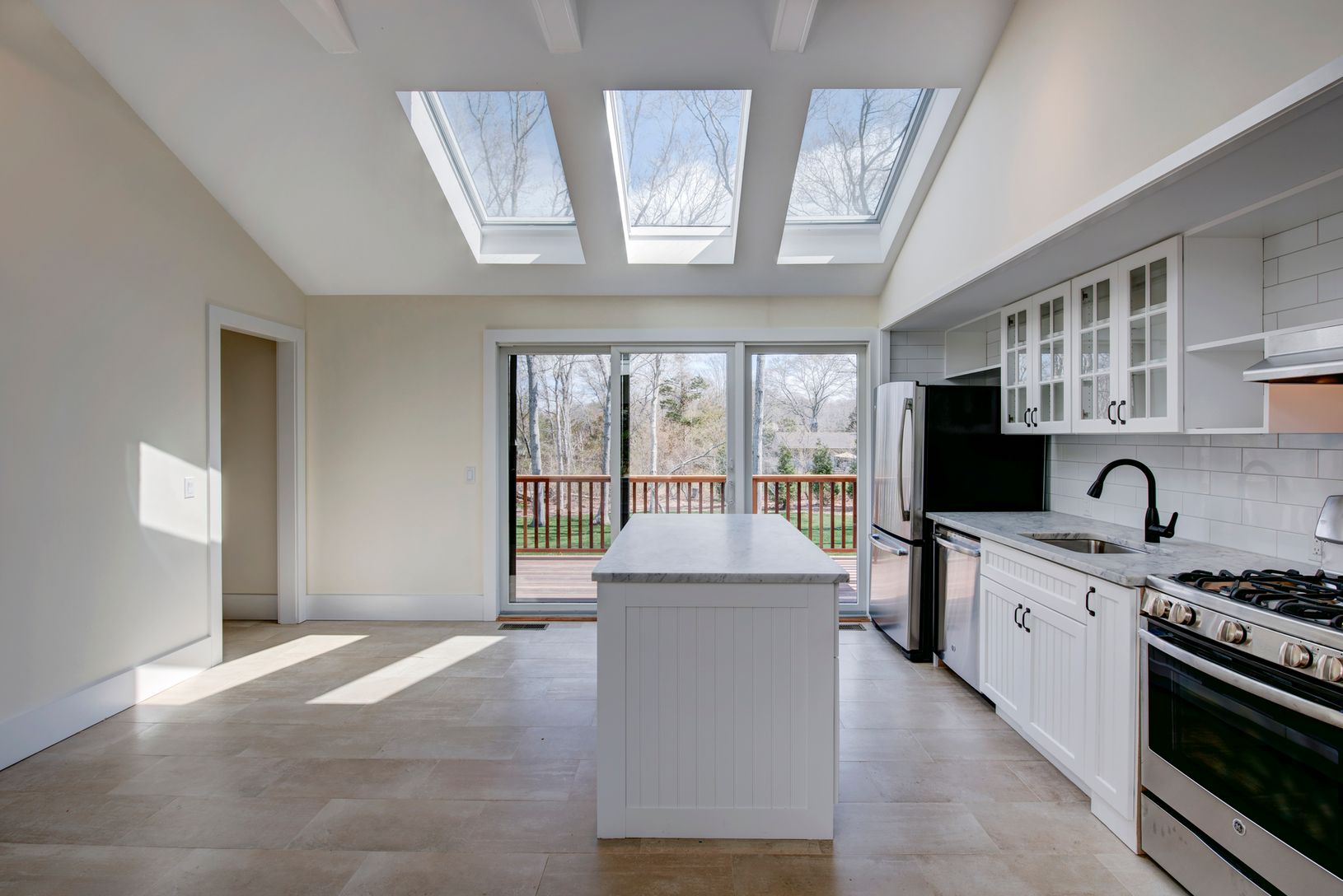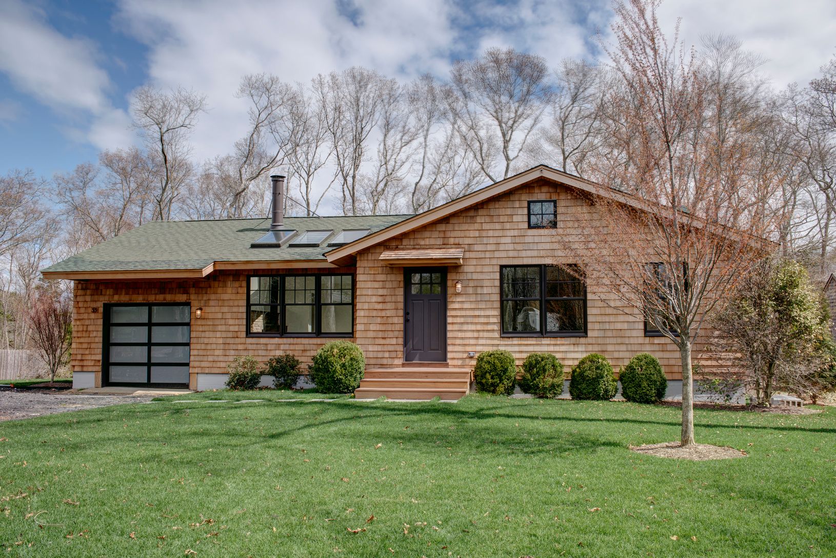 In a class by itself, this architect-designed cottage is sophisticated, crisp, and clean. Located on a quiet street with nearly a half-acre of land, seven skylights allow sunlight to flood every corner of this classic shingled-style home. Construction was just completed making the property perfectly turn-key. The first floor features three bedrooms, a full bath and a charming powder room. The open layout living room and kitchen has cathedr