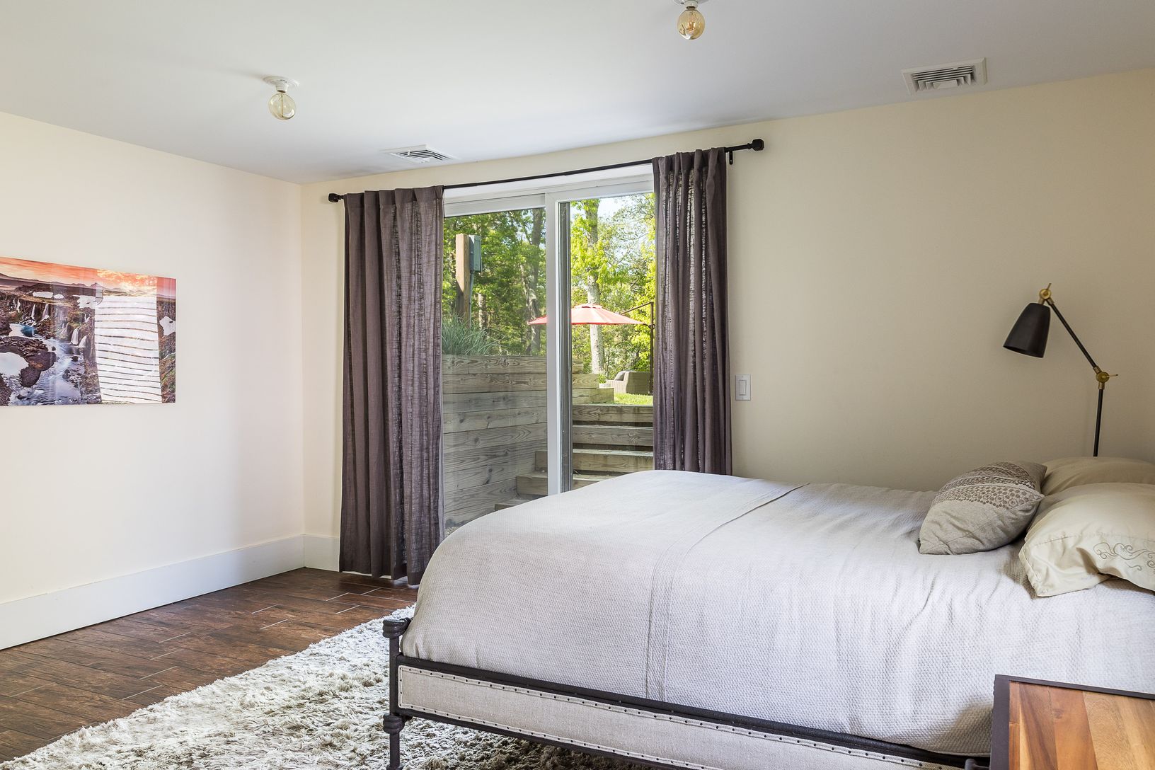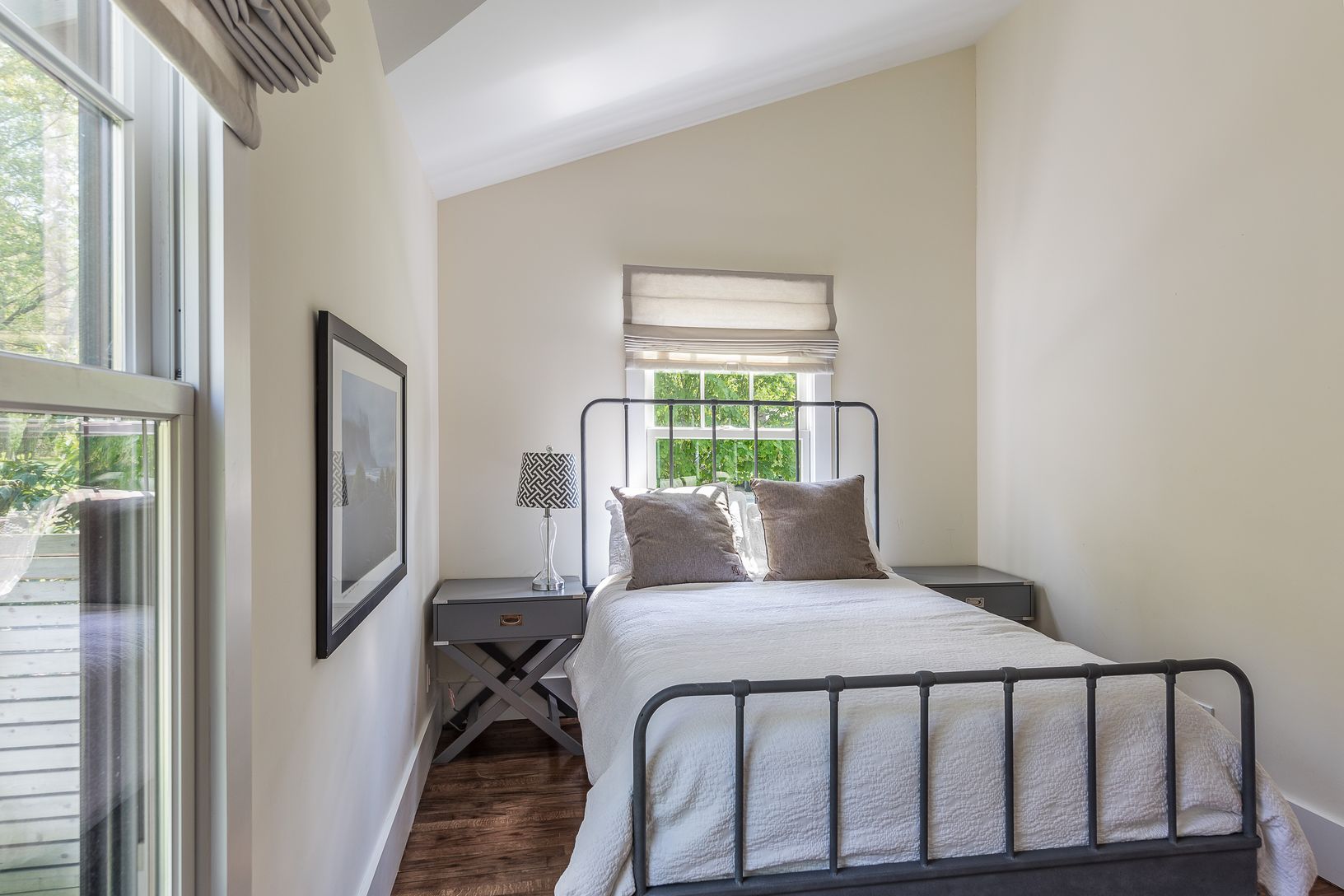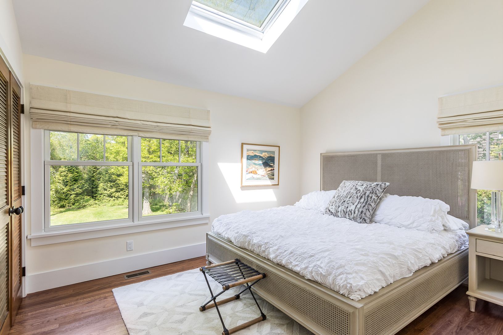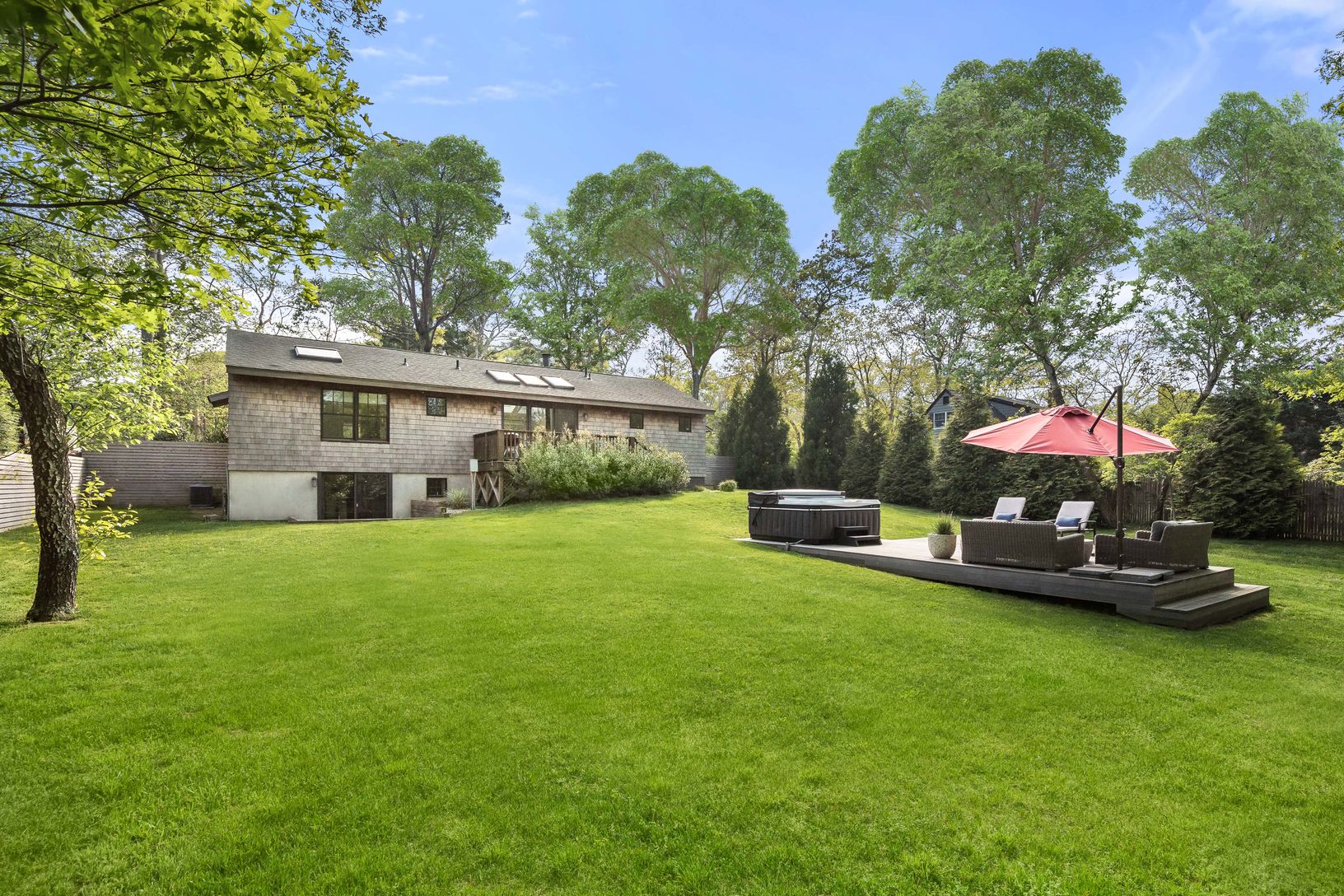 Fully renovated and meticulously designed, this charming chateau-style cottage on a shy half acre is everything you've been looking for. Located on a picturesque and lightly traveled street, this stylish cedar-shingled home is flooded with light that pours in from skylights and perfectly complements the airy layout. The open living and kitchen space features cathedral ceilings with exposed beams, a wood burning fireplace, stainless steel appli