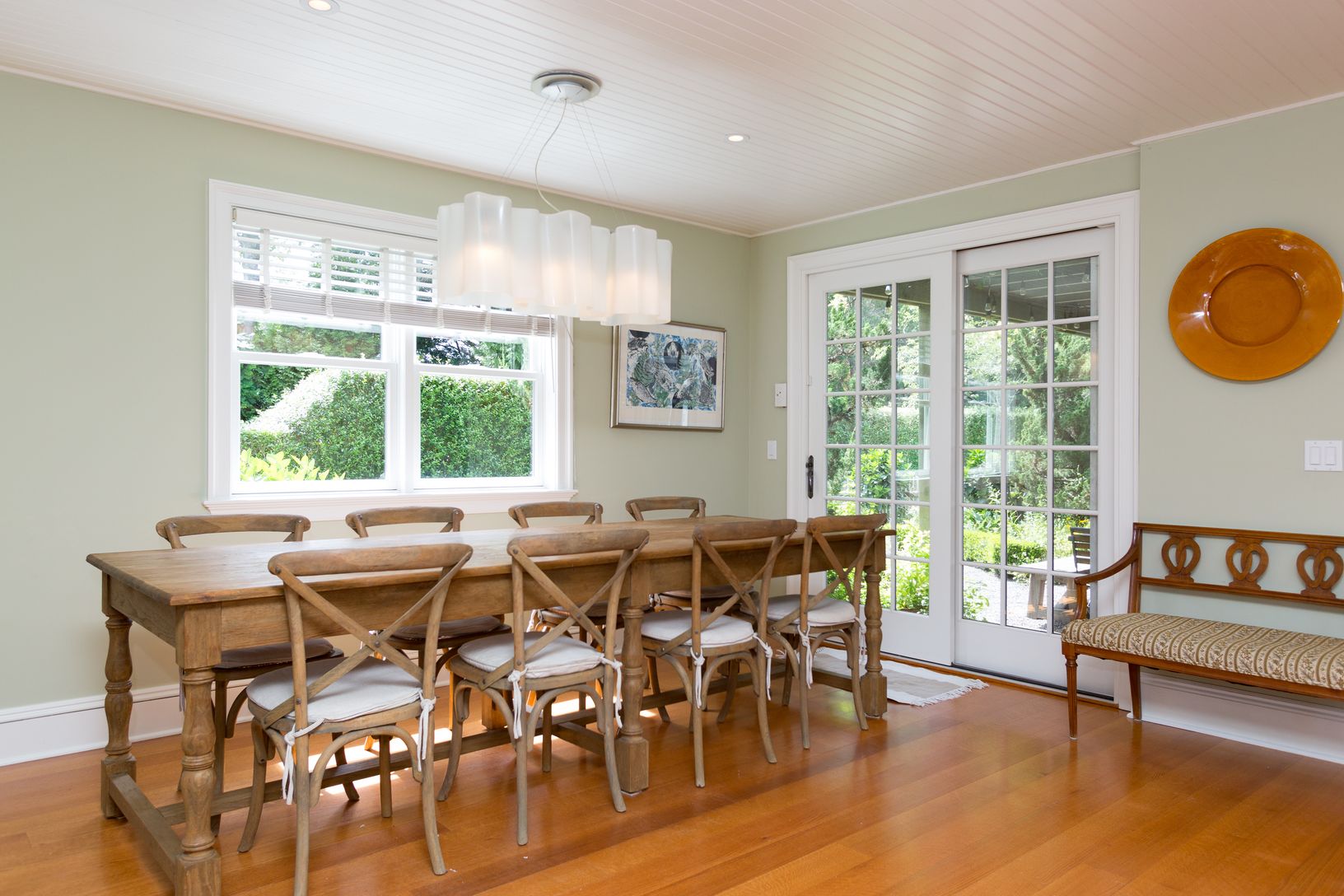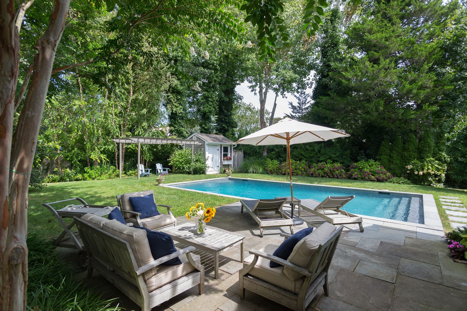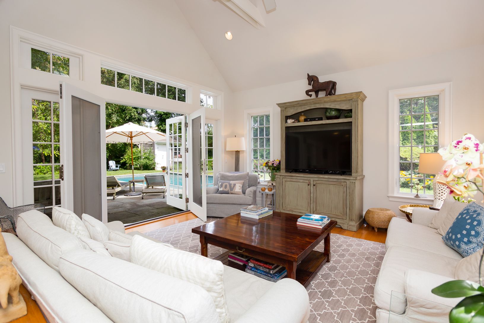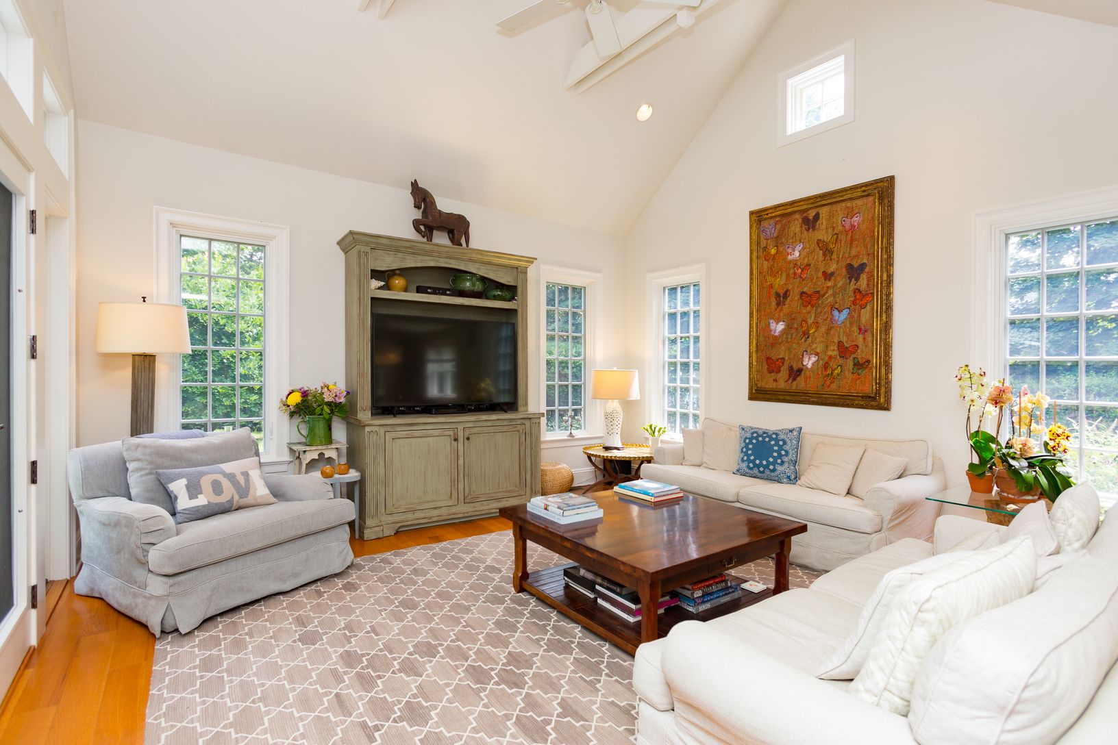 This incredibly charming property sits one house over from East Hampton Village line, on a quiet block with no through traffic. There is sidewalk access to shops, restaurants, and Herrick Park. Lovely mature landscaping compliments this pristine home which was expanded with all new systems in 2010 and then updated since. In addition to the formal front living room is an open plan great room flowing from the kitchen to dining space and double-h