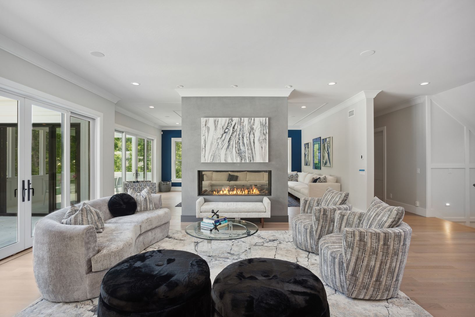 Set to be completed in June 2022, this 7,000 +/- square foot home full of amenities. Enter through the glass doors to a double-height grand foyer, to a Professional kitchen, formal dining room, great room and den with fireplace and first-floor junior master. Upstairs there is a private master suite with private and balcony. Three additional en-suite guest suites and d laundry room with 2 sets of washer dryers, round out the top floor. The lowe