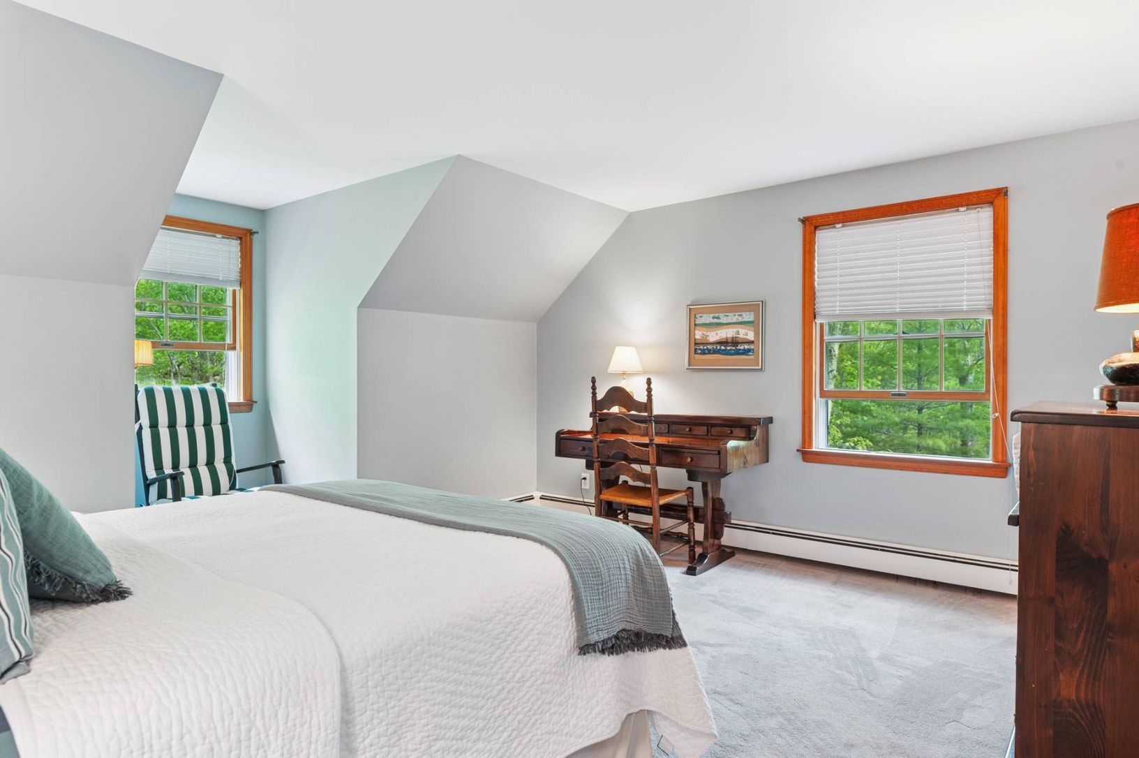 Down a long quiet street bordering the Long Pond Greenbelt, this warm and friendly home is waiting for you. The first floor offers a country kitchen, dining room, a large living room and a bedroom with two twin beds. The living room has a television for relaxing and a beautiful fireplace. The bedroom is ensuite and has a nice walk-in closet. The laundry room is right off the kitchen for your convenience. Upstairs is an ensuite primary with a k