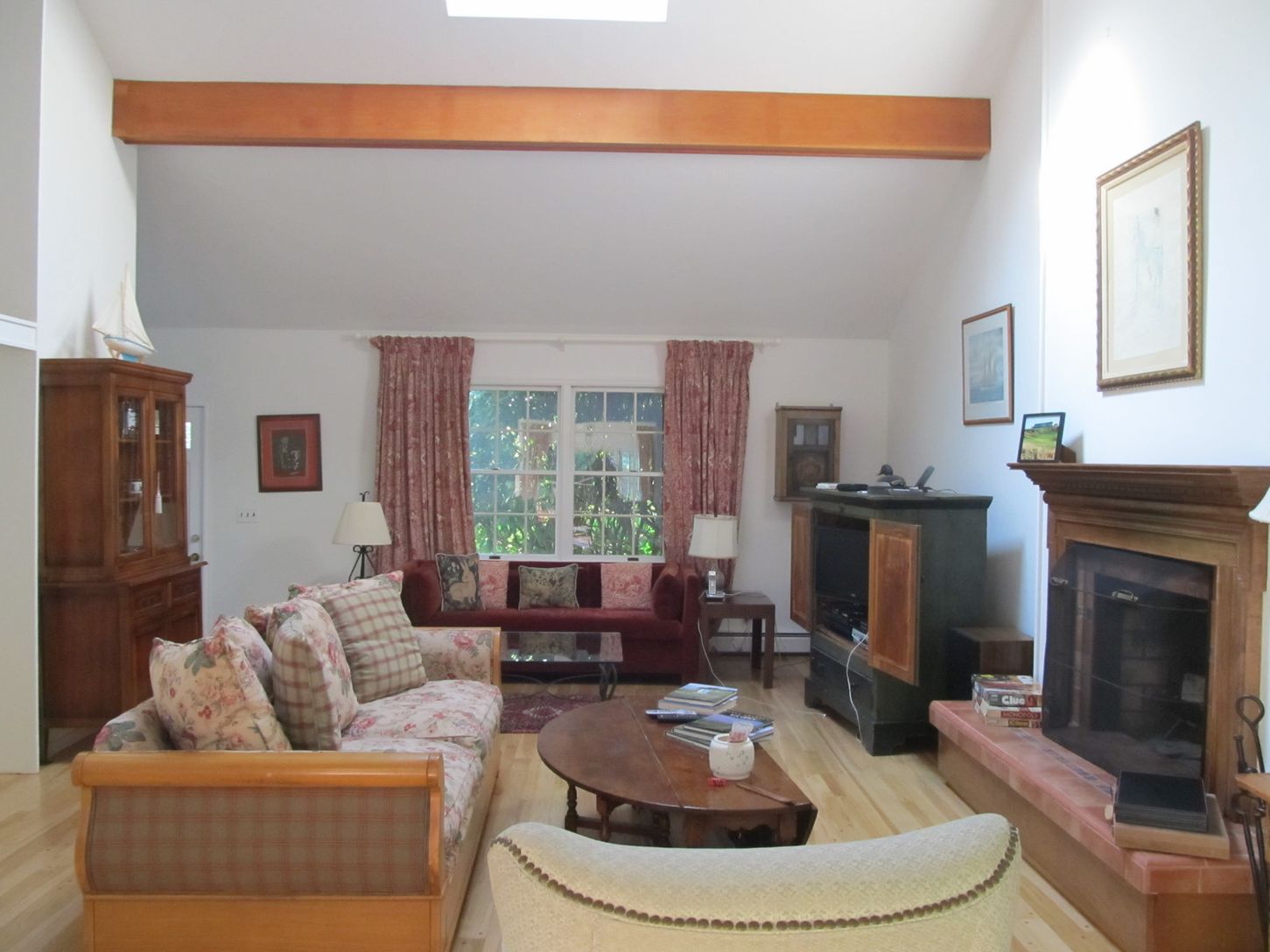 Nestled privately on a just shy acre, this charming South of the Highway home is only moments away from famed Flying Point Beach. Featuring 4 bedrooms, 2 full baths, a large family room with fireplace, eat-in kitchen, a dining room opening up to the mature gardens with a fireplace, 2 car garage, and a newly heated pool, this home is ready "as is" or has substantial opportunity as main structure can be 6,000 sq. feet.