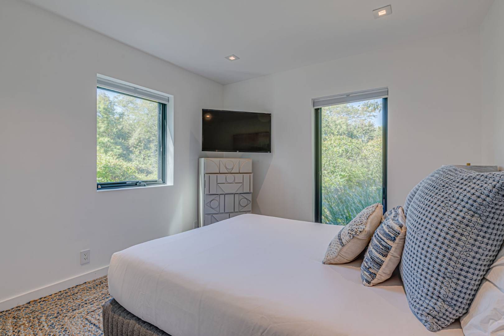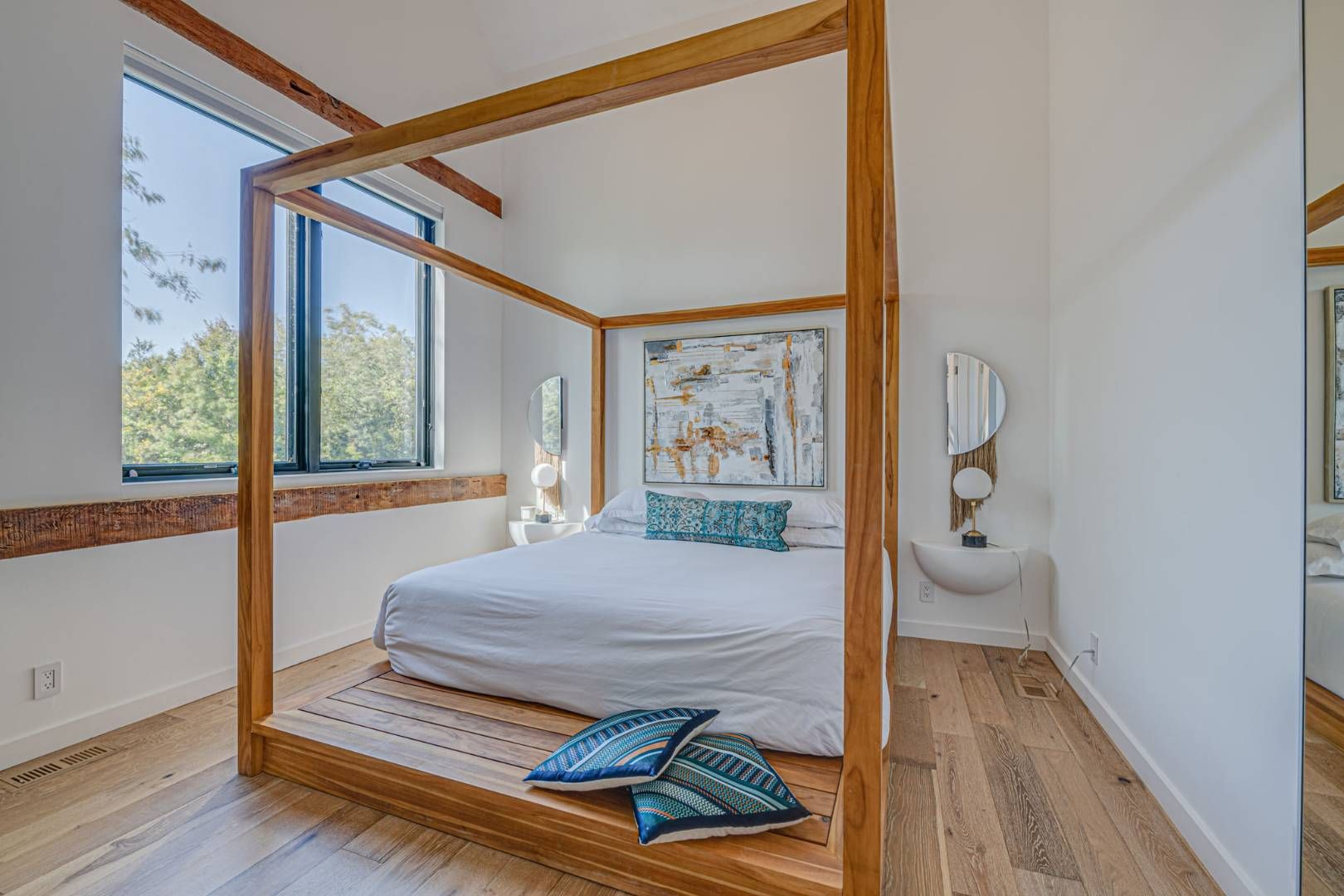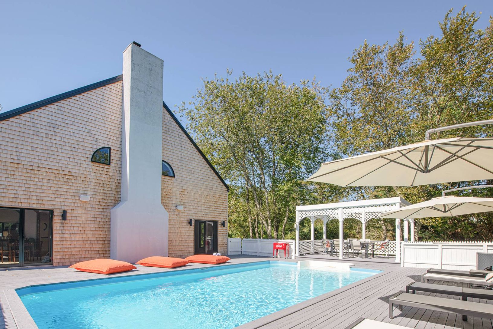Perfectly located just 2.5 miles from exquisite ocean beaches, this South of the Highway gem is the most compelling opportunity on the market. Offering a unique blend of history and modernity, the original barn structure was converted by designer George Dandridge into a chic retreat in 1980. Set down a long flag driveway and adjacent to acres of open farm fields, the authentic post and beam structure creates an expansive, open and airy feel. T