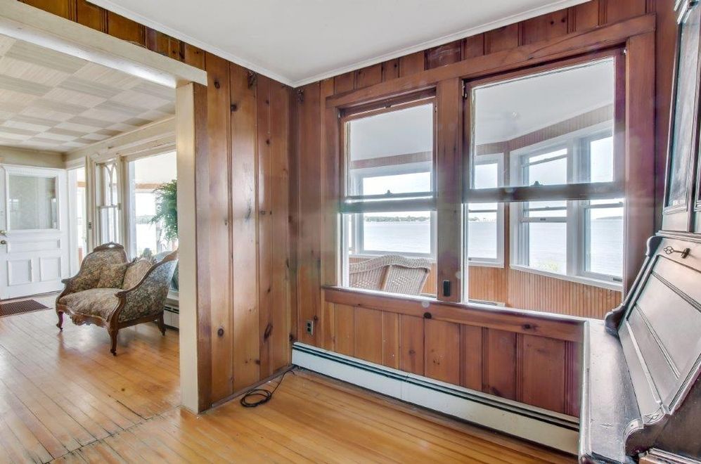 100 Feet of waterfront overlooking Pipes Cove and Shelter Island Sound. Unique 1890's cottage features fireplace, 3 bedrooms, 2 baths, central air and 2 car garage.