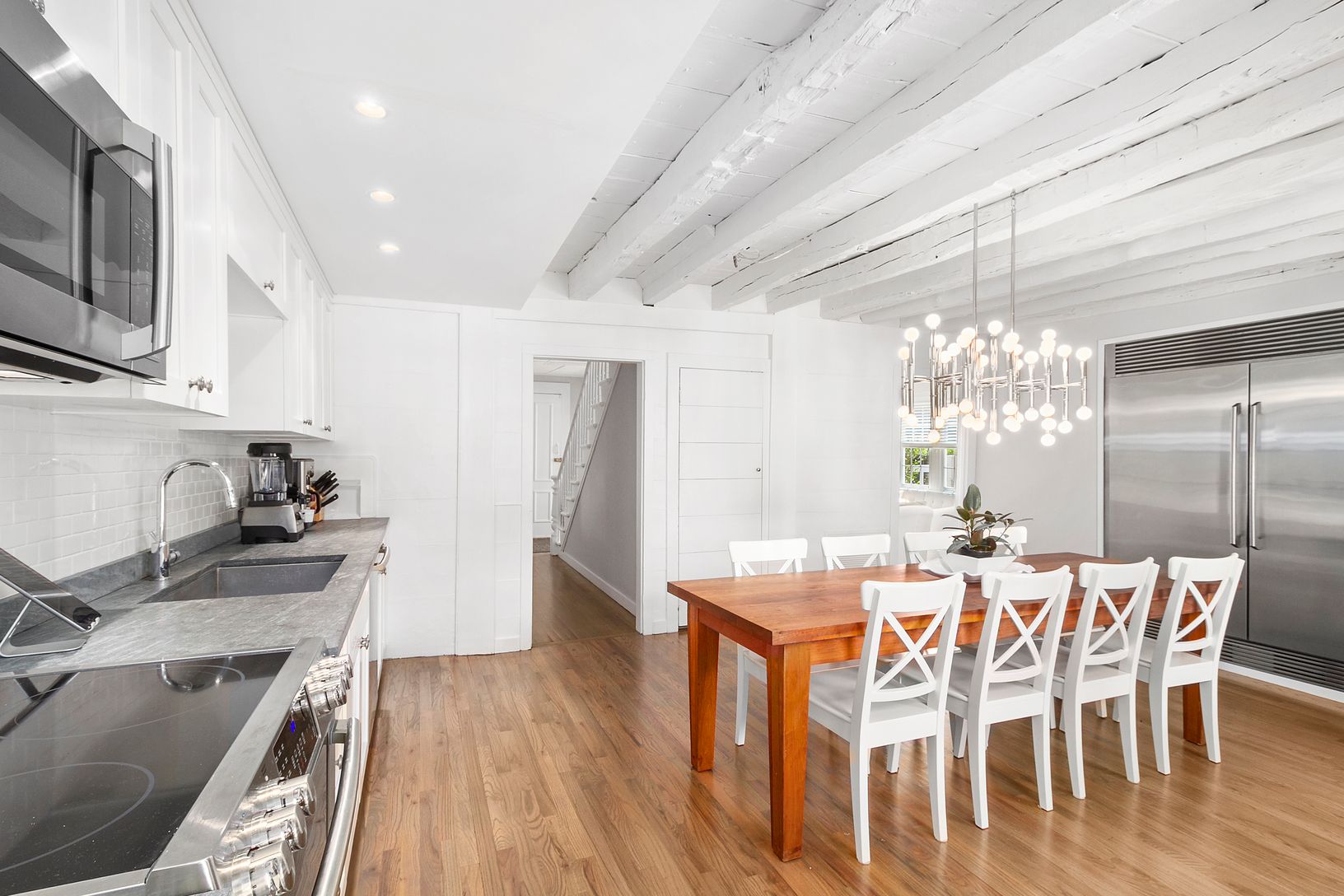Located in the heart of Amagansett this charming traditional home built in 1900 and fully renovated in 2015 is truly one of a kind. This home is a legal two family residence with two legal kitchens and separate apartment. Offering six bedrooms three full baths and one half bath, sited on .67 acres with 3,700 sf of finished living space. All of the old world character is intact with rich hardwood floors and exposed hand hewn beams, yet the home
