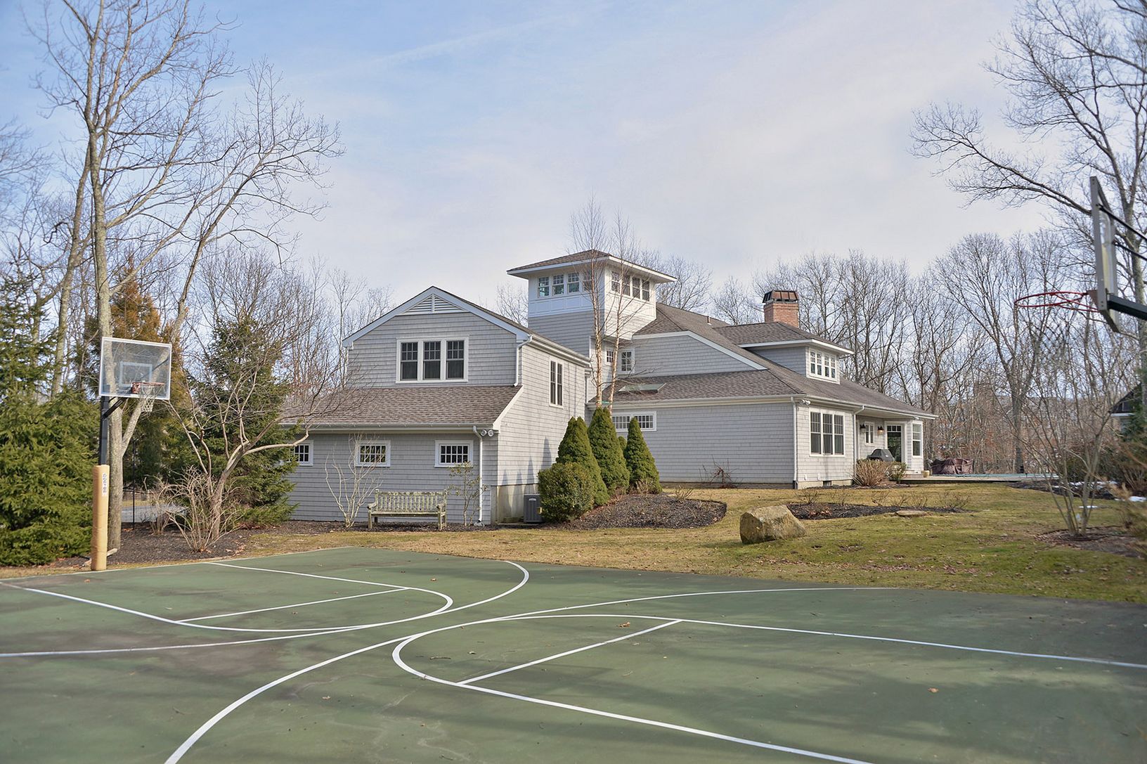 A long, winding driveway takes you to this spacious home with many amenities for summer enjoyment. There is a master suite on first floor for your convenience, plus four bedrooms upstairs. Other features include a professional kitchen with generous eating area, a formal dining room, media room, heated pool, tennis court and basketball court and a finished basement with additional space and full bath for staff. A must see. RP180535