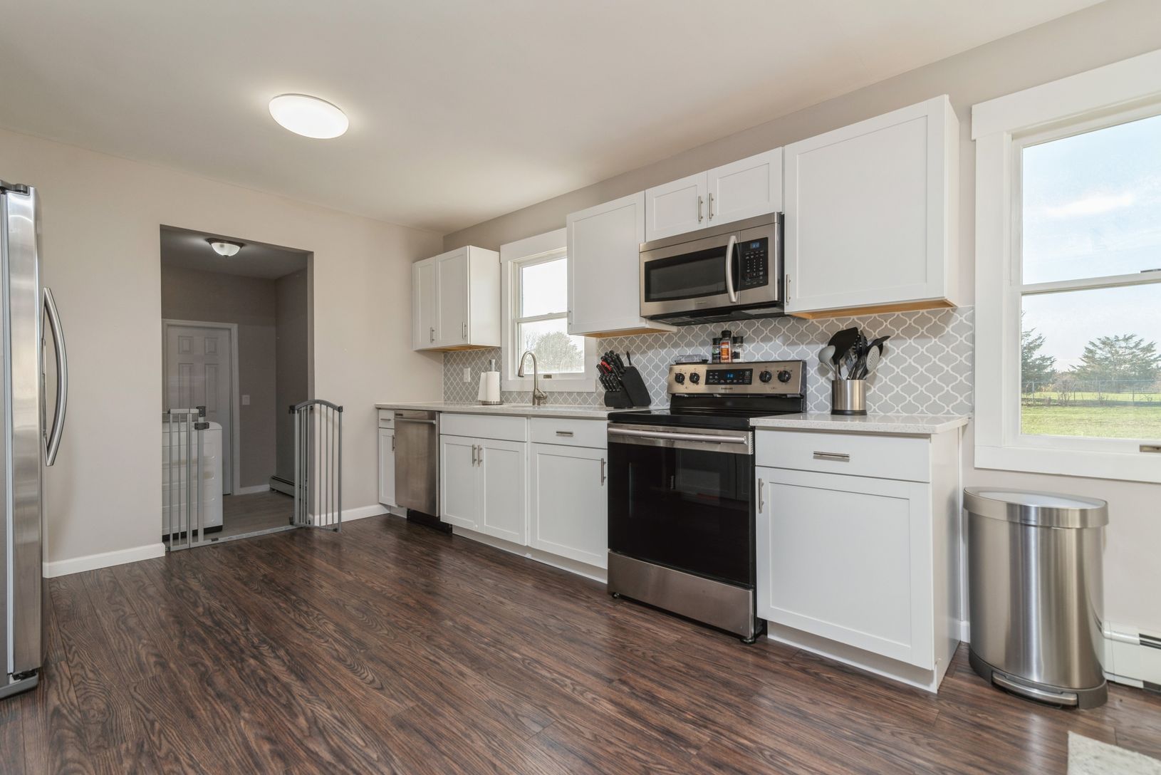Situated on the North Fork and nestled amongst farms & vineyards is this beautifully updated home on 1 acre. First floor features two large bedrooms, brand new modern bath room, a brand-new kitchen with back splash, white shaker cabinets, stainless steel appliances & quartz counter tops. Second floor offers Large Master bedroom, full bath & additional bedroom this home is dream come true.