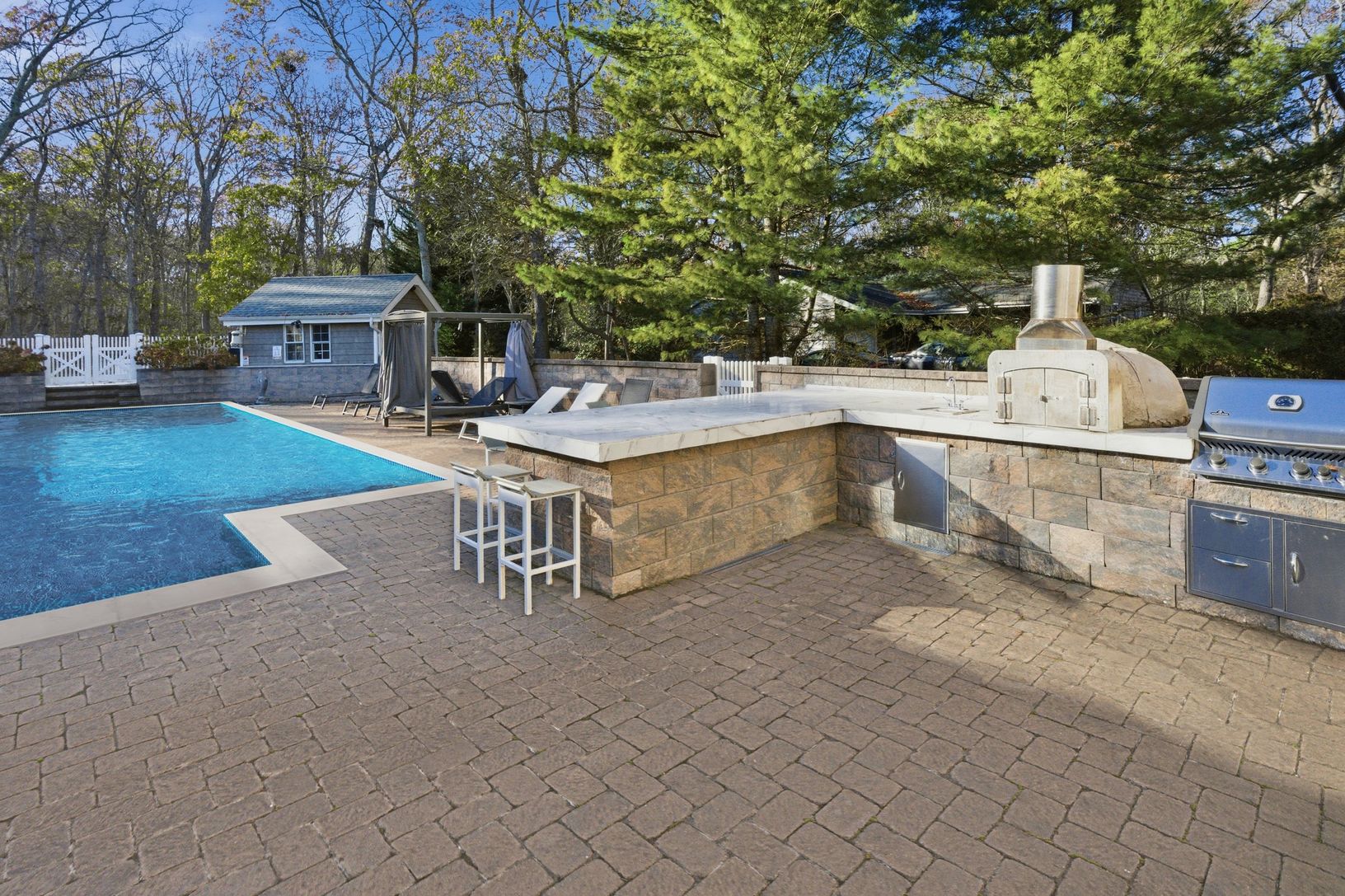 This Residence is perhaps THE LARGEST non-waterfront property in Hampton Bays! Offering over 5,100 Square Feet of Luxurious Living Space, featuring 5 Bedrooms, 6 1/2 Baths, a Fully-Finished Lower Level, and a Spacious Guest Suite above the 3-Car Garage, this home incorporates just about everything you could imagine and desire in a property, within a resort-like setting! The Residence boasts Water Views of the nearby Marina and glistening Pecon