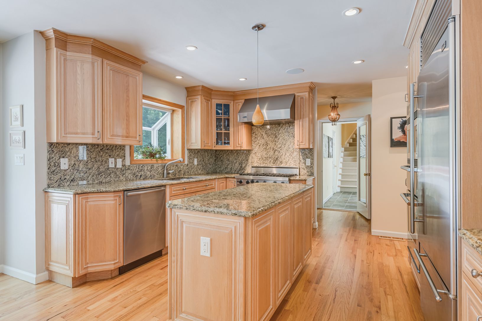Located just minutes from the heart of East Hampton Village and close to Bay Beaches, this immaculate dream home awaits. Enter to a soaring, light filled double height foyer which leads to a dramatic living room with wood-burning fireplace and dining room. The gourmet kitchen boasts all top-line stainless steel appliances stainless including Viking range, Subzero refrigerator, and Bosch dishwasher. There is also a second Thermador wall oven w