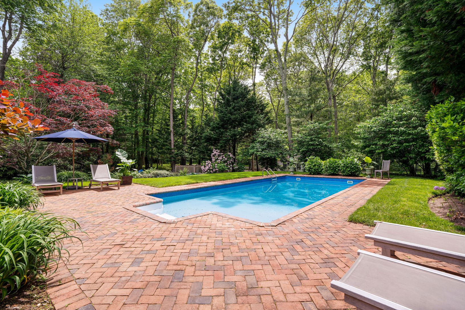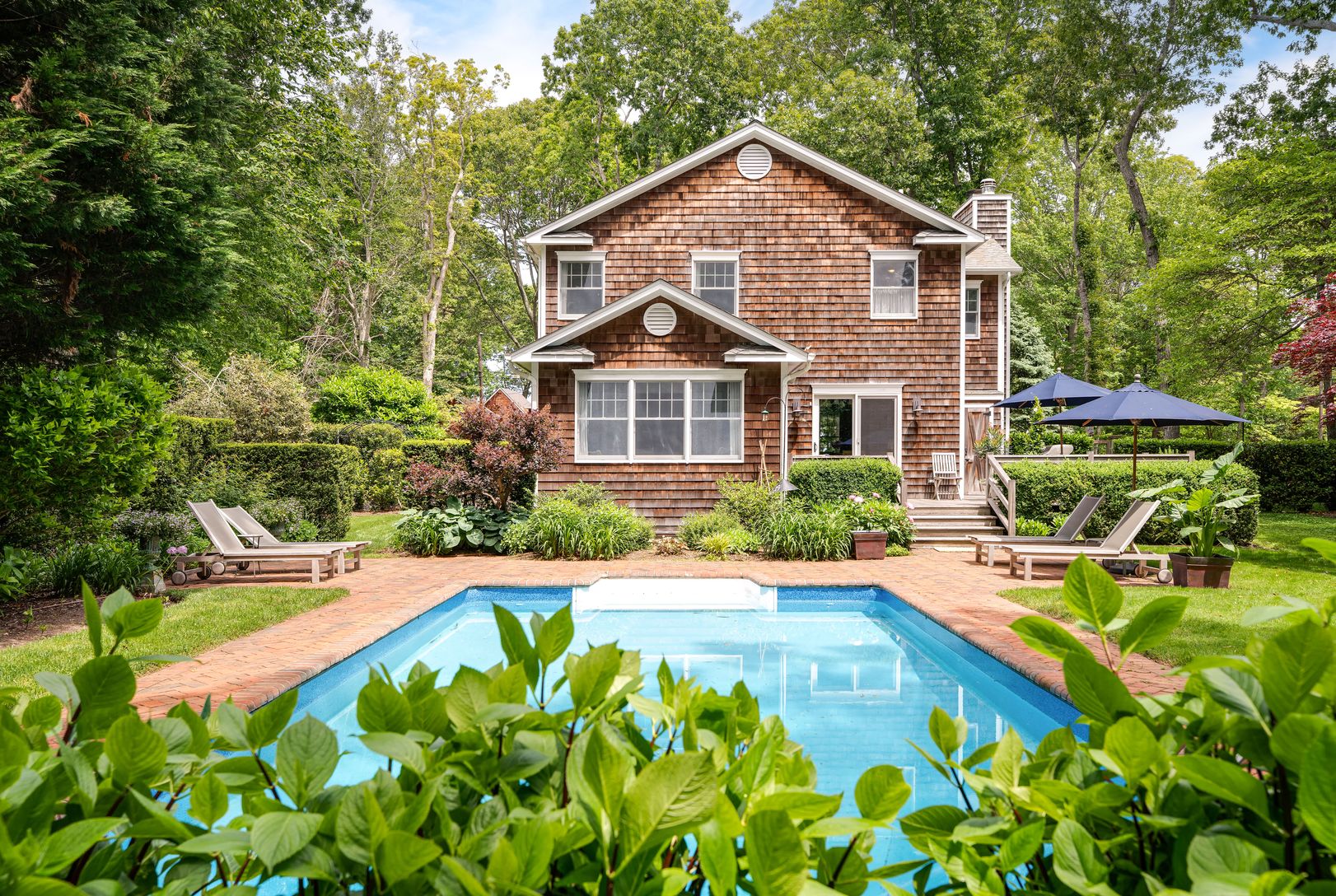 Set in picturesque North Haven Manor, this stylishly updated 3 bedroom cedar shingled traditional style home features a heated pool and excellent community amenities including two picnic esplanades, a wetlands preserve, and a private park and tennis court. Through the sun dappled covered porch, the home opens with a gracious living room with fireplace. A formal dining room leads to the gourmet kitchen wit