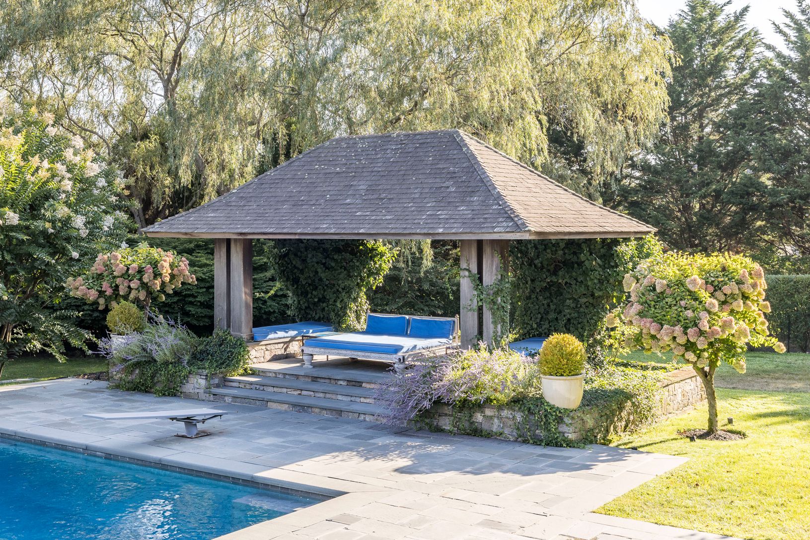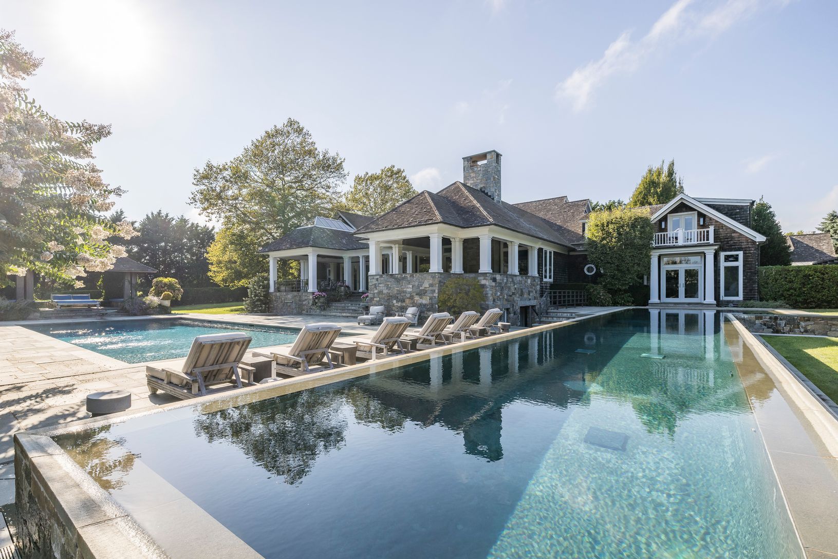 This magnificent Hamptons estate is the setting for splendid living south of the highway. Set on 2.25± gated acres in a private compound, the property encompasses 10,382± square feet of living space with eight bedrooms, seven full and three half baths. Originally envisioned by acclaimed architect Val Florio and framed by award-winning landscapes from Edmund Hollander, the property was masterfully reimagined in 2019 and further refined with a r