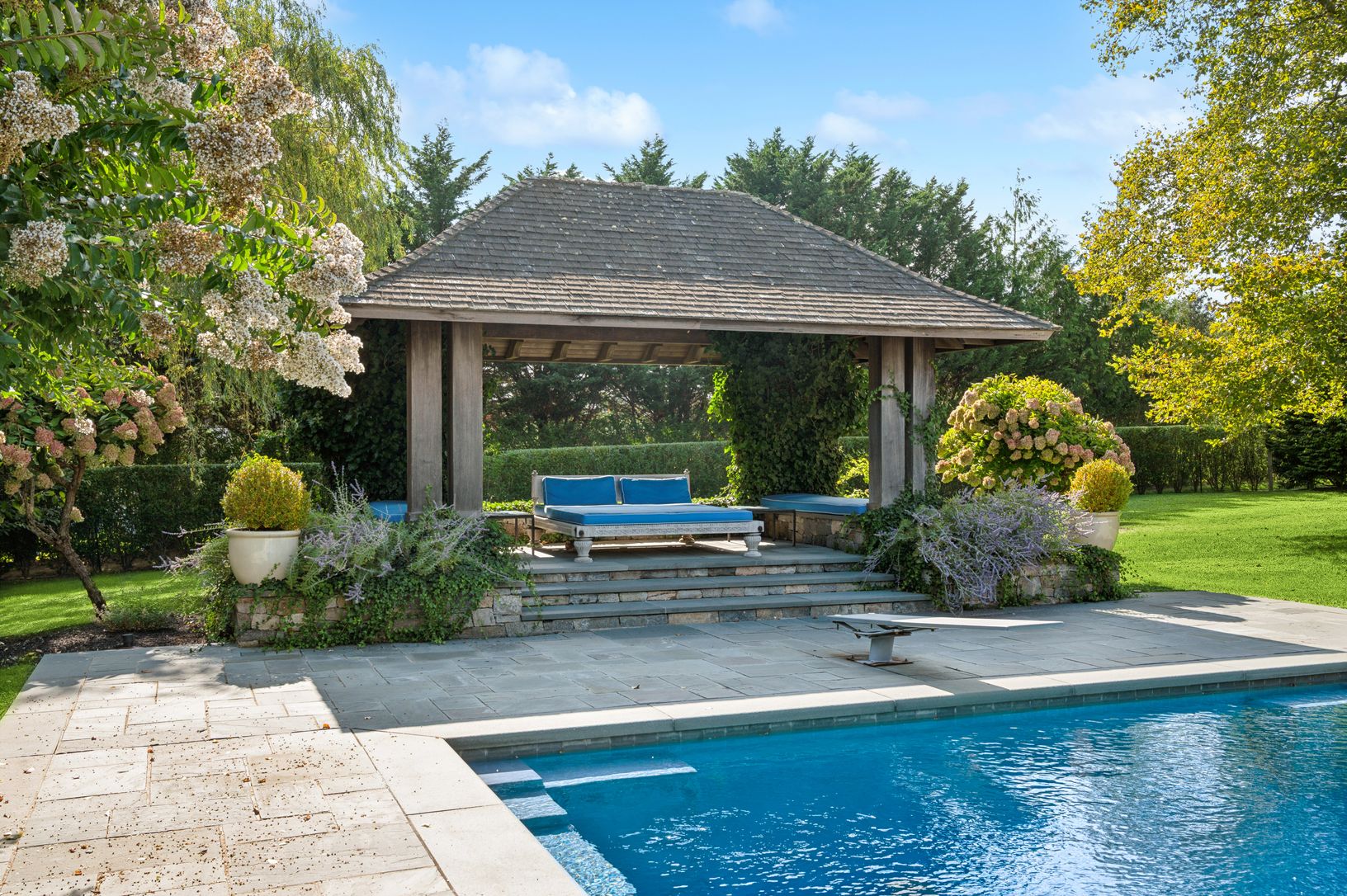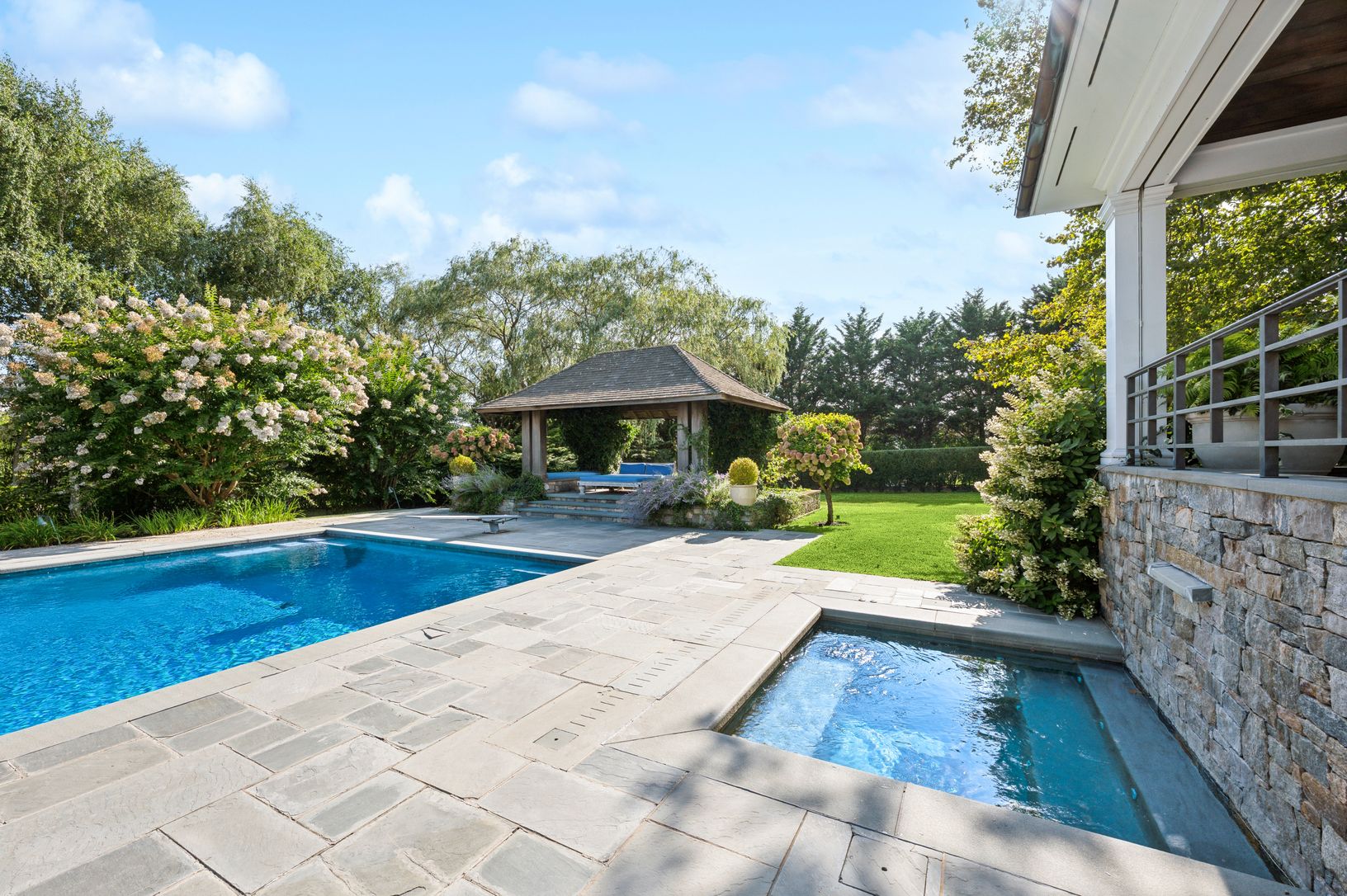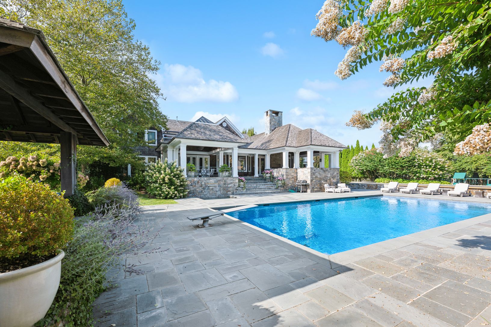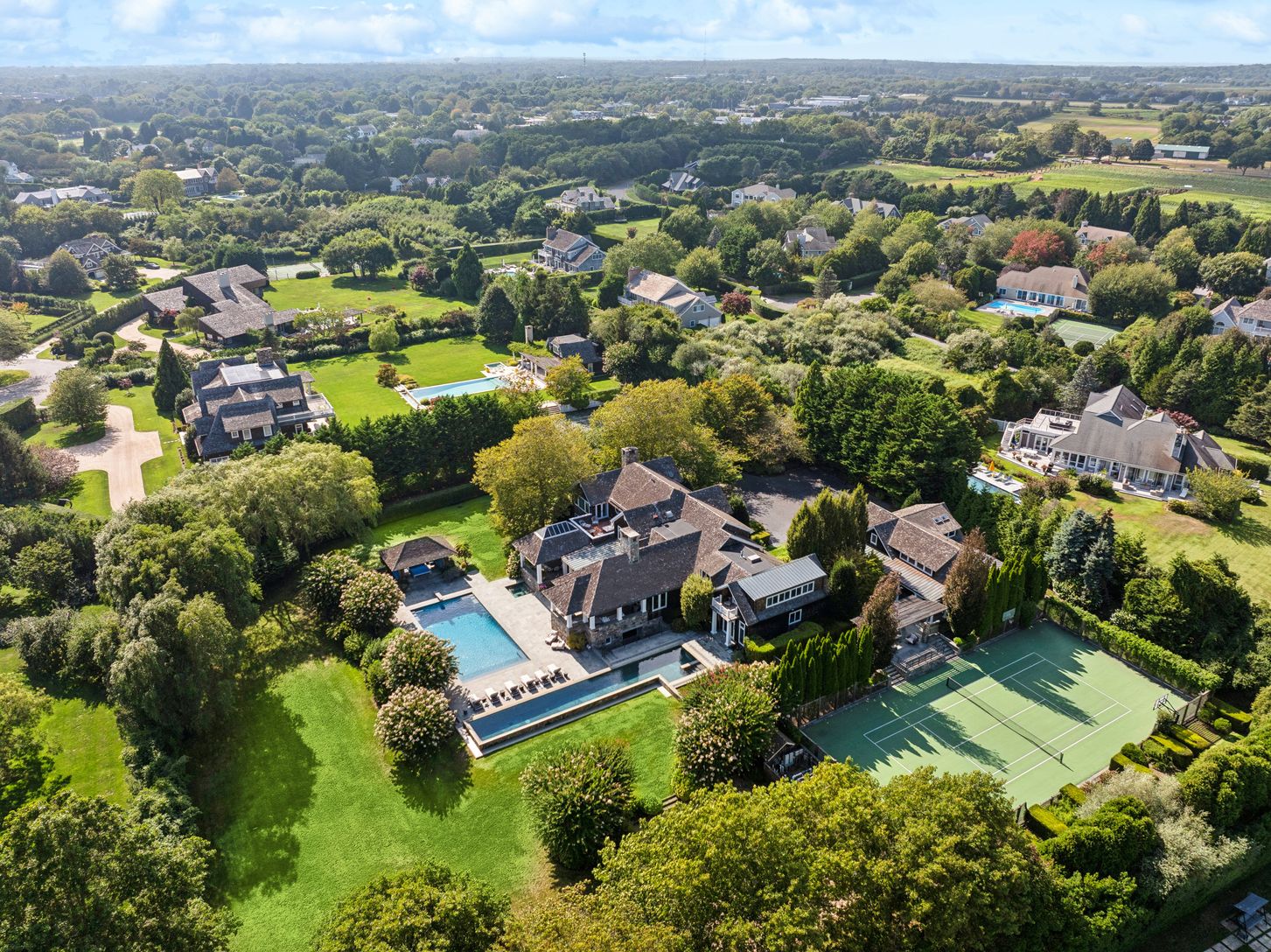 This magnificent Hamptons estate is the setting for splendid living south of the highway. Set on 2.25± gated acres in a private compound, the property encompasses 10,382± square feet of living space with eight bedrooms, seven full and three half baths. Originally envisioned by acclaimed architect Val Florio and framed by award-winning landscapes from Edmund Hollander, the property was masterfully reimagined in 2019 and further refined with a r