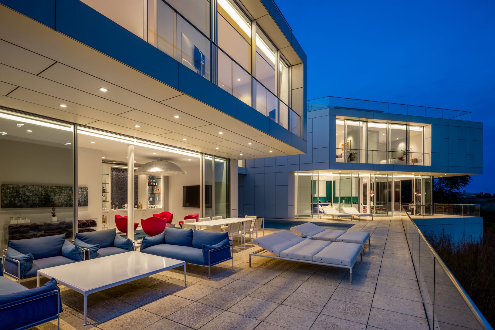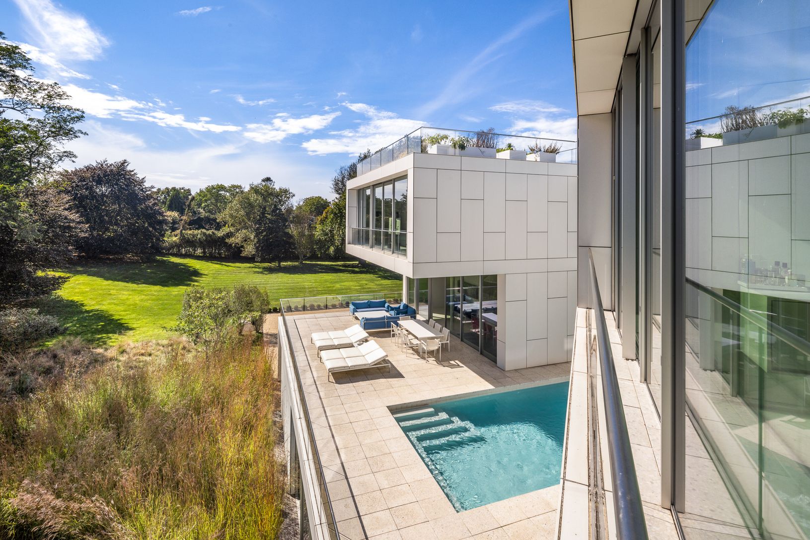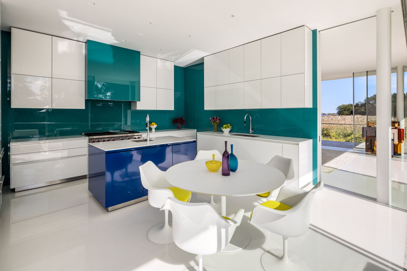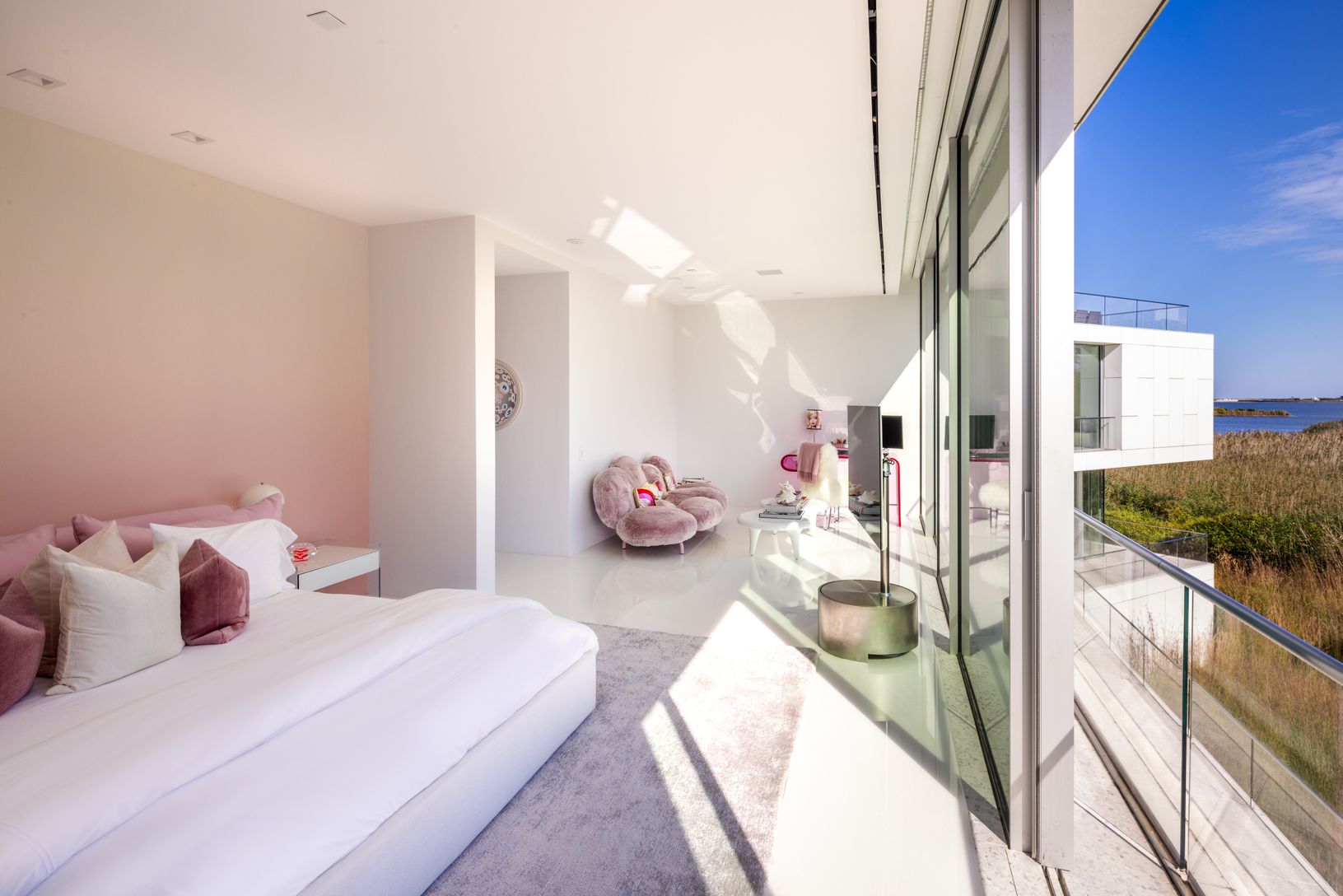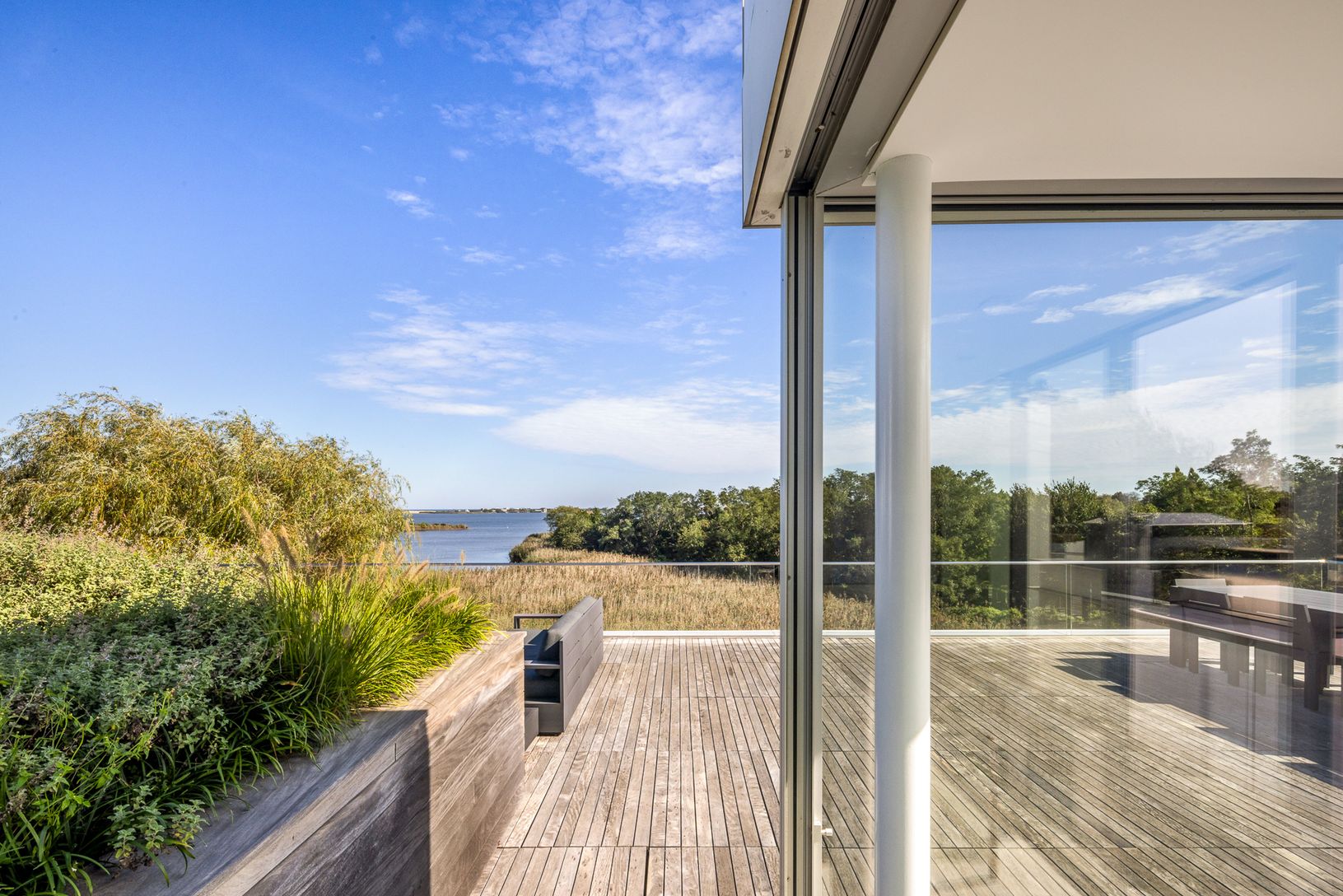 Welcome to this masterful modern waterfront home designed by renowned architect, Roger Ferris, located on the desirable Cobb Isle overlooking Mecox Bay and the Atlantic Ocean. This stunning home was designed and constructed with expansive floor to ceiling walls of retractable glazed frameless glass offering inspiring views from every room. Spanning across 9,700 +/- SF on 1.69 acres, this four-story steel frame home offers ample space for livin
