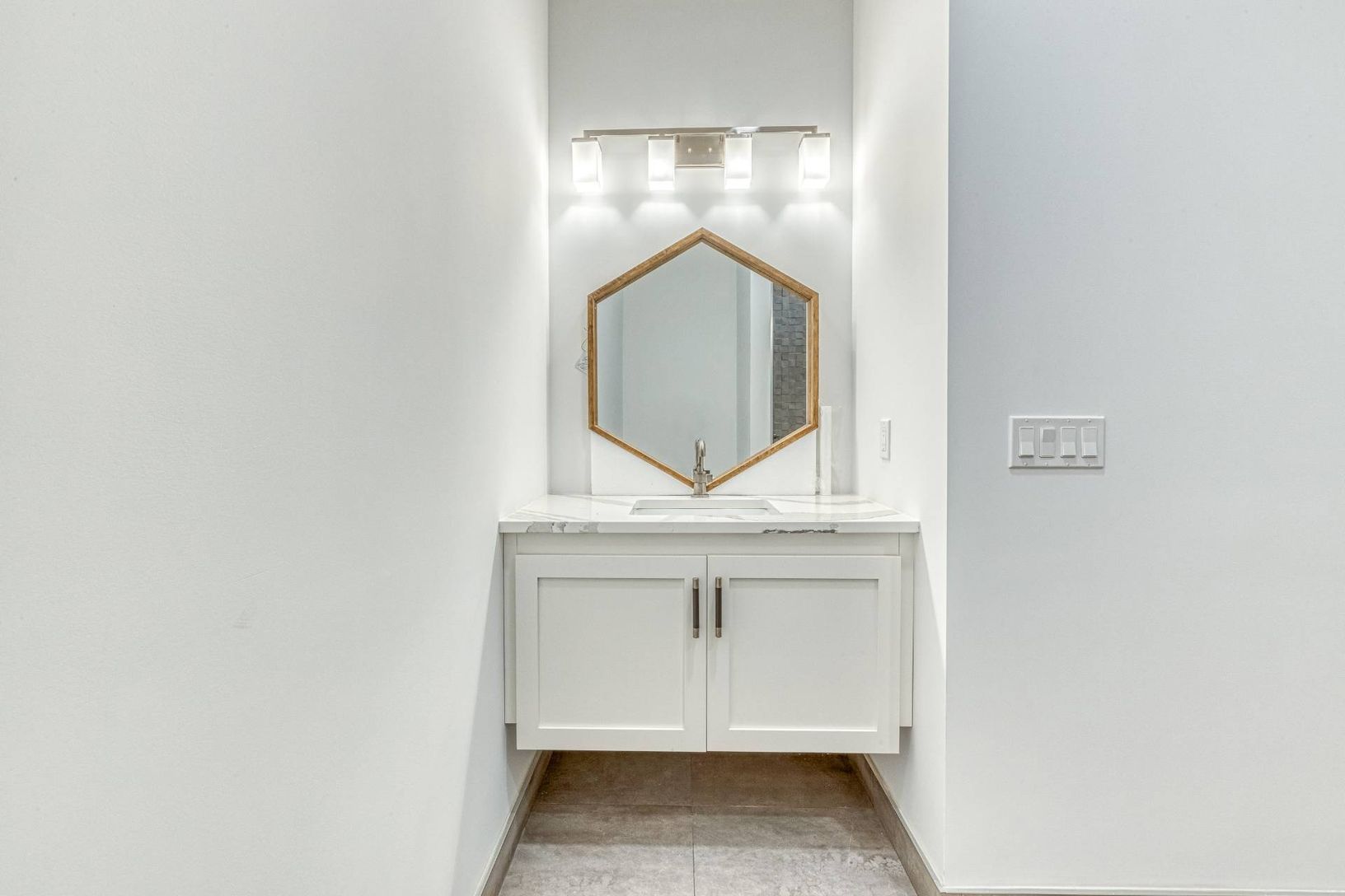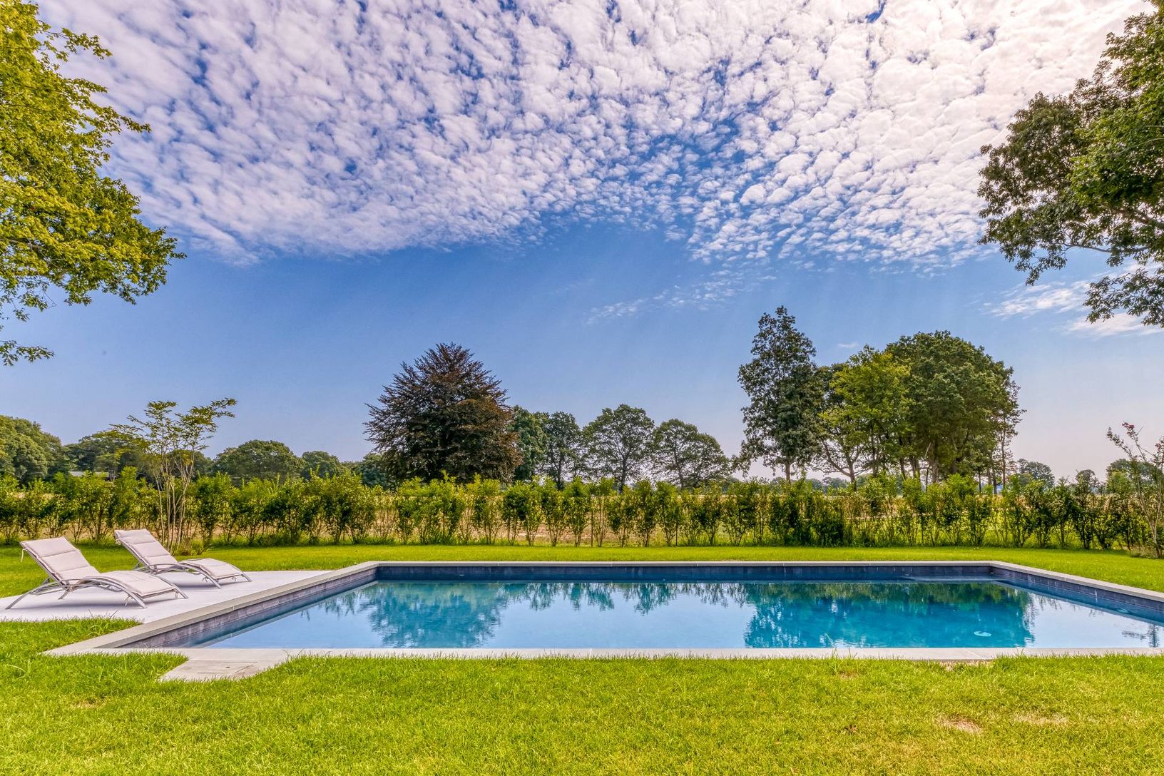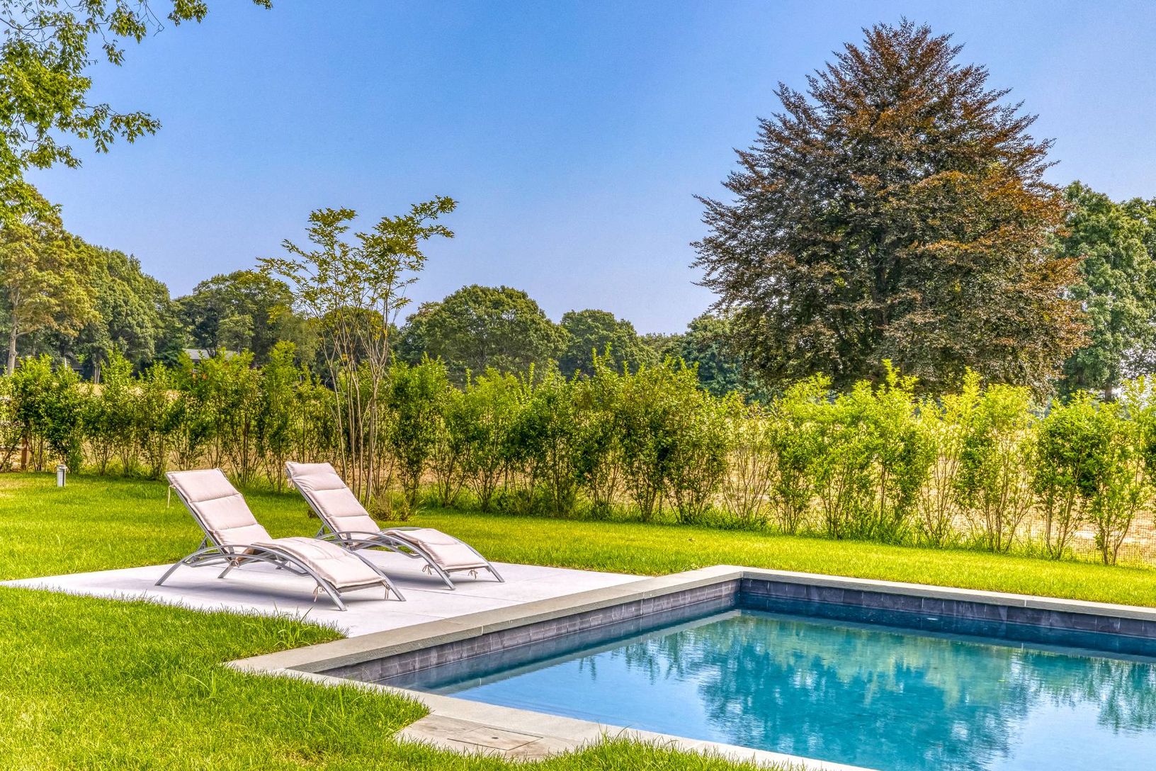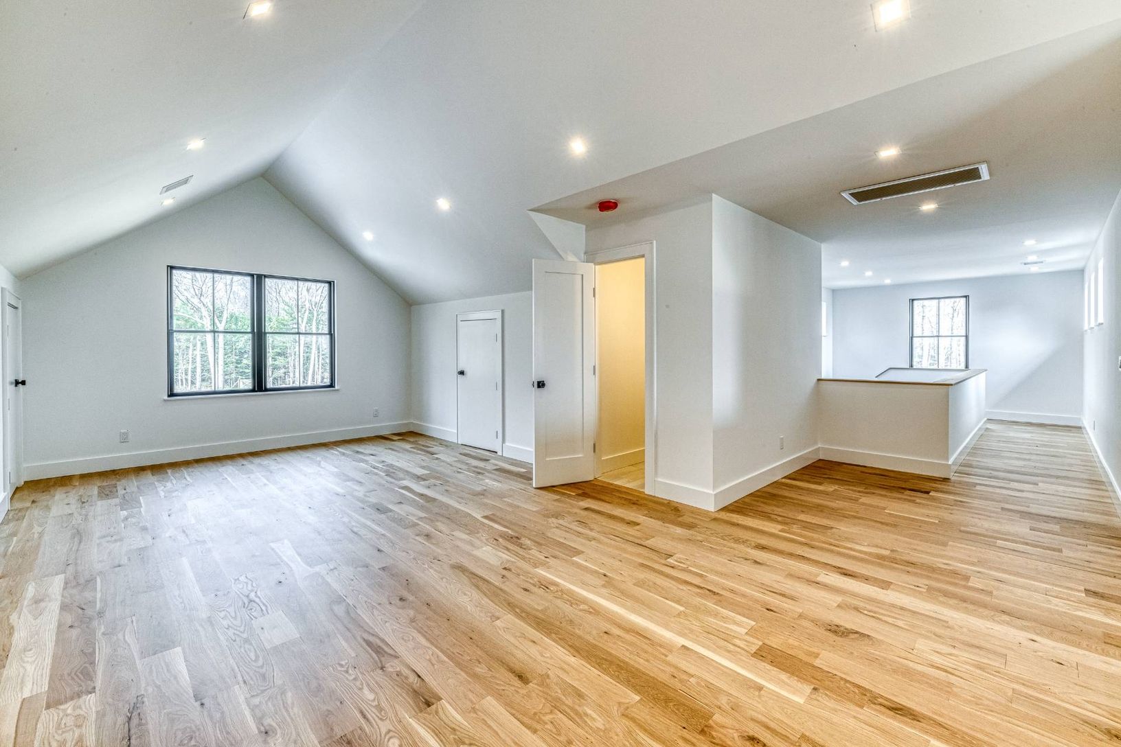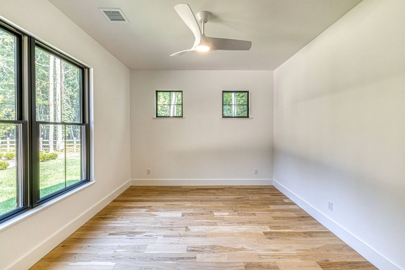 With completion by first week of May 2022, this new estate home on a shy acre bordering Gardiners Bay Country Club has highly appealing modernist nuances. Sited on the highest point of the property to capture glimpses of blue saltwater at Gardiners Bay, the entry offers a foyer with a gallery style wall and built-in cabinetry to display artwork. Just beyond the entry is an open concept with double height ceilings, teardrop shaped mid-century m
