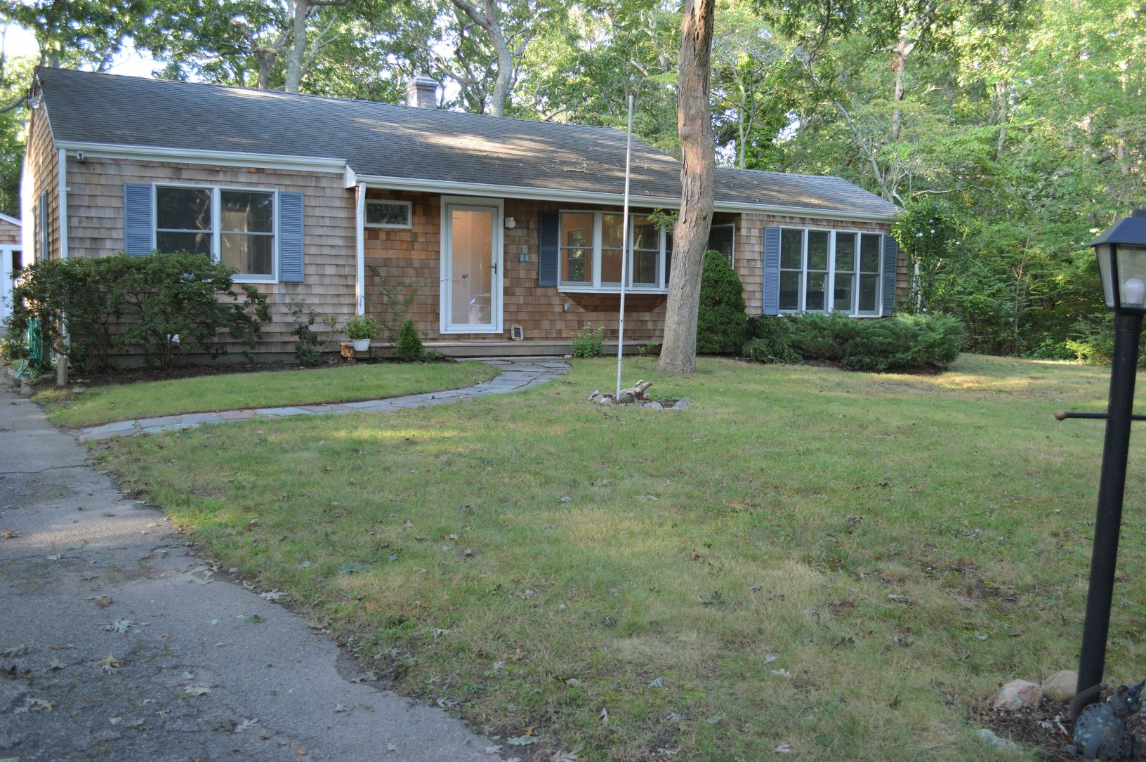 Beautiful street, totally renovated ranch with hardwood floors, new kitchen with stainless appliances, marble countertops, living room, new bath, two bedrooms, front porch, back deck, full clean basement with bilco's to backyard , new HVAC system, detached garage, gorgeous piece of property - 1/2 acre+. Beautiful bay beach down the street, close to ocean and town.