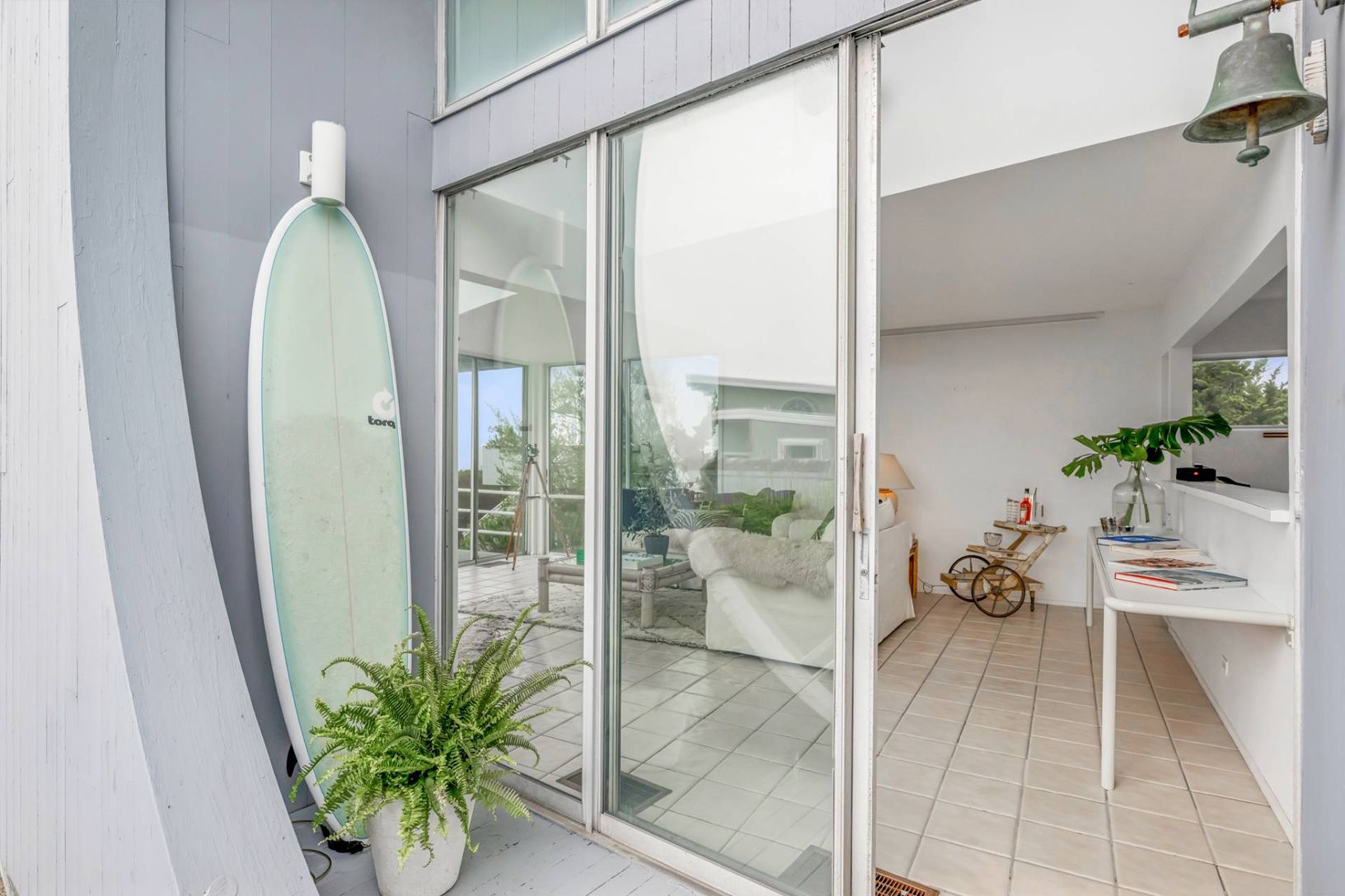 Wow. This is the epitome of chic and sexy living on the water. 34 Dune is the jewel box of Dune Road. This midcentury modern architectural gem is a bayfront beauty that sits between the Beach Lane Bridge and the Quogue Village Bridge on a coveted strip of Dune Road. Featuring incredible water and open sky views with a private dock and pier and a deeded boardwalk (with shower) across the dunes and onto your ocean beach. Enjoy stunning sunrise t