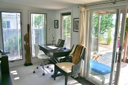 This charming and modern cedar-shingled 2 bedroom, 1 bath cottage with a 20 ft boat dock is located on pastoral Wooley Pond in Southampton and is literally a few steps from the beach on Peconic Bay. The Atlantic Ocean beach at Flying Point is a 12 minute drive on back roads that avoid the Rt. 27 traffic, Sag harbor and Southampton town are less than a 15 minute drive away and the LIRR and Jitney stations are closer still. The cottage has an