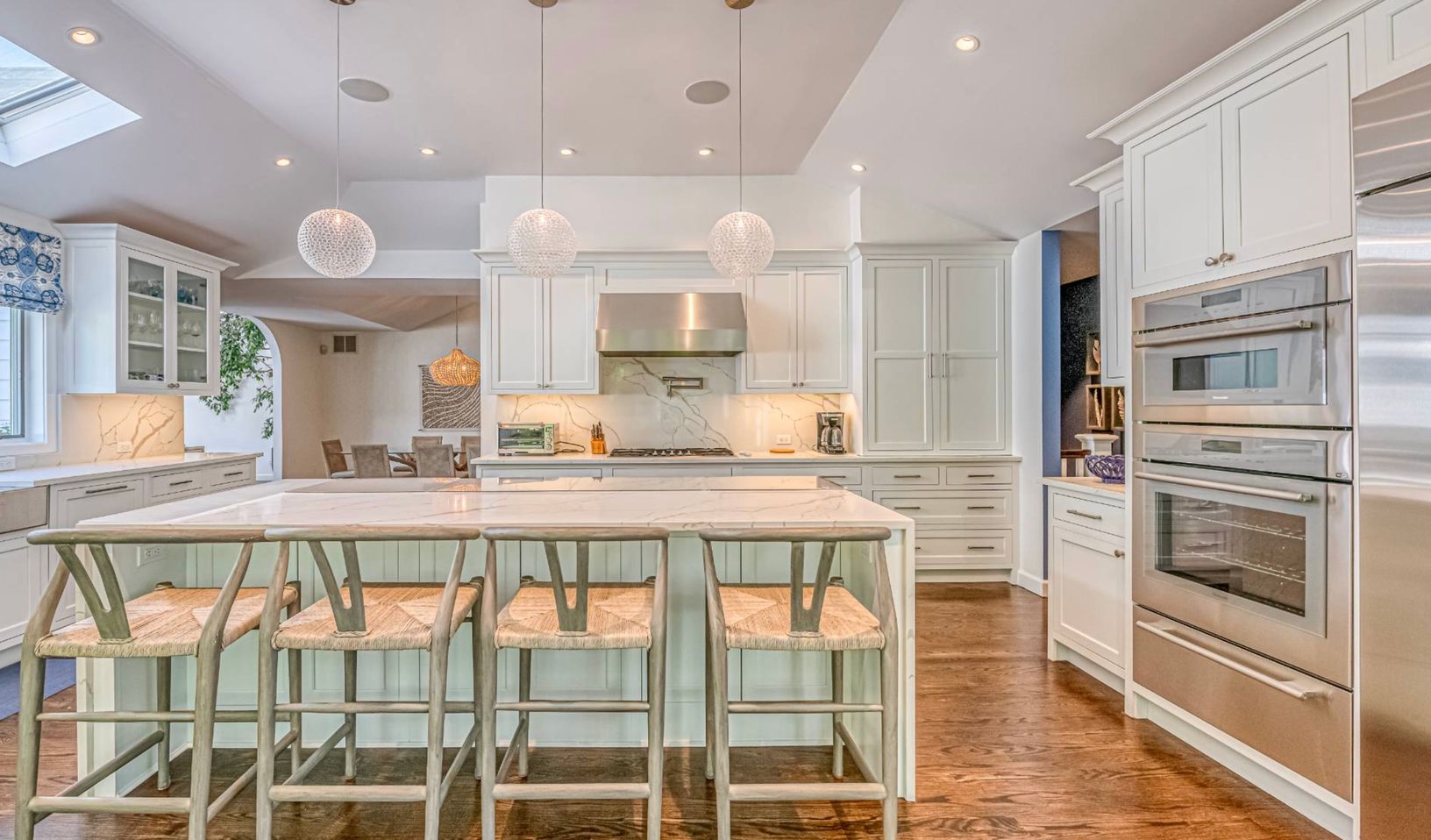 Located in Quogue, this elegant and beautifully renovated luxury rental offers 5 bedrooms and 6 total beds, comfortably accommodating a large family and visiting friends. Finished very tastefully with high-end finishes throughout, the home features a bright, open-concept kitchen that anchors the main living spaces and creates a seamless flow for entertaining.