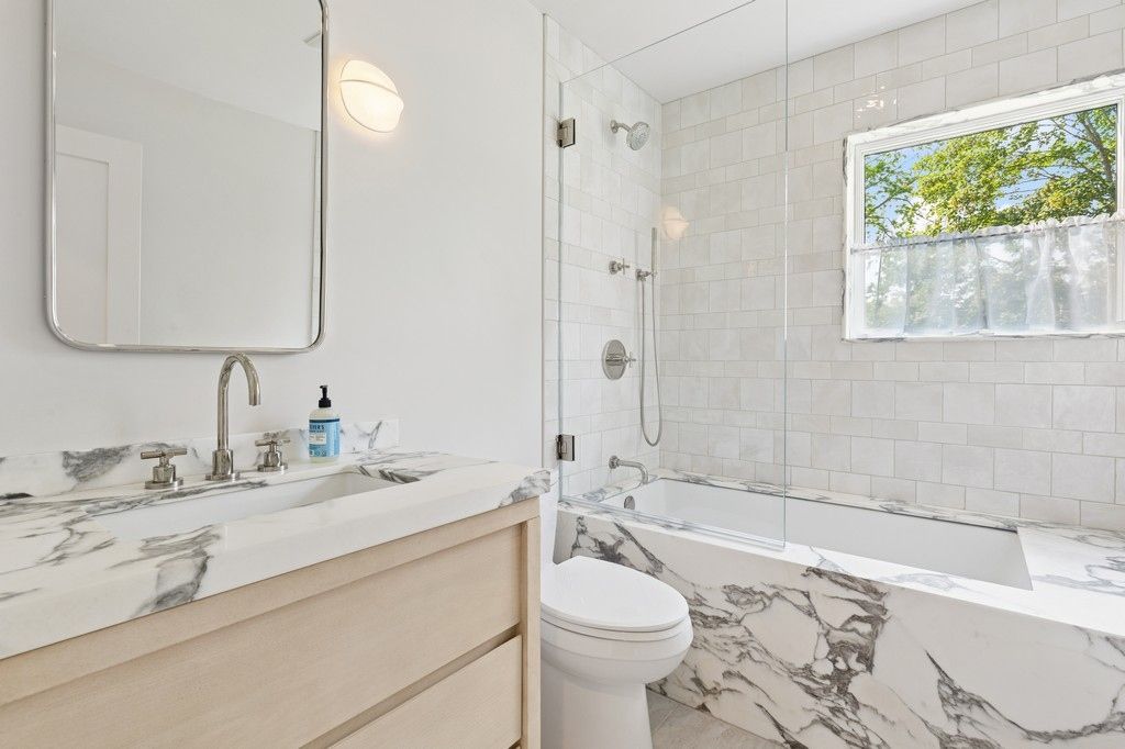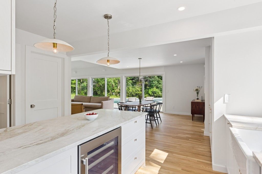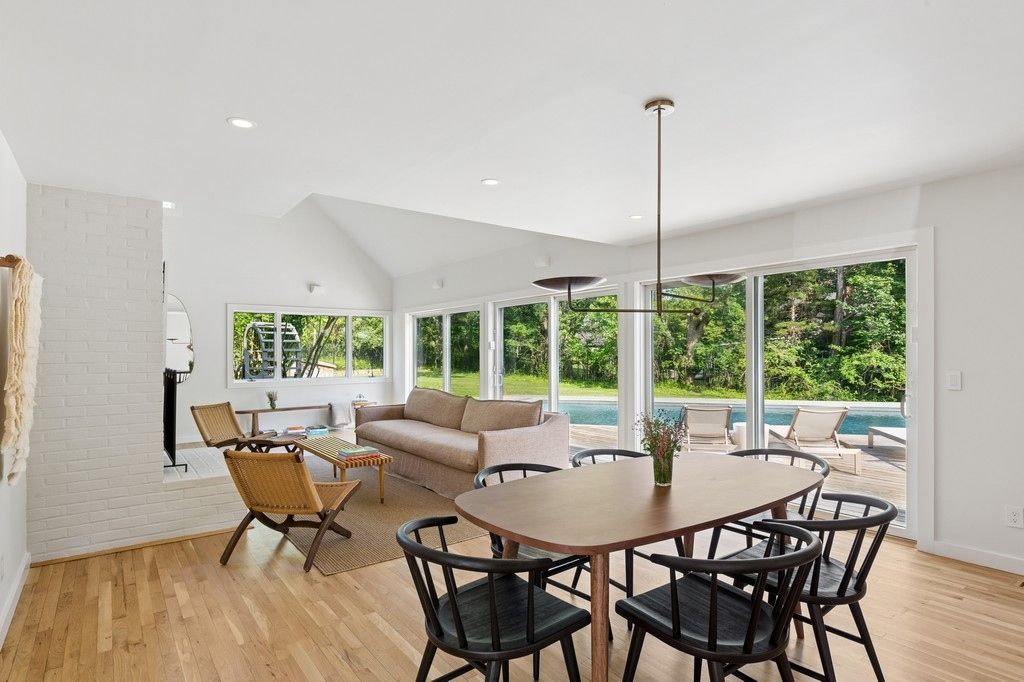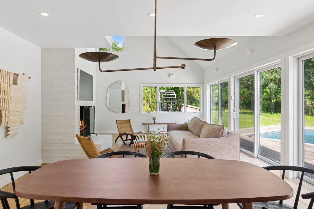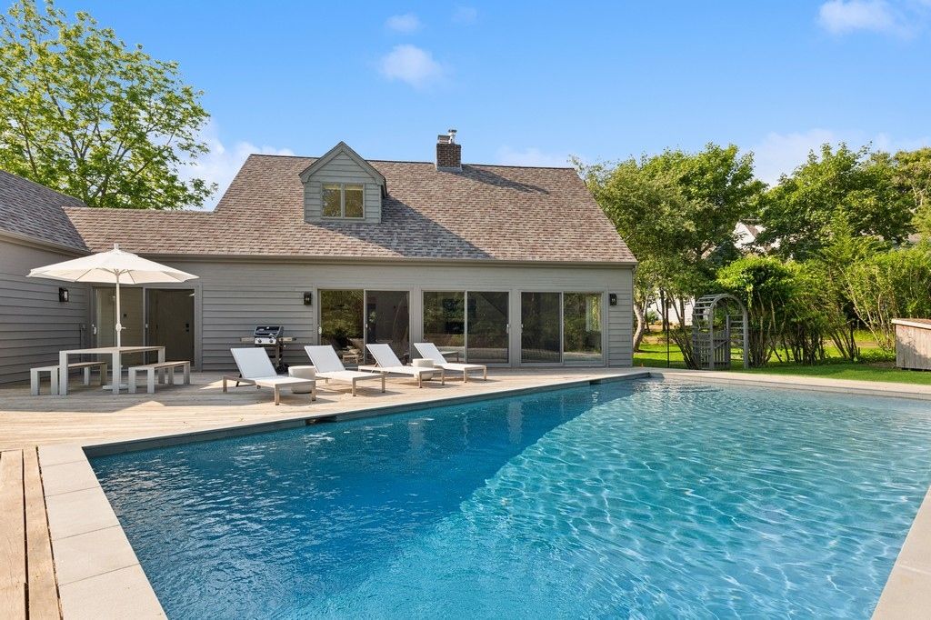 Just minutes from East Hampton Village, this property is set on a shy half acre, offering 3 bedrooms and 2 and a half bathrooms across nearly 2,000 sq. ft. of living space. Inside, there is plenty to love about this newly renovated home including a large kitchen with plenty of storage space, an adjacent dining area, and glass sliding doors leading out to the deck and heated gunite pool. Enjoy entertaining and relaxing in the great room with va